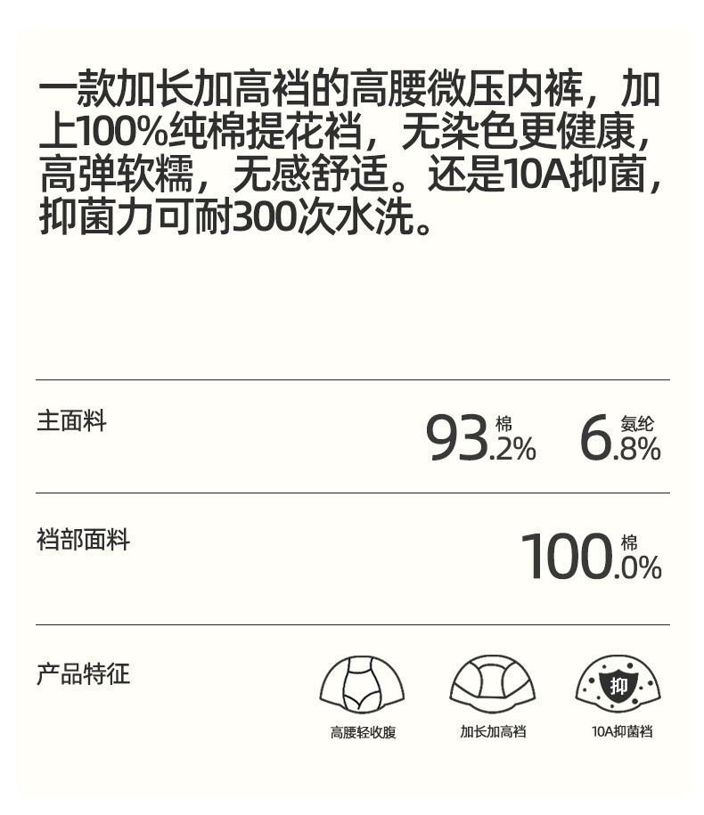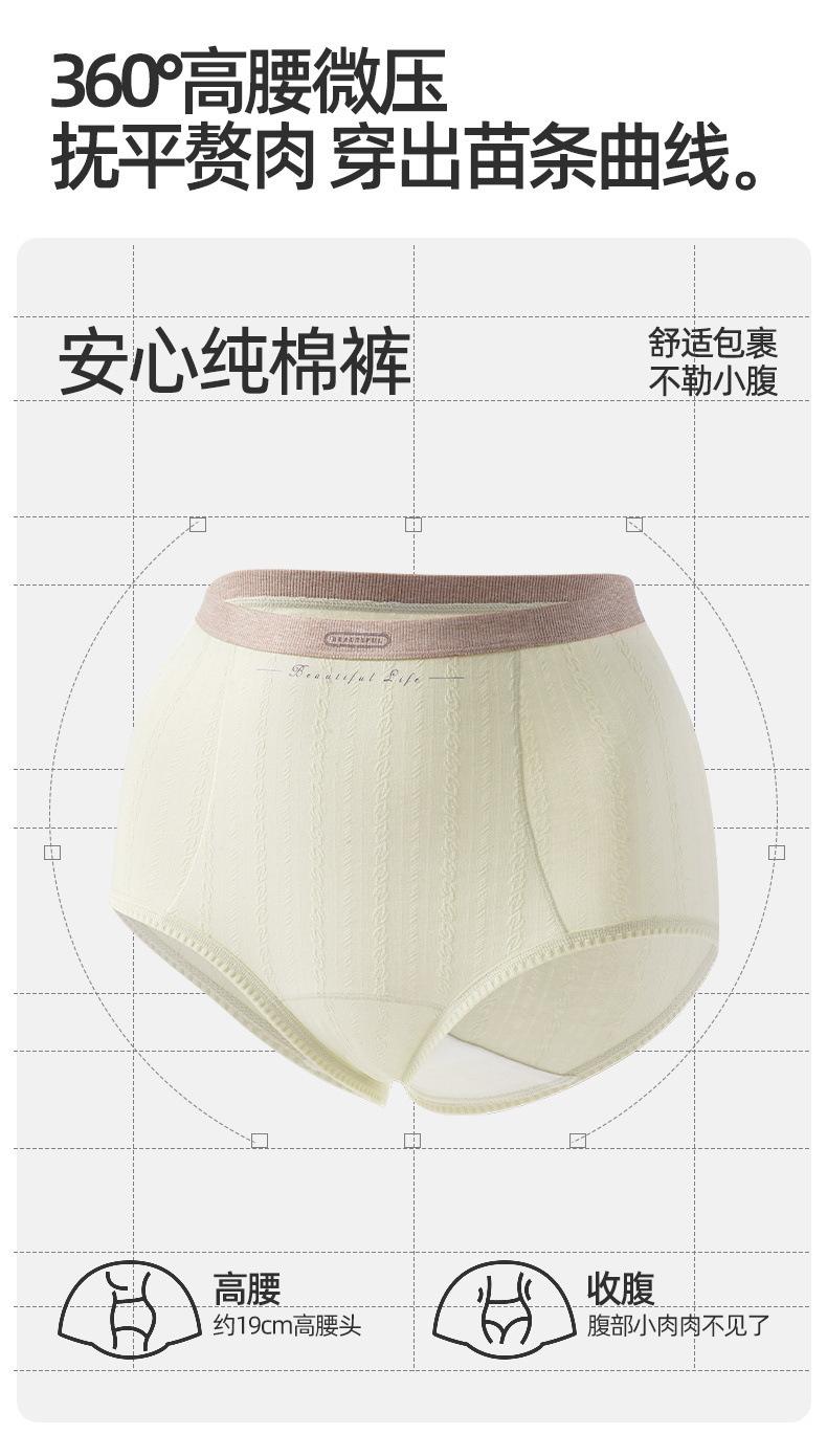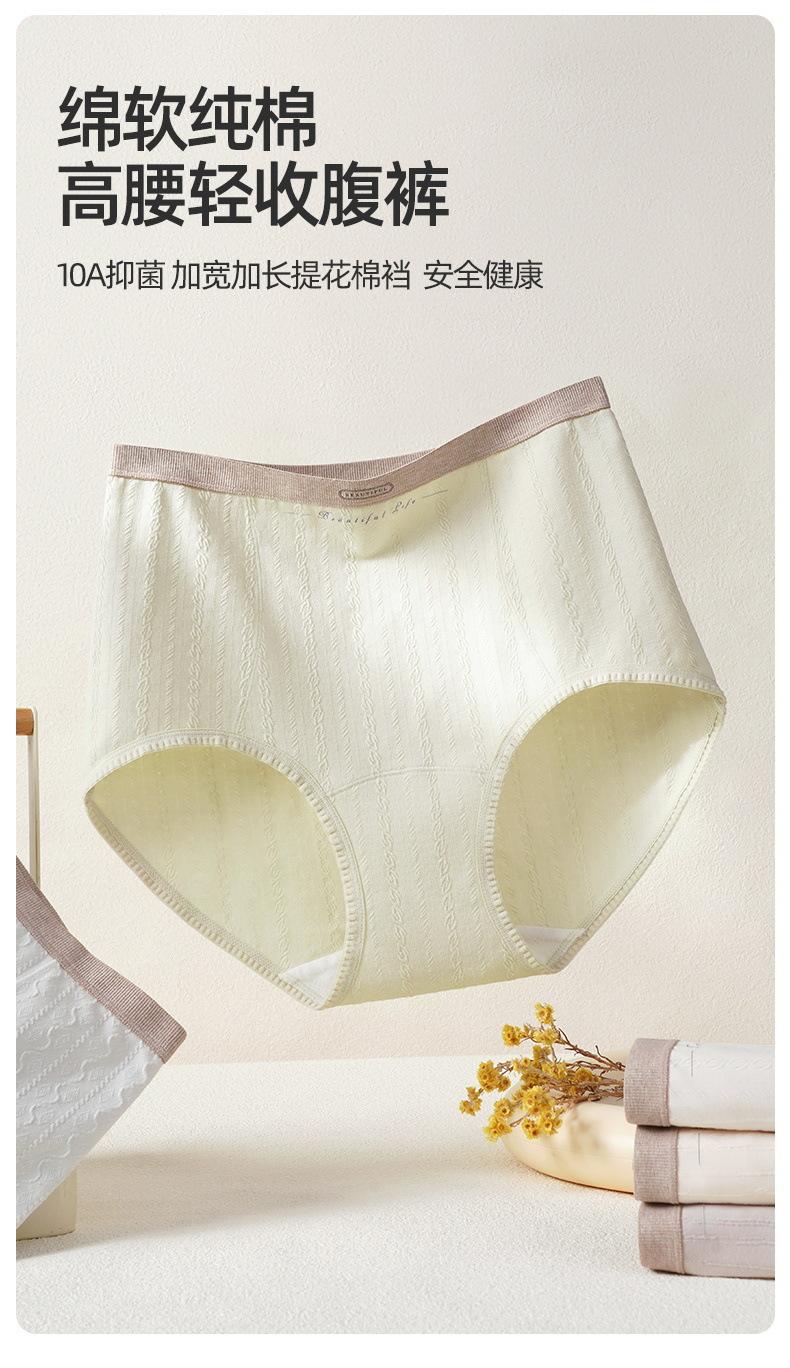 Braguitas de Algodón Puro de Cintura Alta para Mujer Microcompresión Control de Abdomen Levantamiento de Cadera 10 Entrepierna Antibacterial Extendida Jacquard en Relieve Calzones para Mujer Mujer