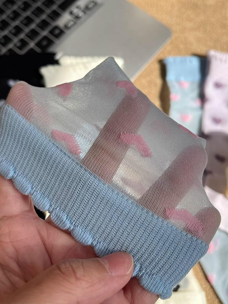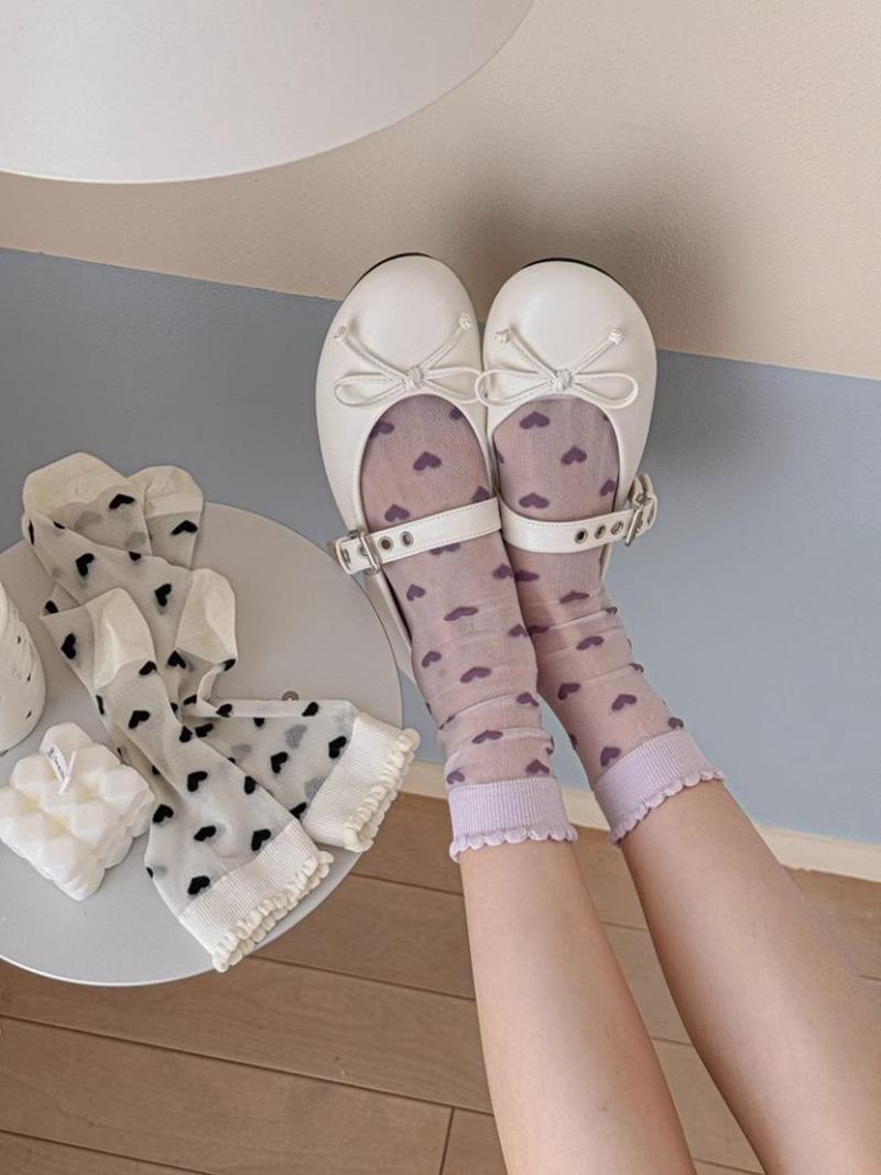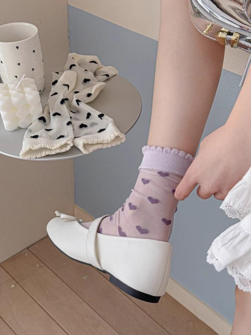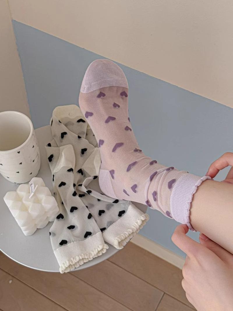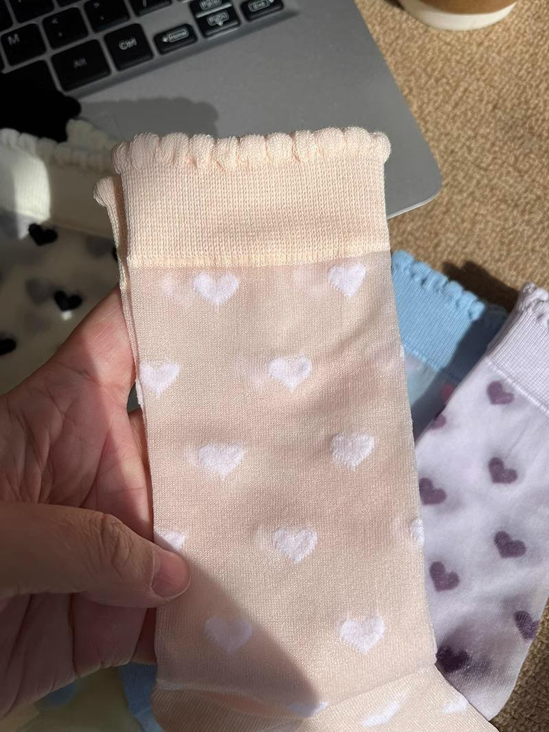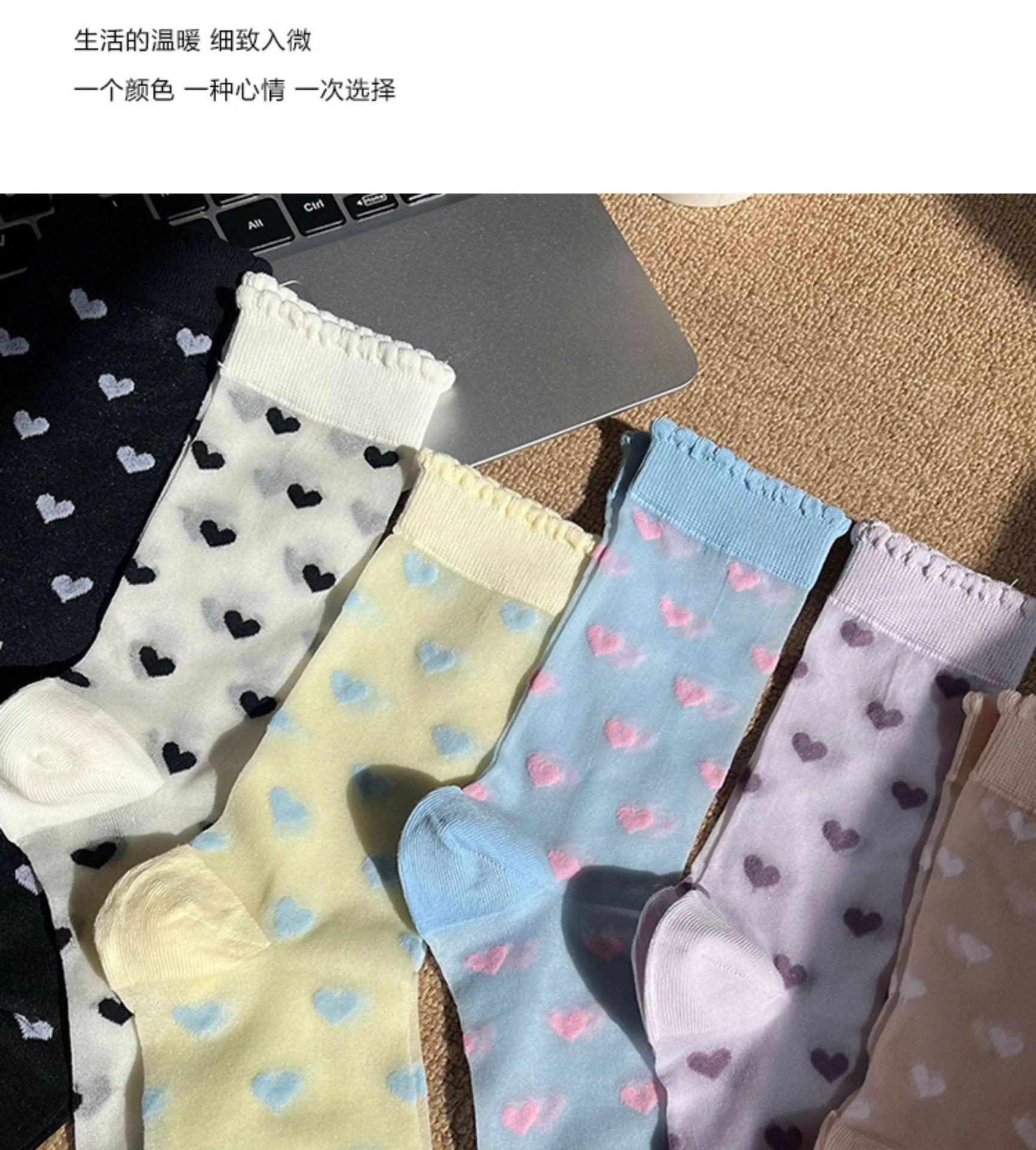 Calcetines para Mujer Primavera y Verano Amor Seda Cristal Encaje Hongo Calcetines de Tubo Medio Coreanos Verano Delgados Transpirables Calcetines Apilados