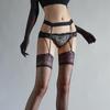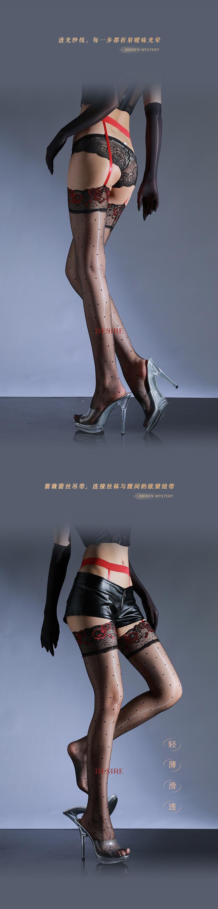 Medias "Rose" Aurora Encaje Enterizo Tirantes Pantimedias Ultradelgadas 3D Seda Negra Tentación Tirantes