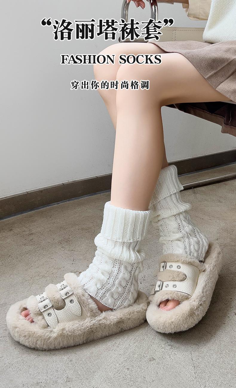 Calentadores de piernas calcetines de felpa para mujer otoño e invierno color sólido tubo medio puño trenzado y2k blanco tejido cálido fabricantes mayoreo