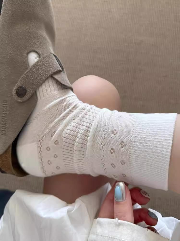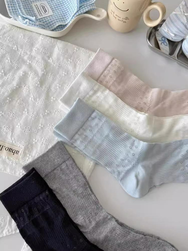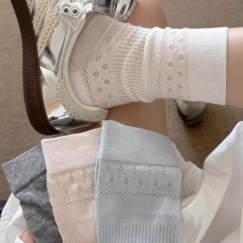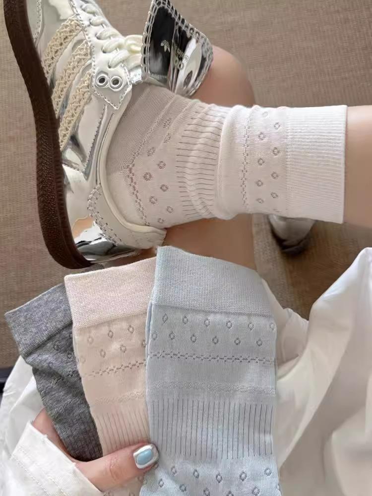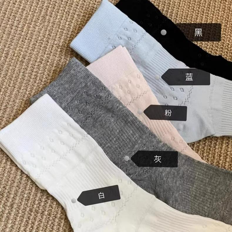 Calcetines para Mujer Primavera y Verano Finos Transpirables Color Sólido Medianos Malla Algodón Gris Estilo Japonés Combinables Largos Malla Apilados