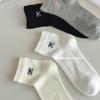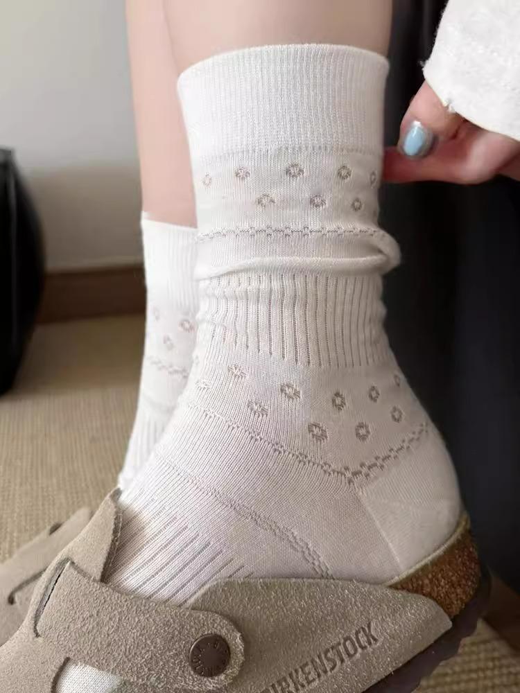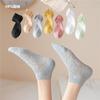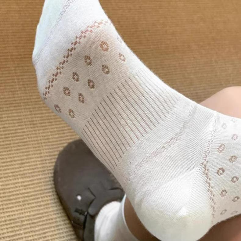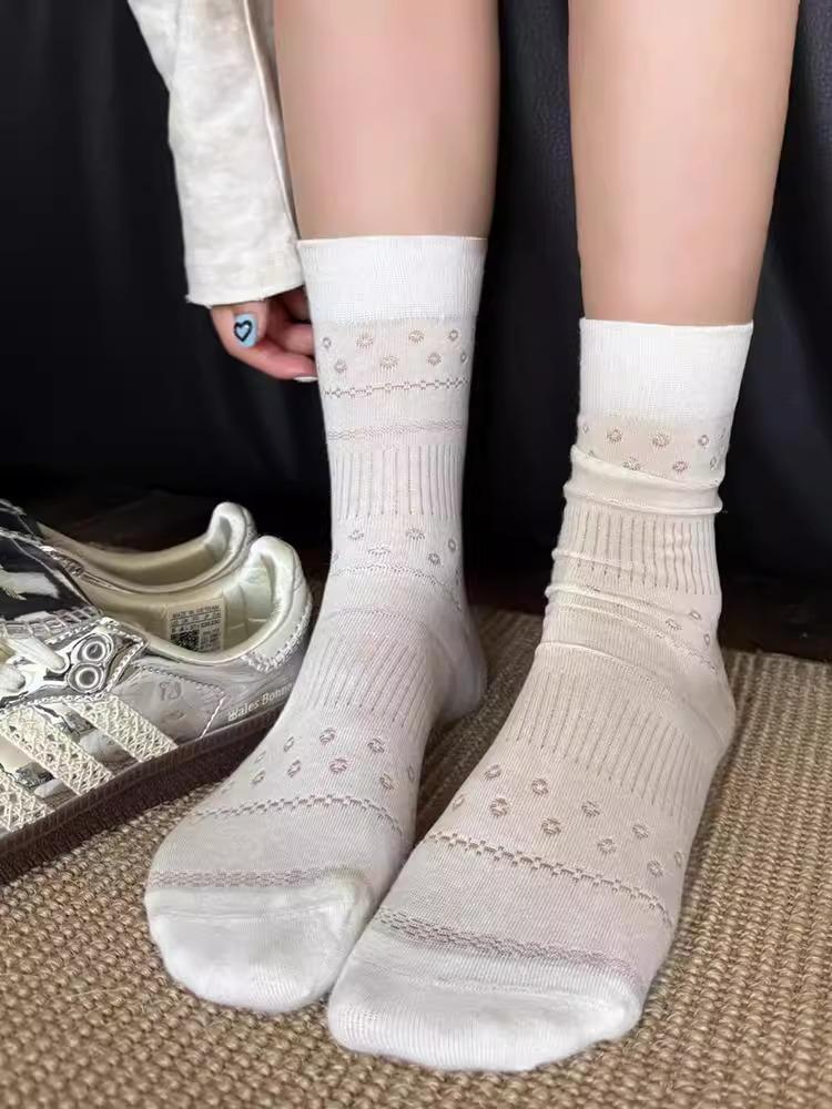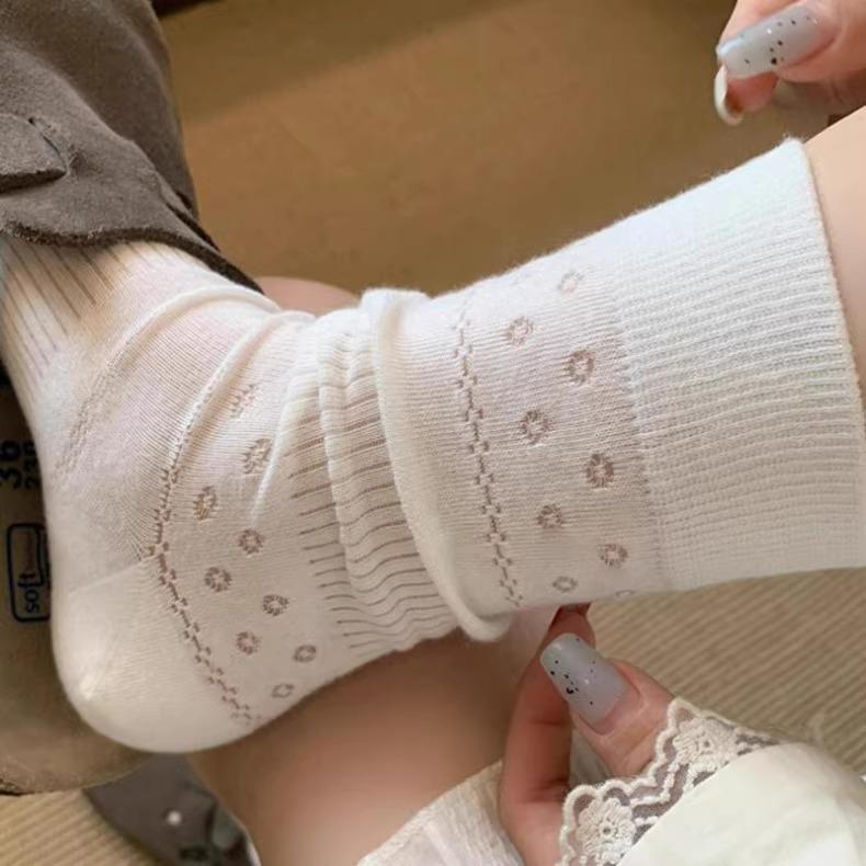 Calcetines para Mujer Primavera y Verano Finos Transpirables Color Sólido Medianos Malla Algodón Gris Estilo Japonés Combinables Largos Malla Apilados