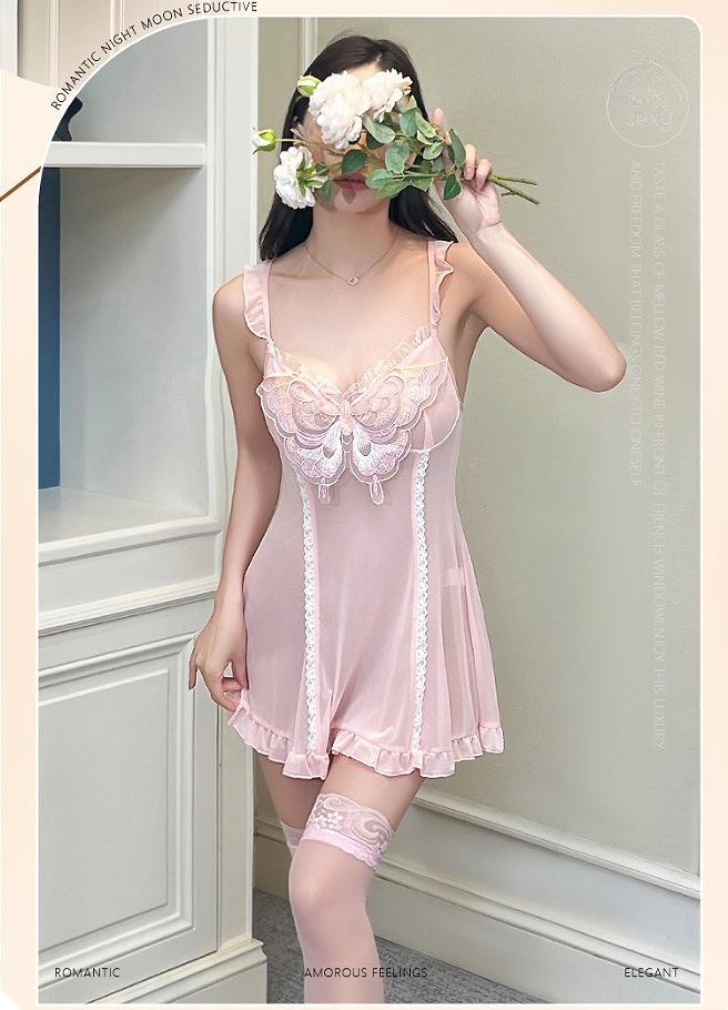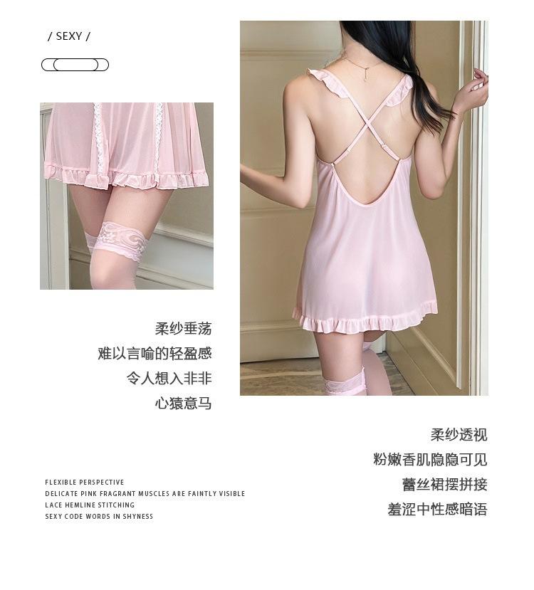 Camisón de Encaje de Deseo Puro Estilo Francés para Mujer, Verano 2025 Nuevo Camisón Sexy de Malla Fina de Alta Gama