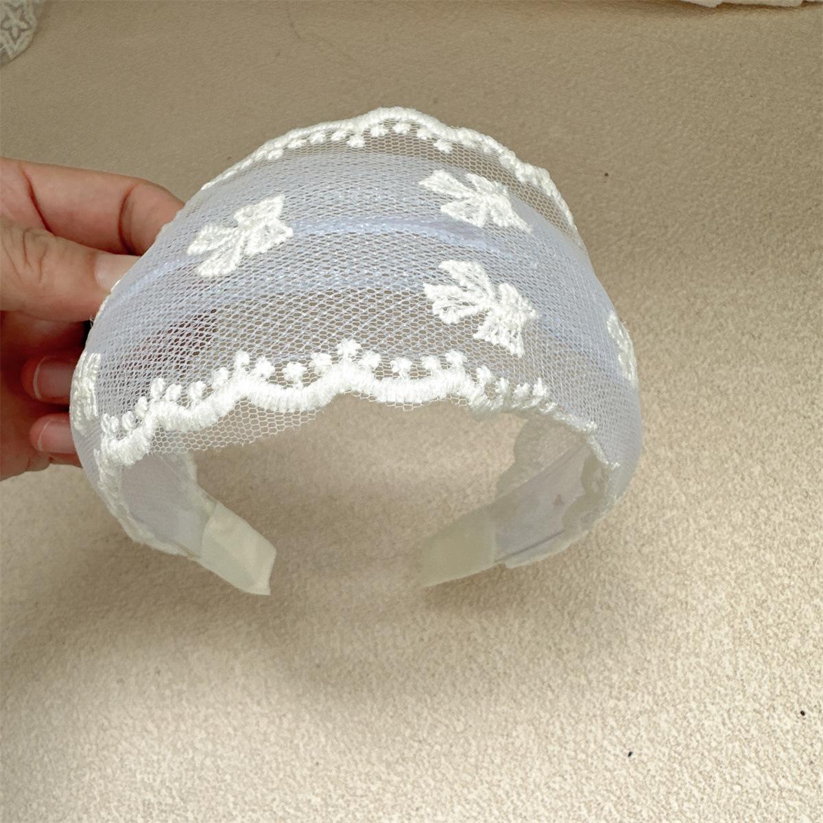 Nueva Diadema Ancha de Encaje con Lazo de Malla para Mujer Estilo Pastoral Francés Verano Viaje Adorno Delgado para la Cabeza para Mujer