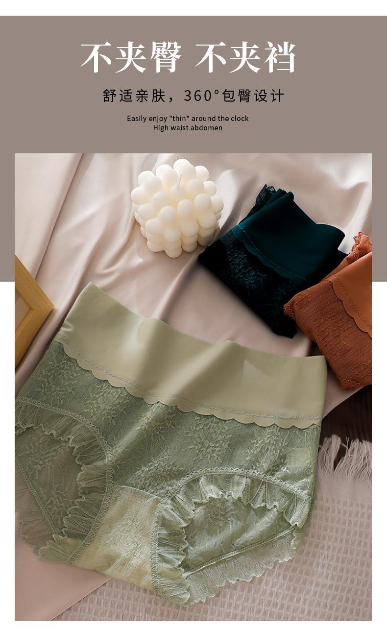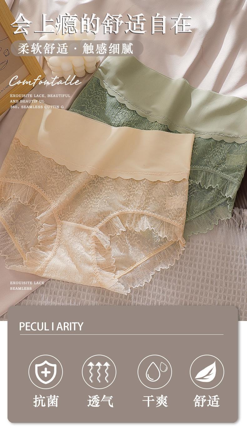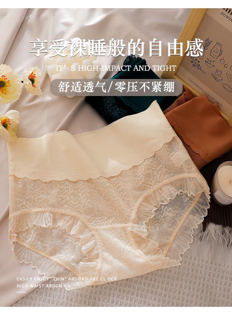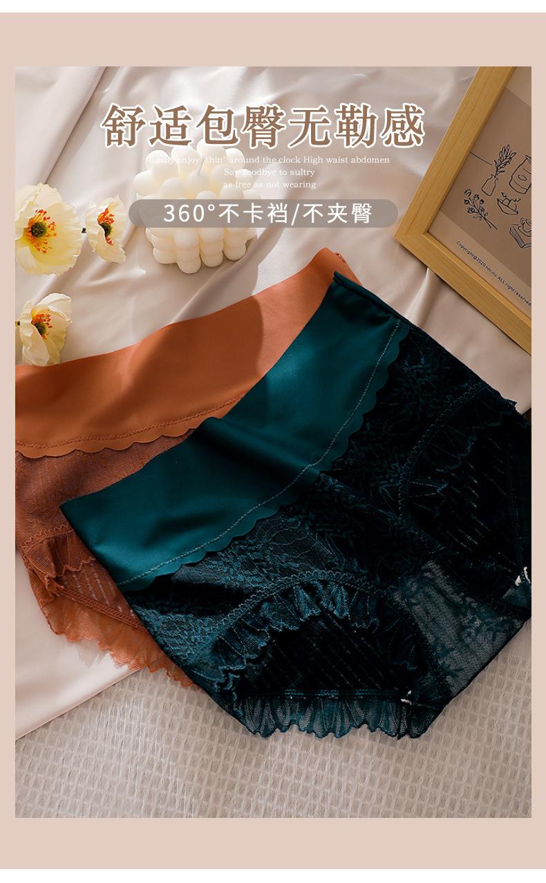 Cintura Alta Nueva Ropa Interior Abdominal Cómoda Mujer Seda de Hielo Verano Delgada Simple Sin Costuras Encaje Mujer Triángulo