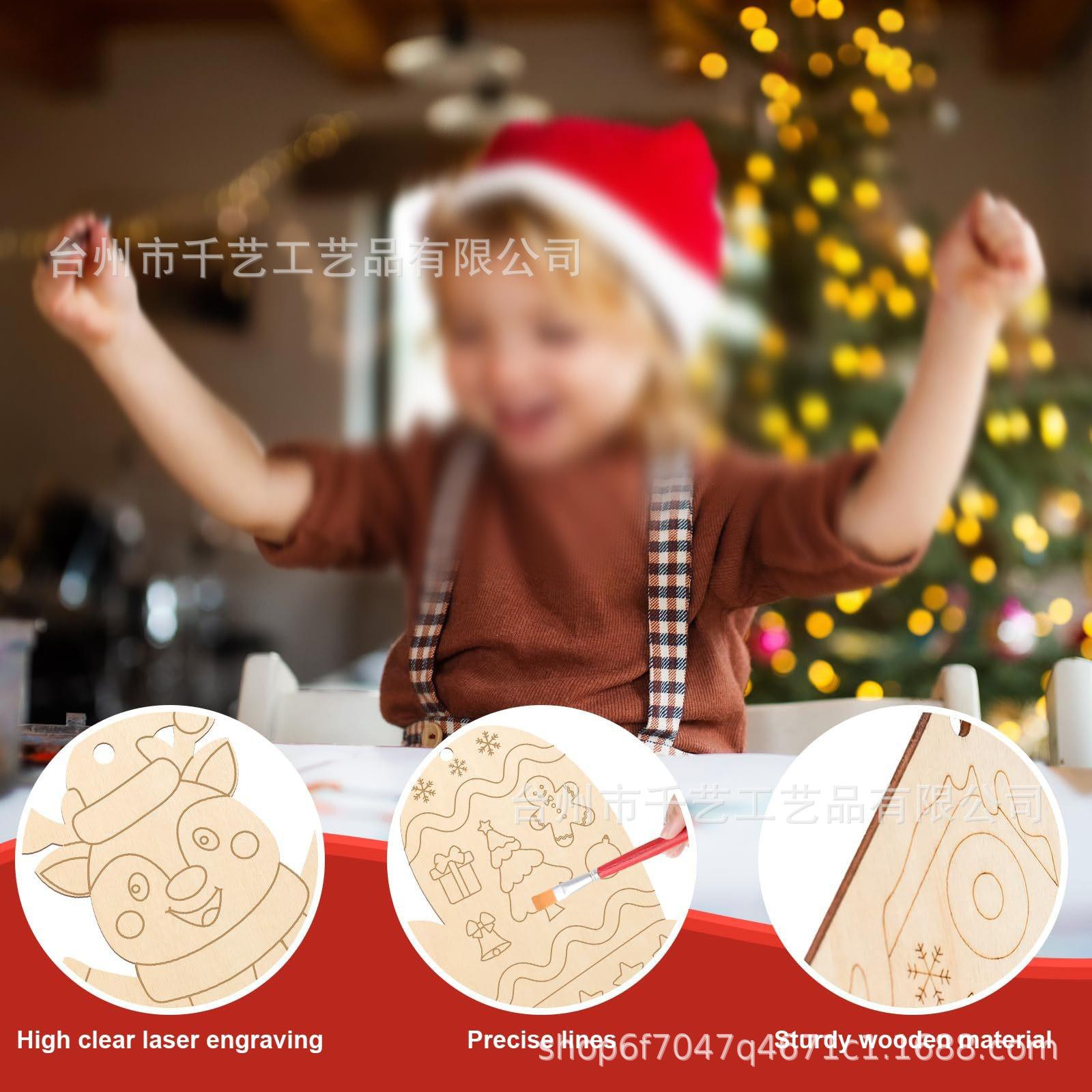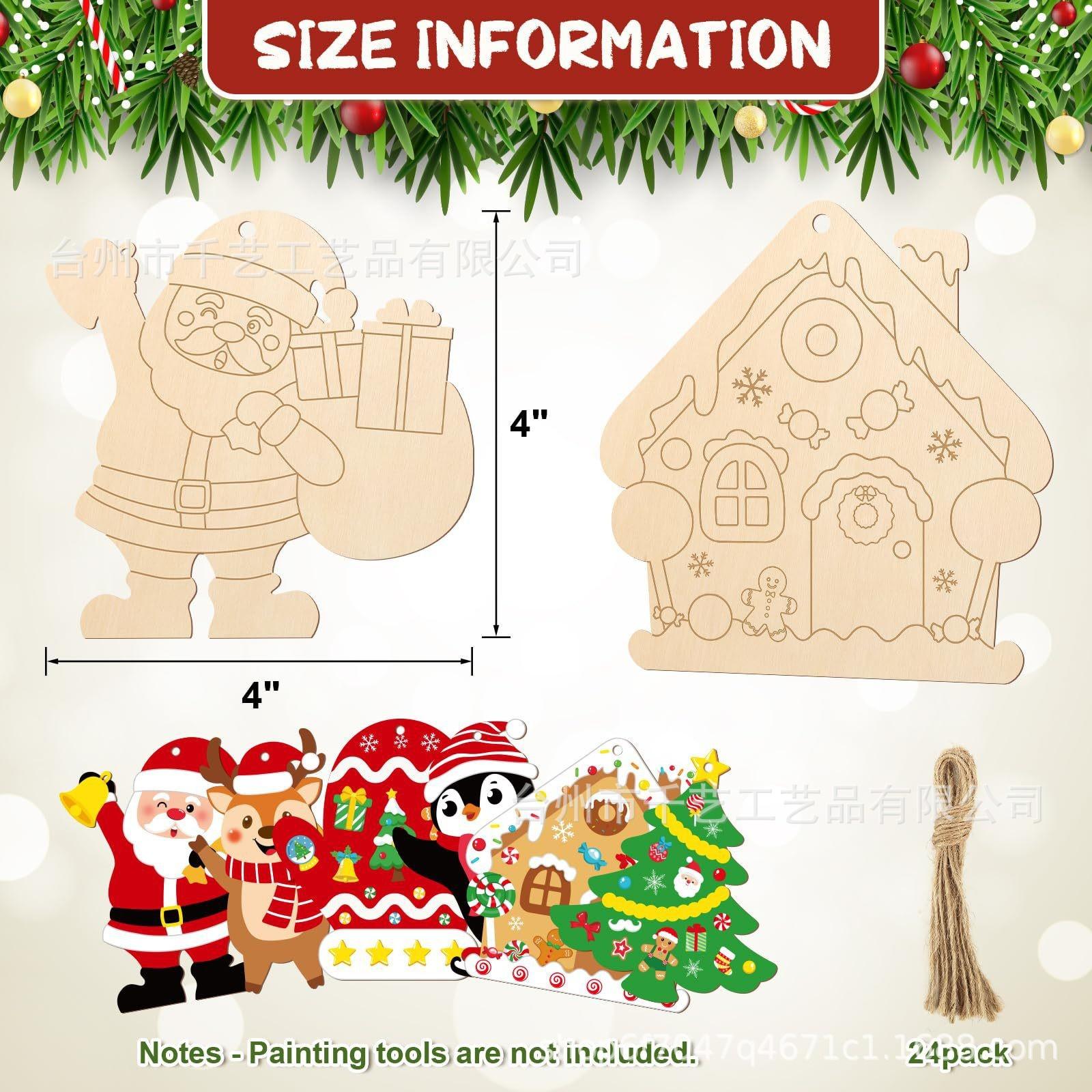Calidad confiable: Nuestras manualidades navideñas están hechas de materiales de madera natural de alta calidad, la superficie está cortada con láser y pulida, limpia y lisa, sin rebabas, con líneas claras, fácil de colorear DIY.