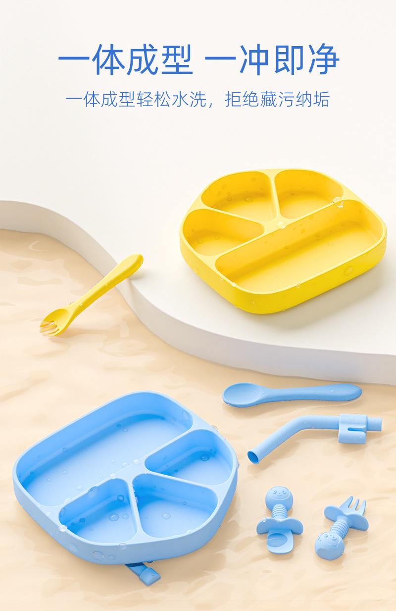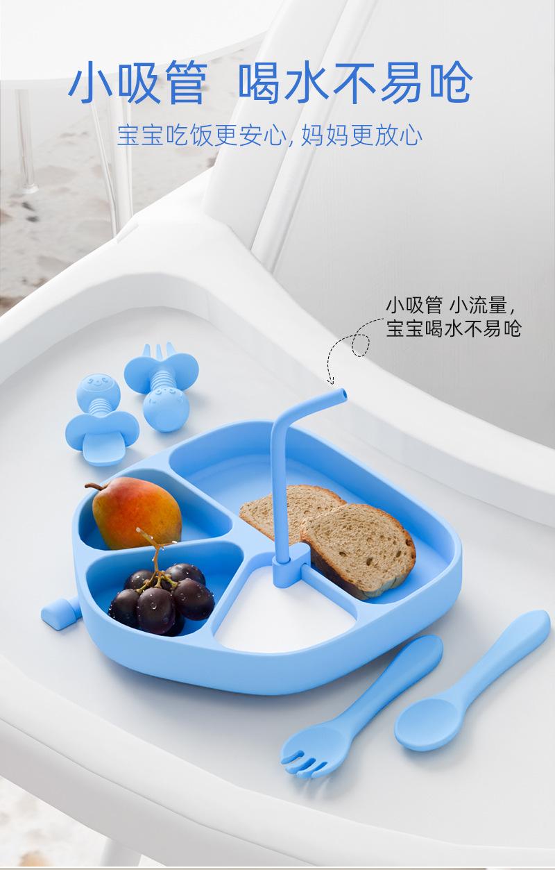 Vajilla para Niños Set de Alimentación Tazón de Silicona para Bebé Tenedor Cuchara Tazón para Comida de Bebé Plato para Cena Silicona de Grado Alimenticio Plato para Cena