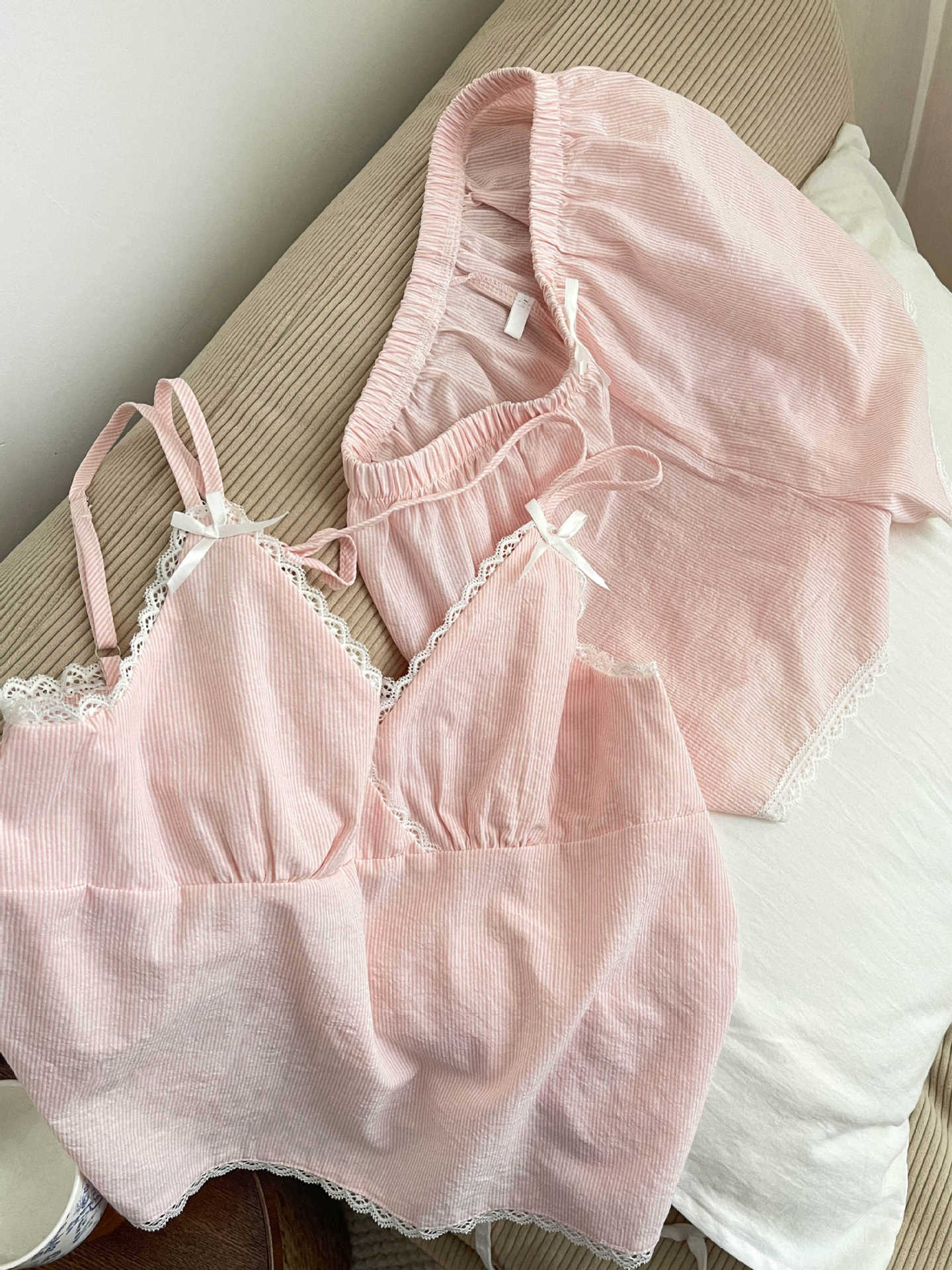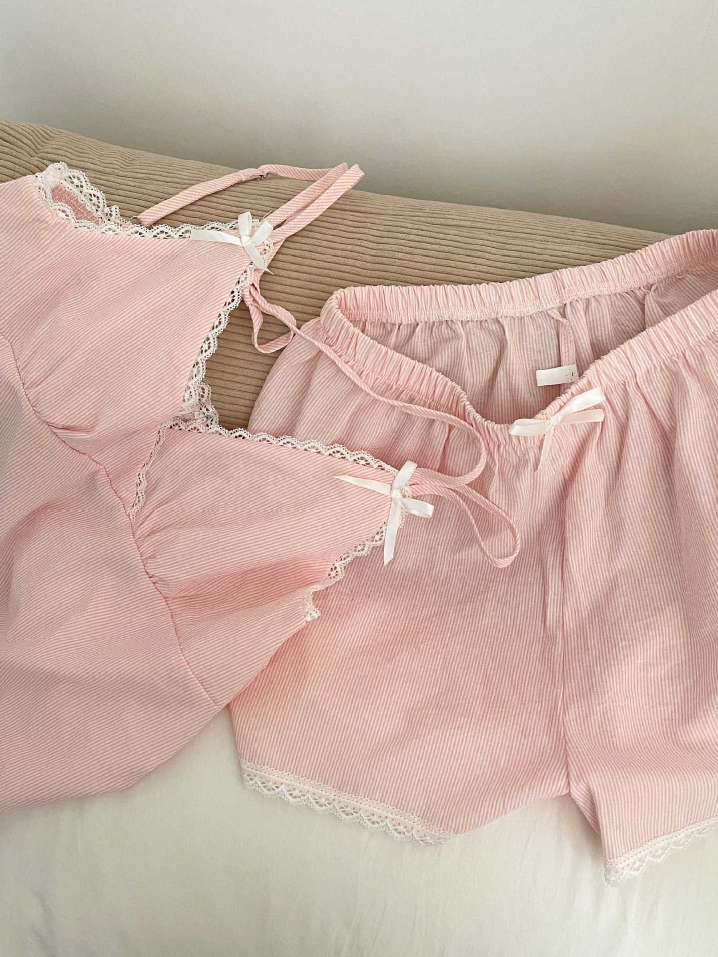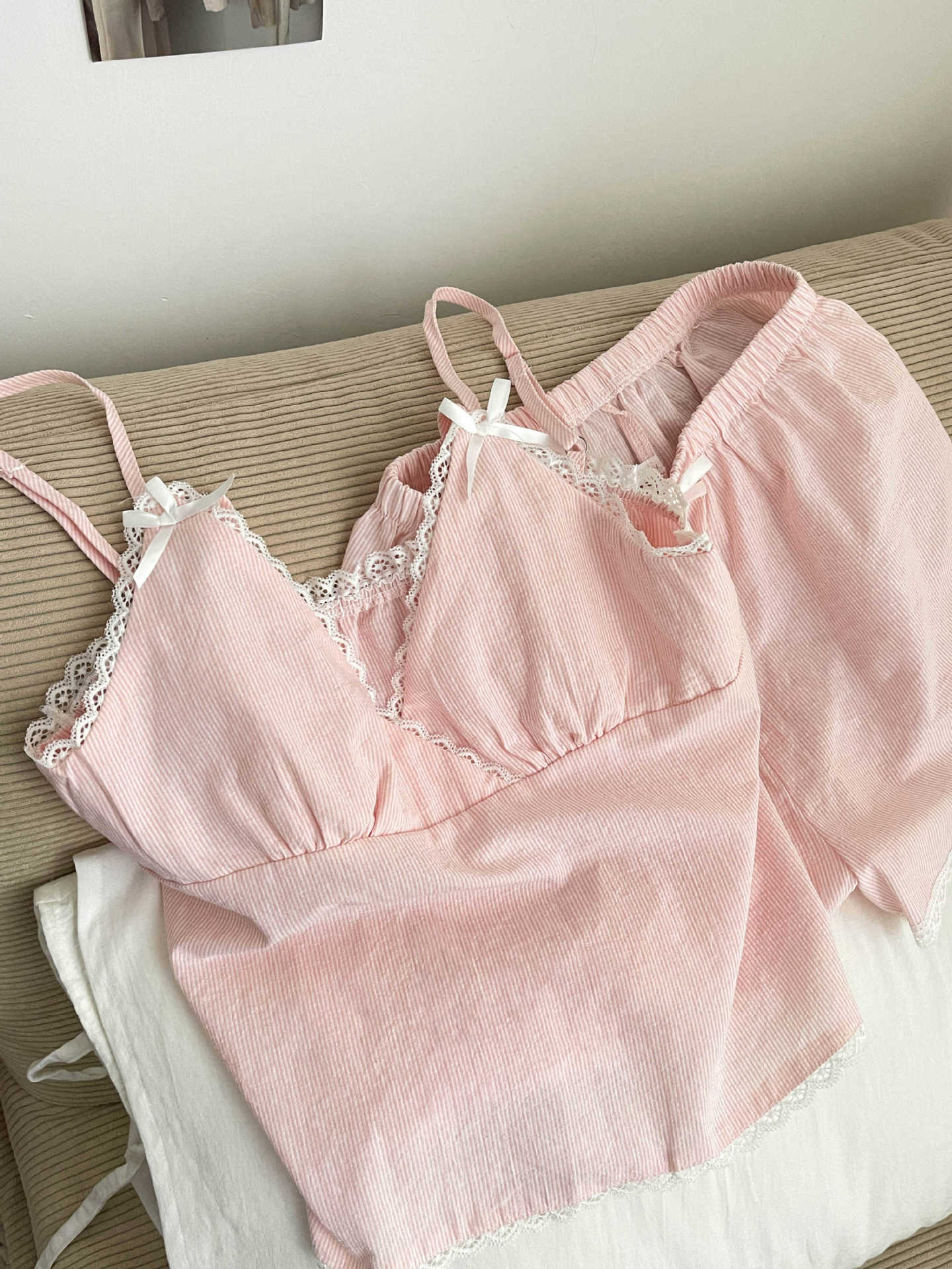 Pijama de Tirantes a Rayas de Encaje para Niña de Deseo Puro Ropa de Casa para Mujer Verano 2025 Nuevo Traje de Chaleco y Shorts