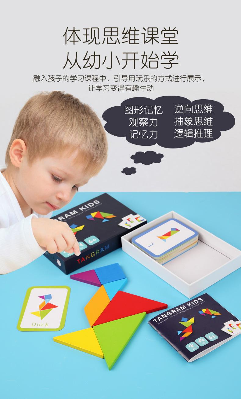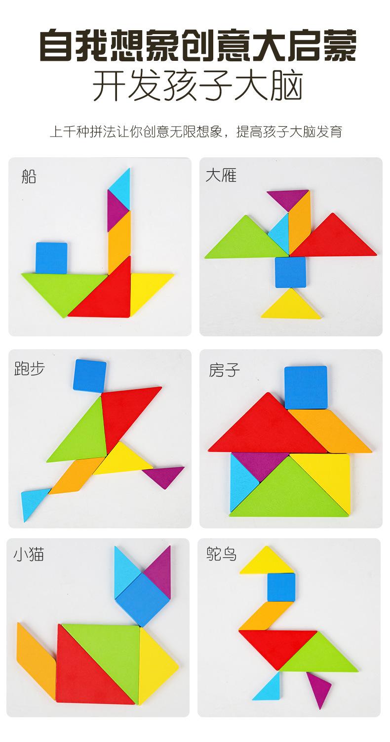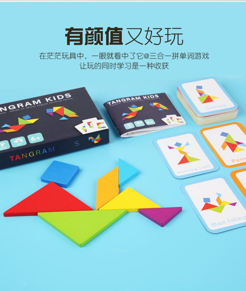Rompecabezas Tangram Divertido Transfronterizo Rompecabezas Rompecabezas Desarrollo para Niños Pequeños Entrenamiento de Inteligencia Ayudas Didácticas de Madera Juguetes de Educación Temprana
