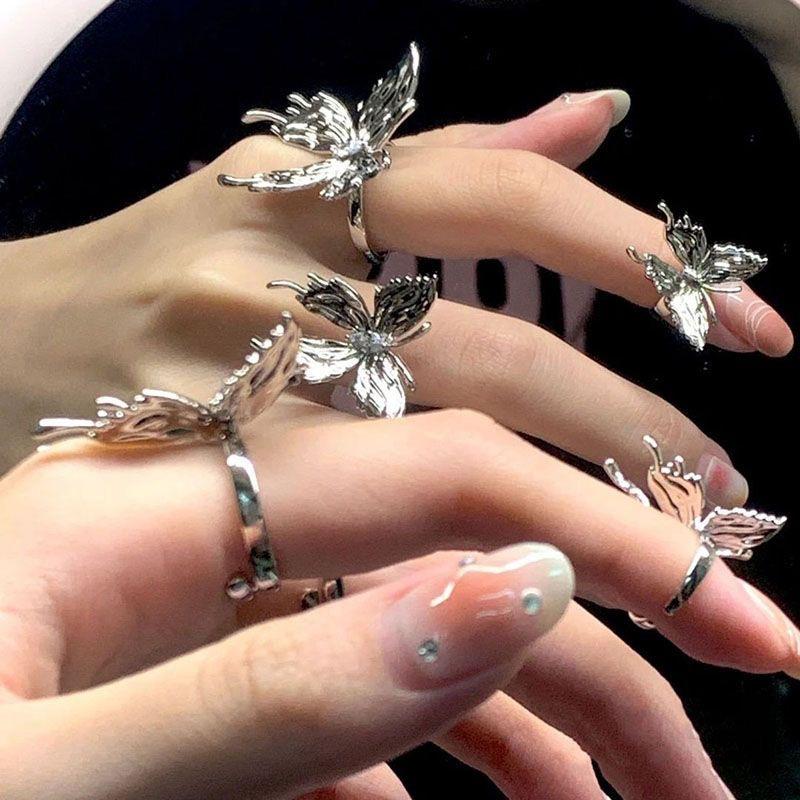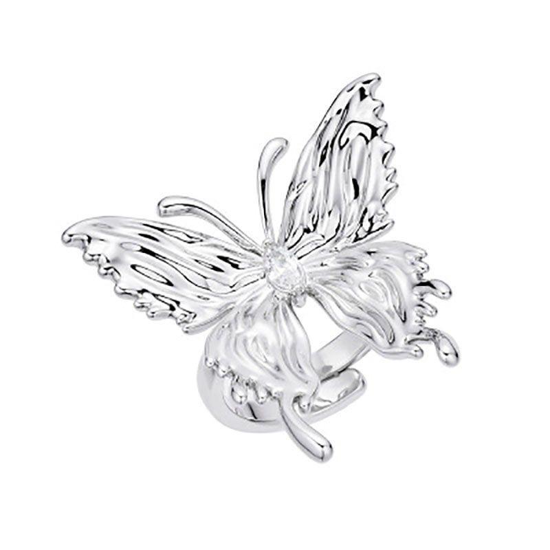 Anillo Abierto de Mariposa Licuefacta para Mujer Diseño Nicho Ins Plisado Estilo Frío Estilo Oscuro Anillo de Lujo Accesible