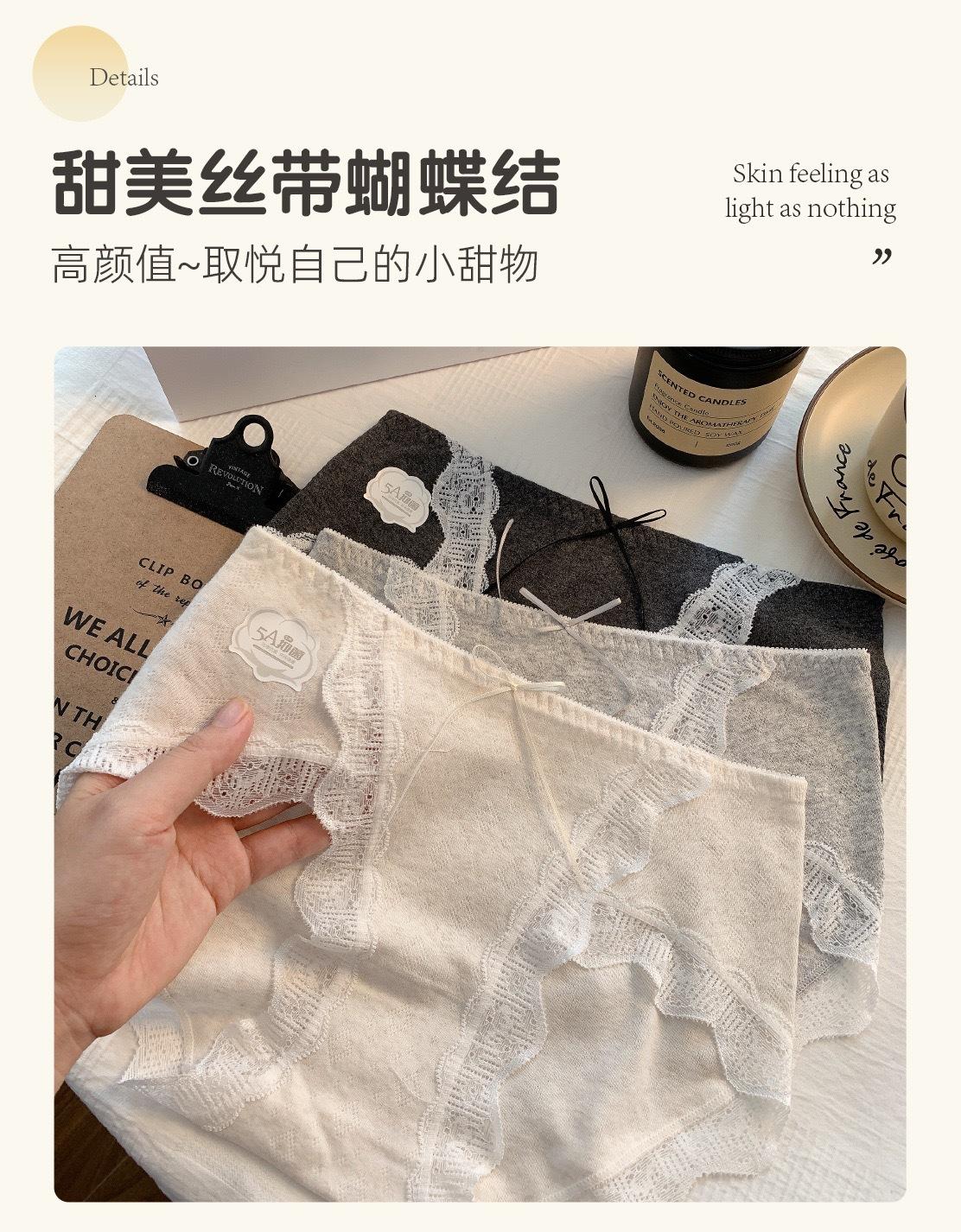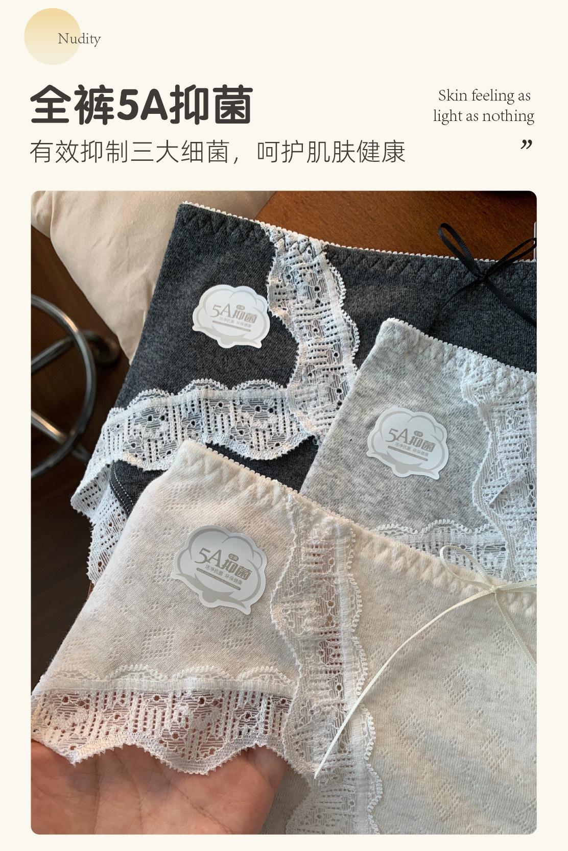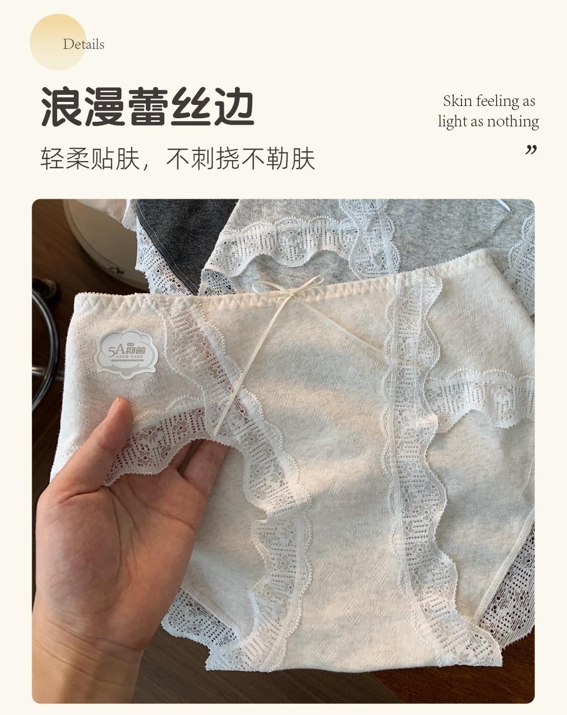 7A Antibacterial Algodón Bebé Algodón Puro Braguitas de Mujer Cintura Media Corte Alto Borde de Encaje Envolventes de Cadera Transpirables Jacquard Todo Algodón Braguitas Triángulo