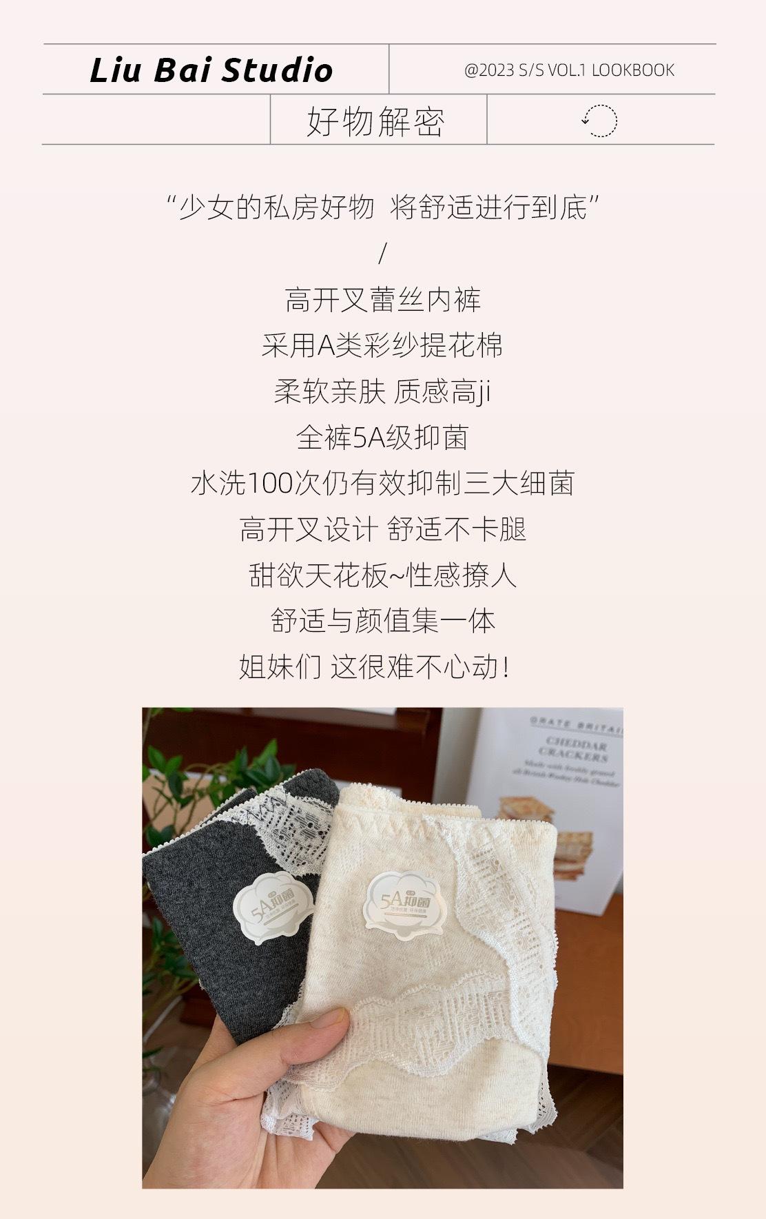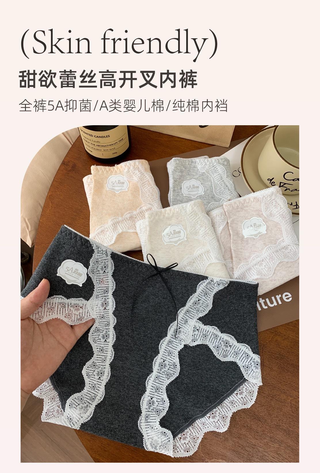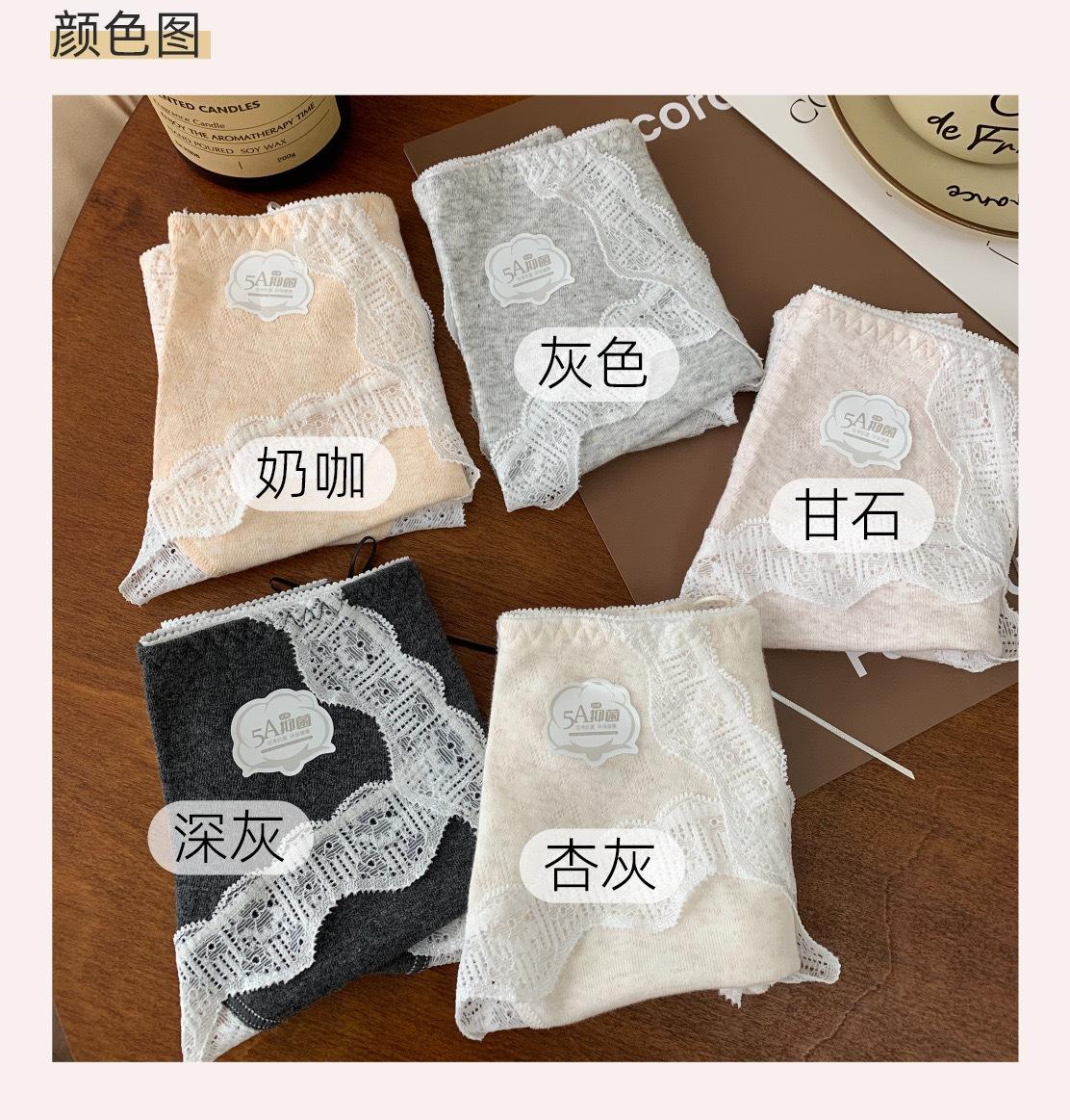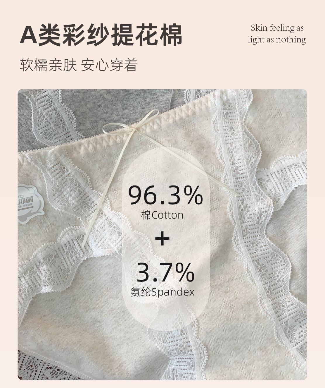 7A Antibacterial Algodón Bebé Algodón Puro Braguitas de Mujer Cintura Media Corte Alto Borde de Encaje Envolventes de Cadera Transpirables Jacquard Todo Algodón Braguitas Triángulo