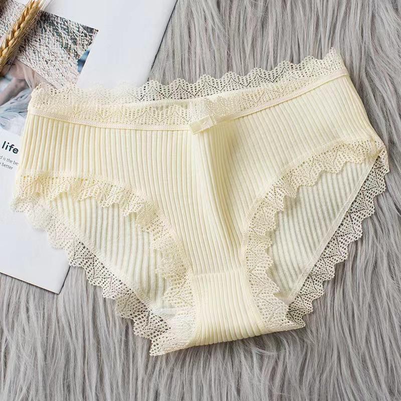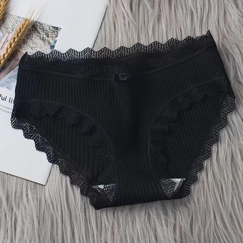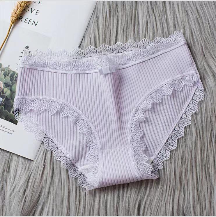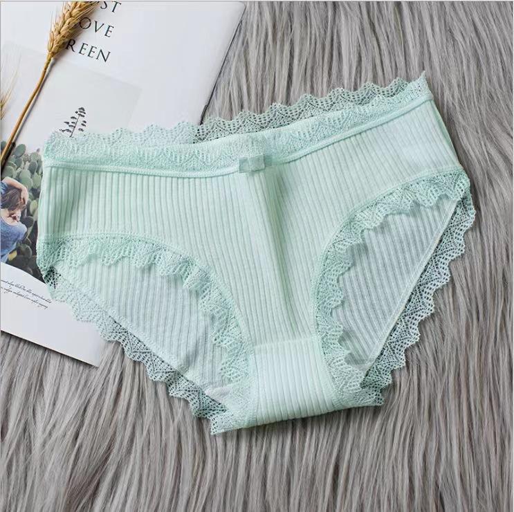 Ropa interior de encaje con hilo para mujer de estilo nuevo, de talle medio, transpirable, de algodón puro en la parte inferior, calzones cómodos, ropa interior para mujer de estilo japonés