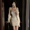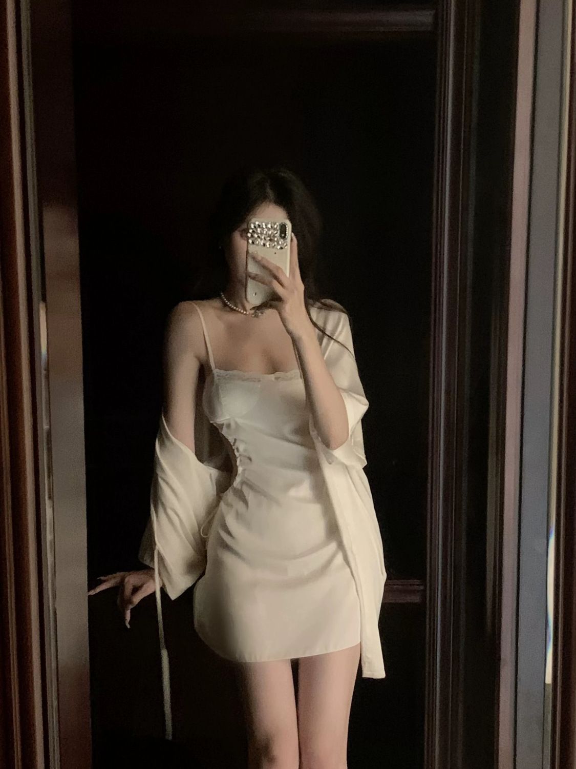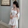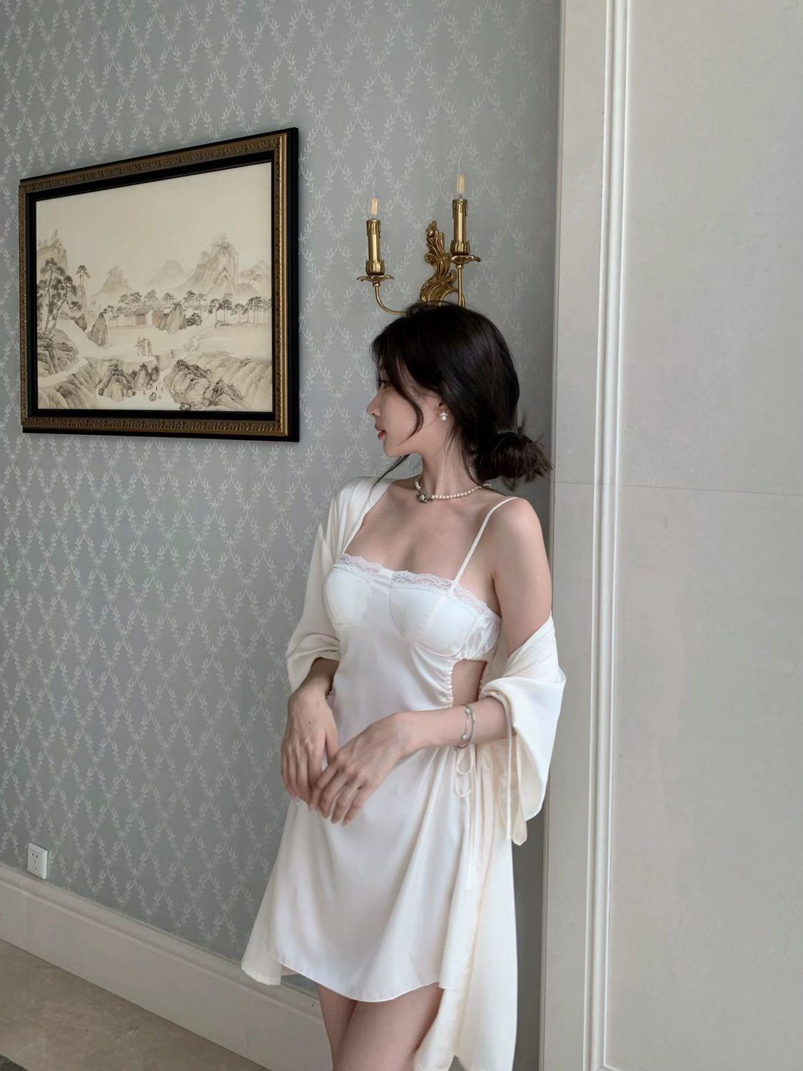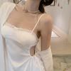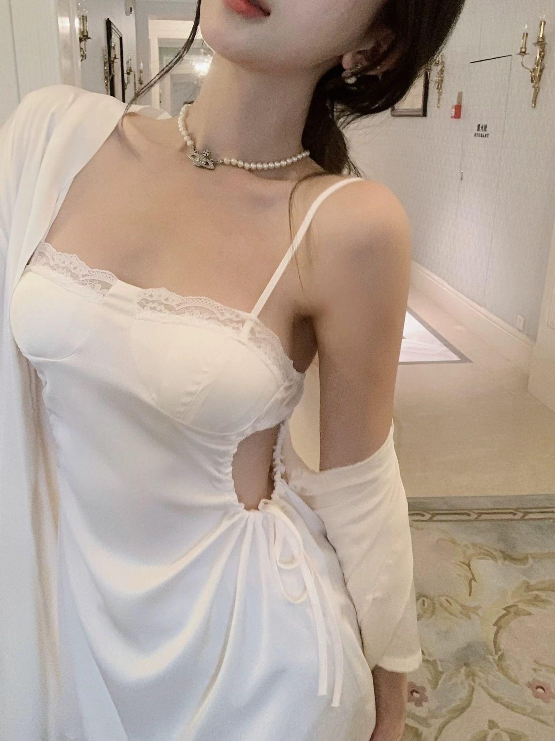 Nuevo Camisón de Tirantes de Seda de Hielo Hueco Encaje Verano Delgado Sexy Pijama con Almohadilla para el Pecho Cintura Ajustada Traje Puro