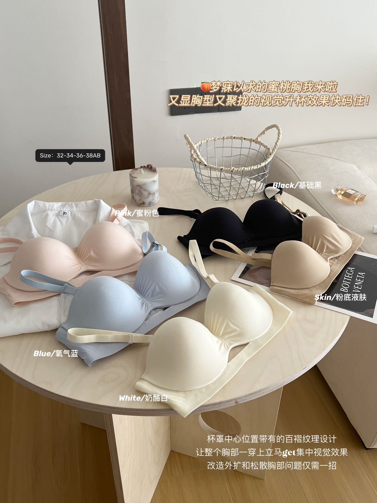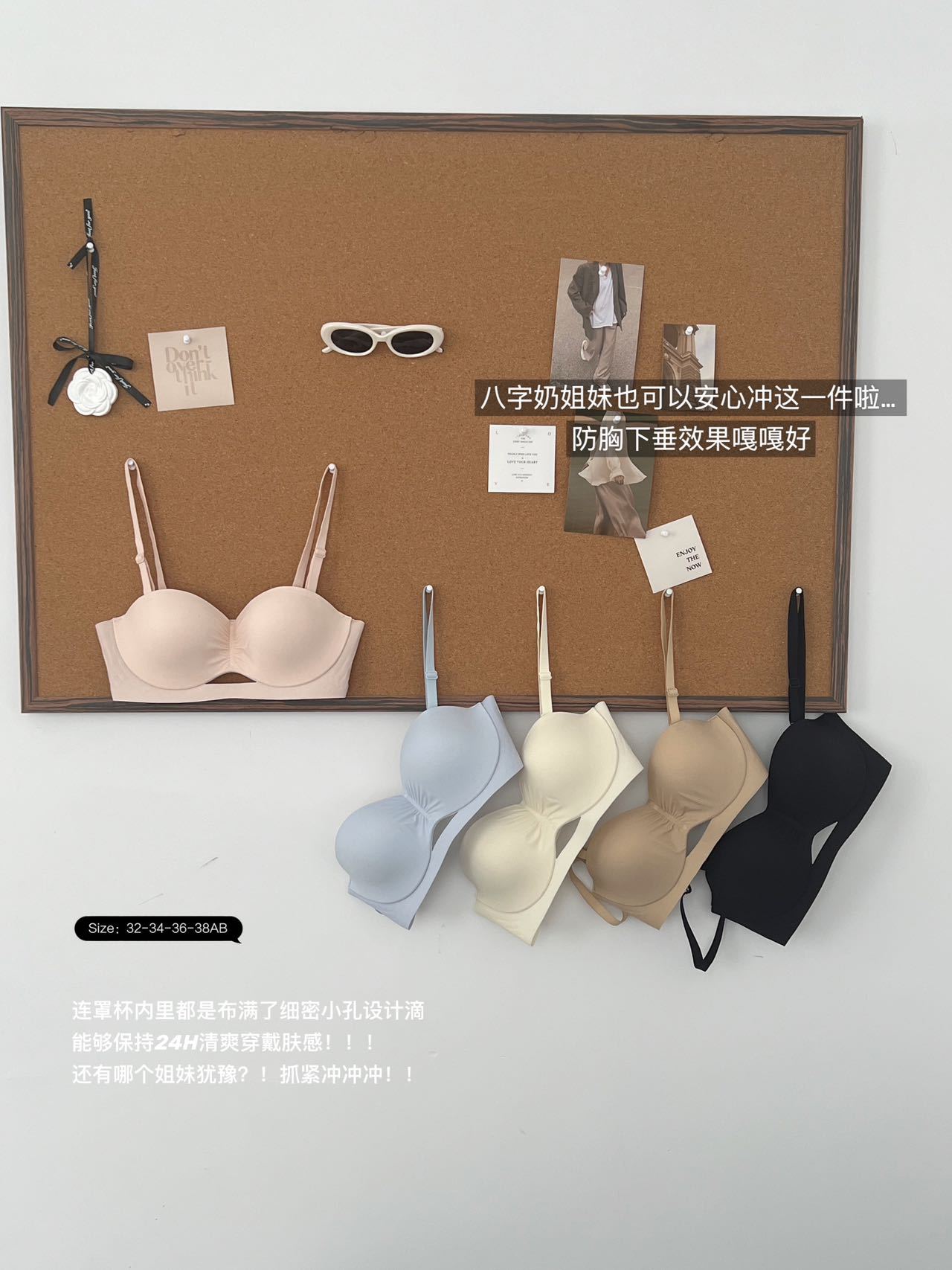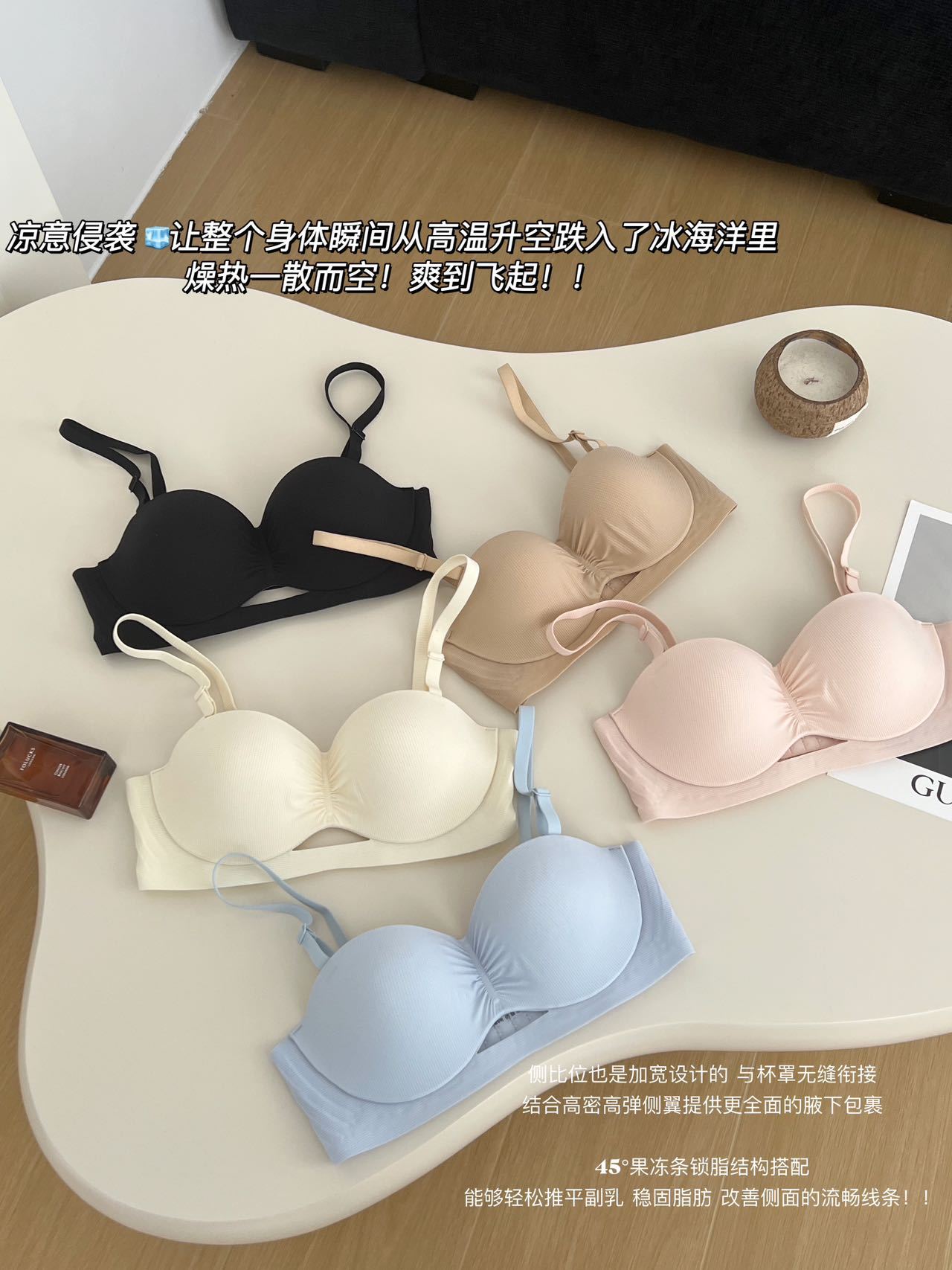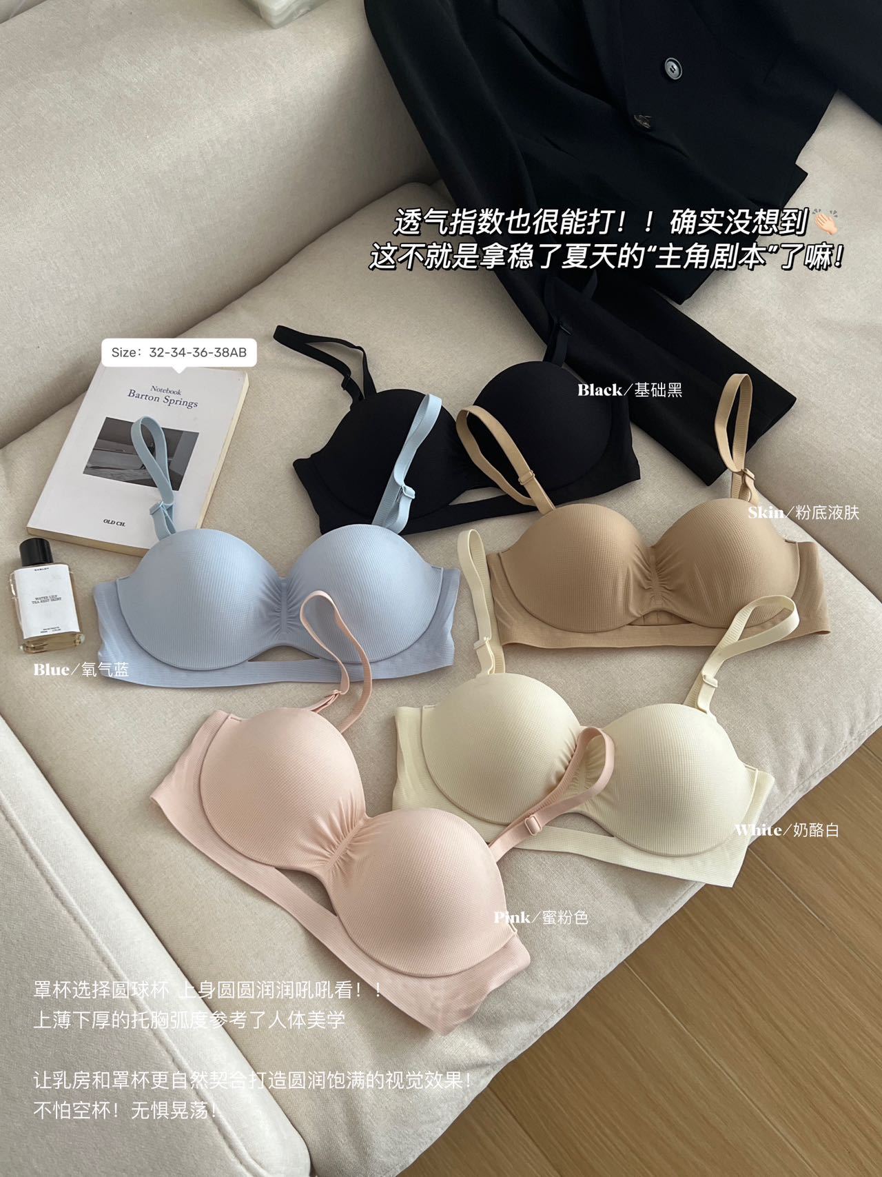 Ropa Interior de Base Líquida para Mujer Color Piel Invisible Media Copa Pecho Pequeño Recoge Verano Fino Fresco 2025 Anticaída Sostén Grande