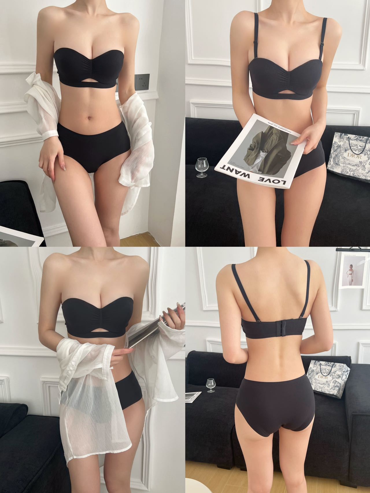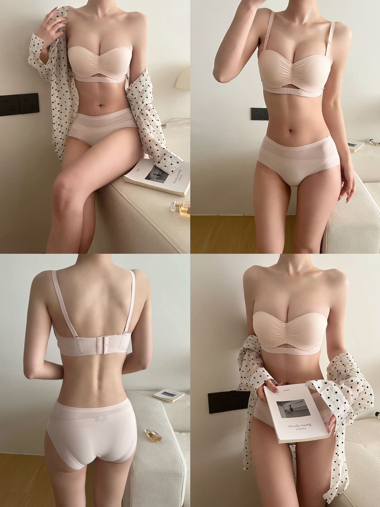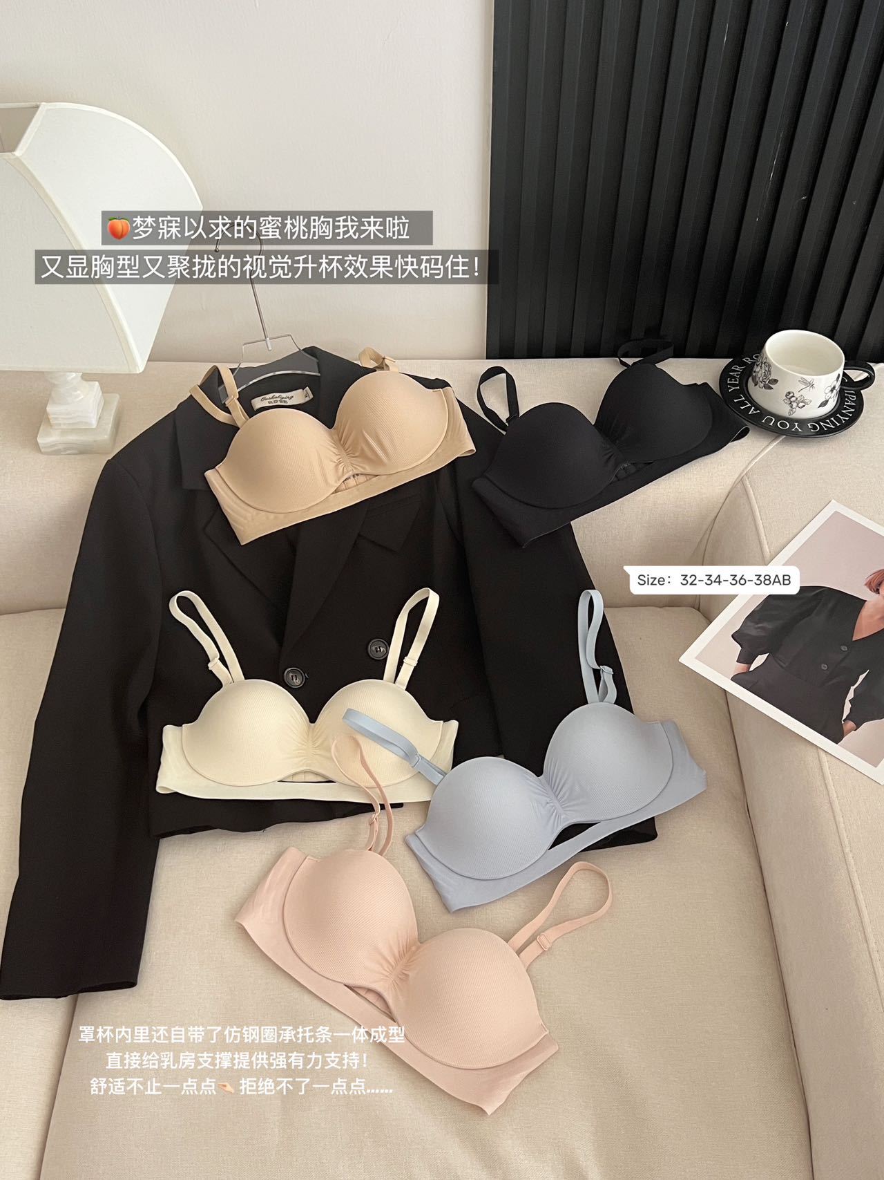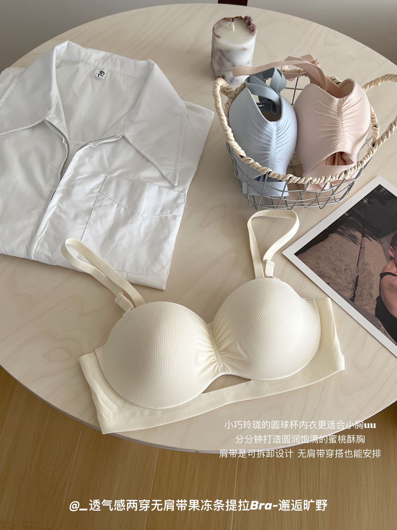 Ropa Interior de Base Líquida para Mujer Color Piel Invisible Media Copa Pecho Pequeño Recoge Verano Fino Fresco 2025 Anticaída Sostén Grande