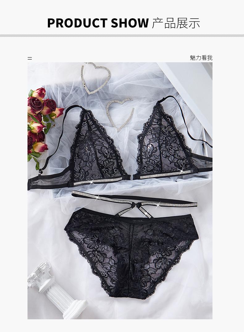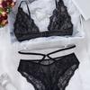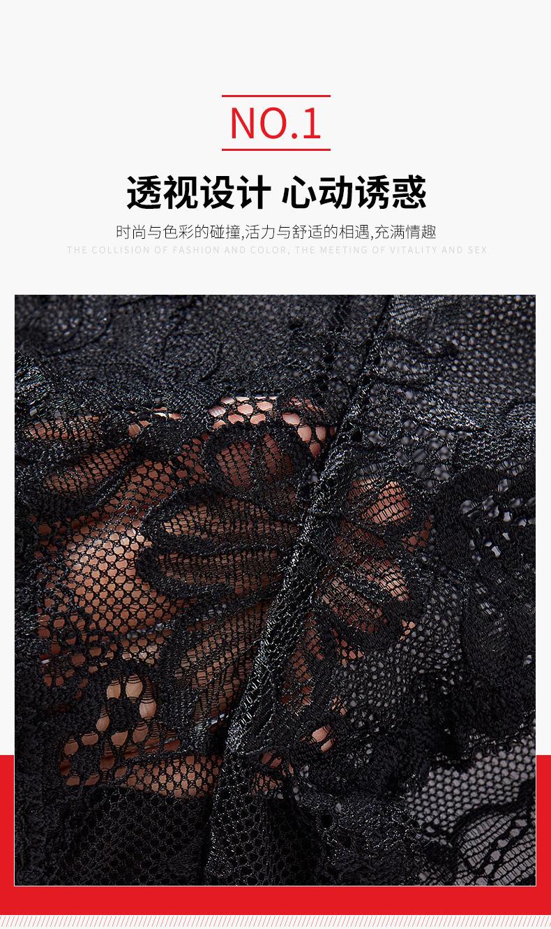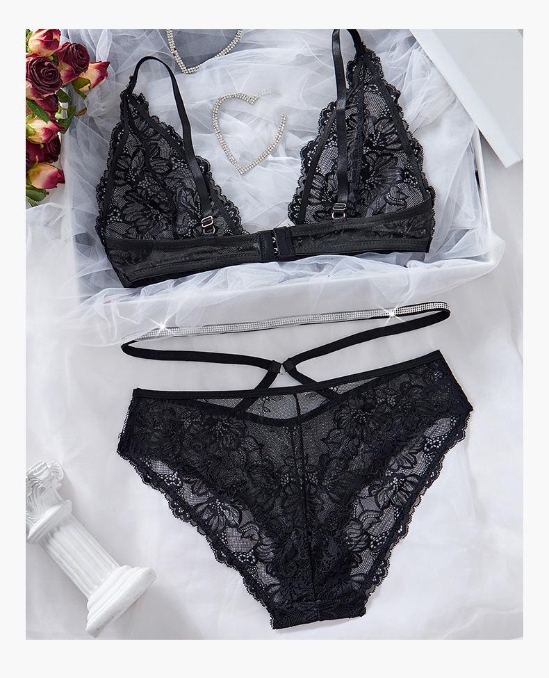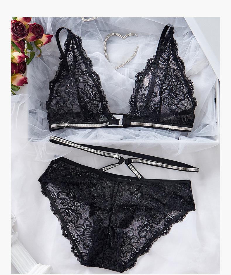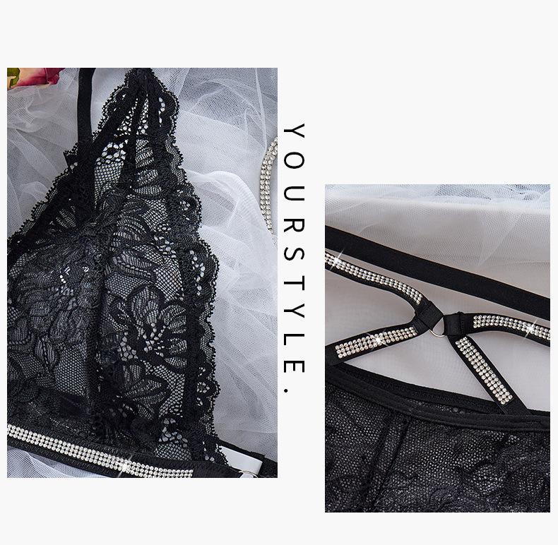 El conjunto más sexy de Amazon: lencería sexy de encaje negro con malla bordada y transparencias de tres puntos.