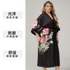 Yaoting WB Pijama de Satén de Talla Grande para Mujer Primavera Verano Manga Tres Cuartos Estampado Holgado Camisón Bata Ropa de Casa Conjunto de Dos Piezas Mujer