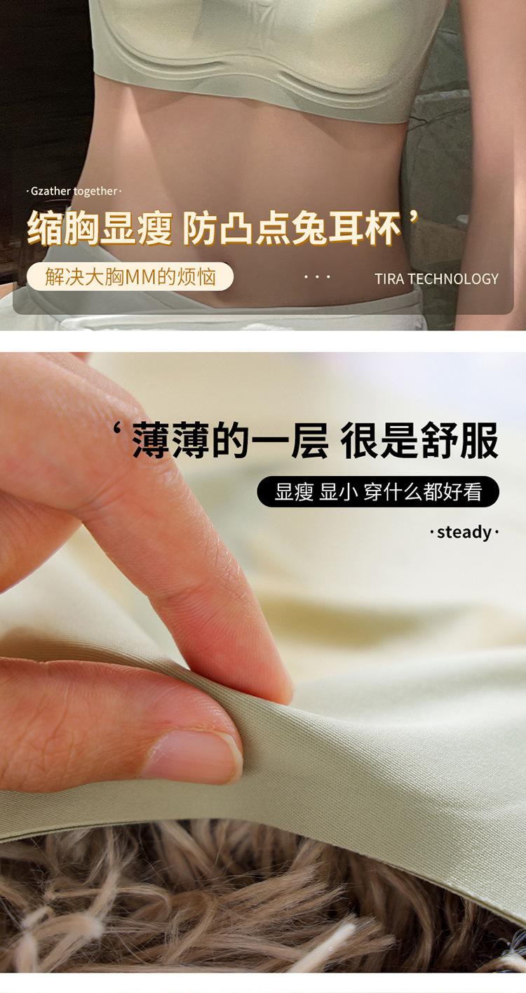 Ropa interior con orejas de conejo para mujeres con busto grande para hacerlo lucir más pequeño, brasier de verano superdelgado, sin costuras, con soporte lateral para prevenir la caída, talla extra, hermoso brasier de espalda