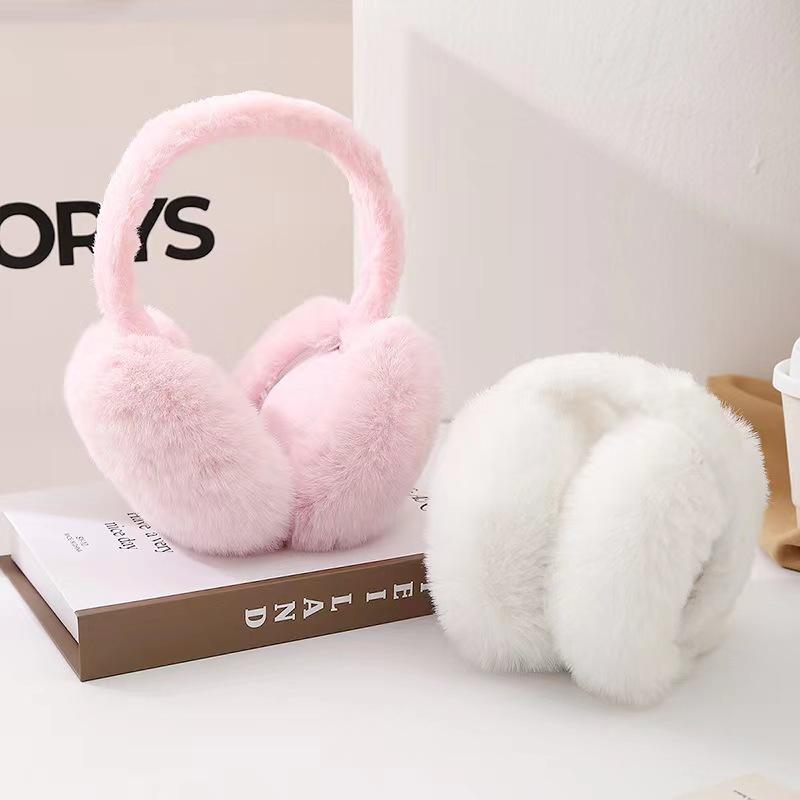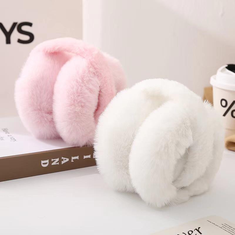 Orejeras Plegables Invierno Cálido Orejeras para Hombre y Mujer Estilo Coreano Lindo Estudiantes Imitación Piel de Conejo Gruesas Felpa Bolsa para Orejas