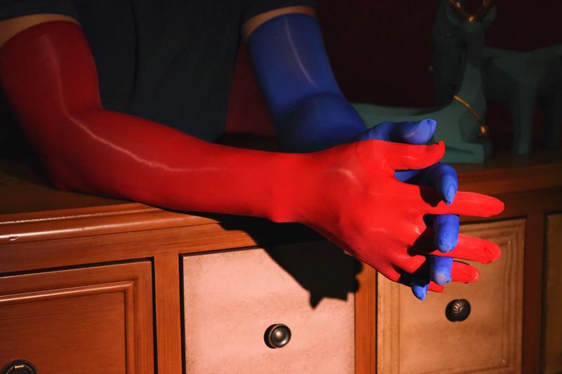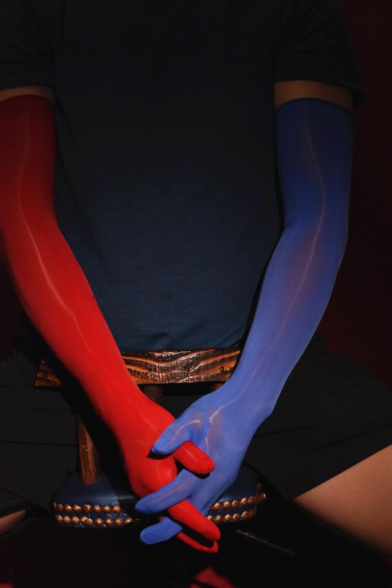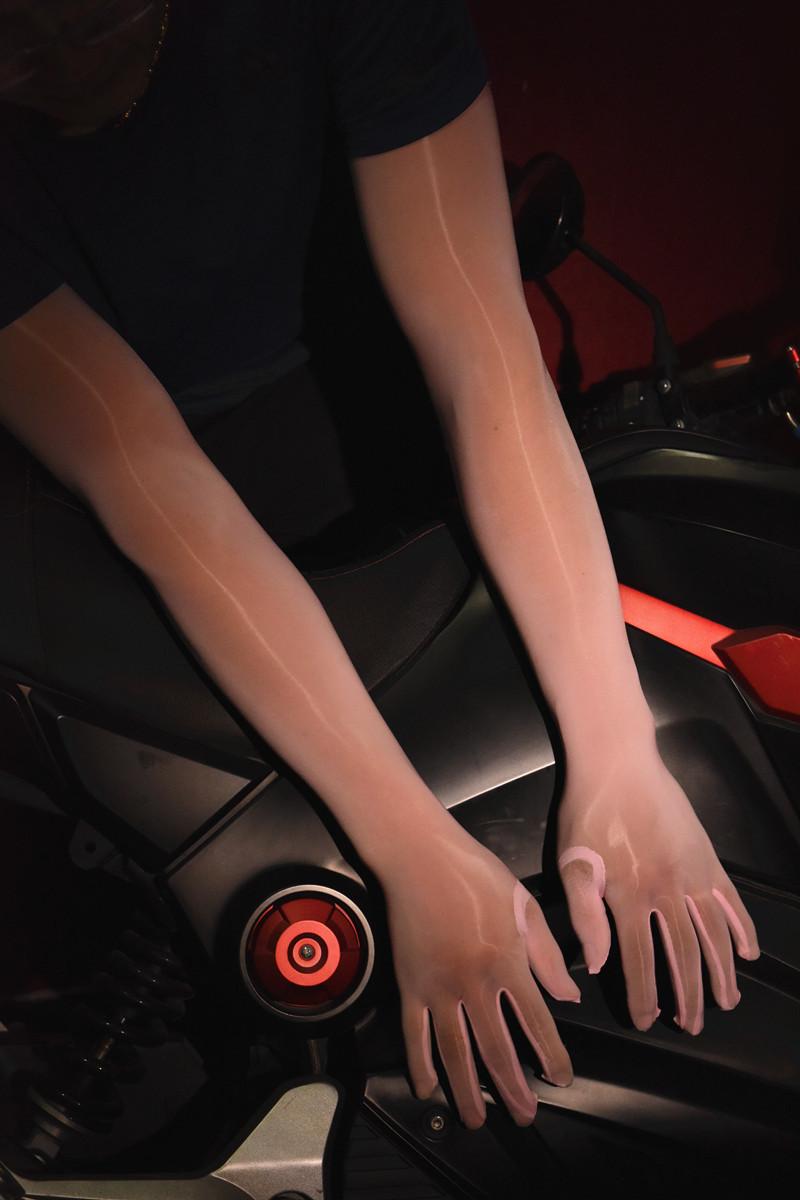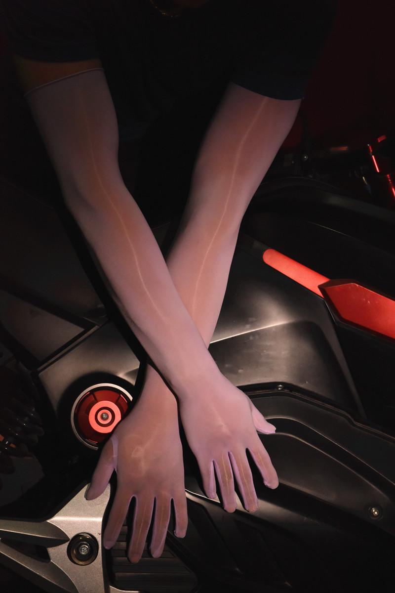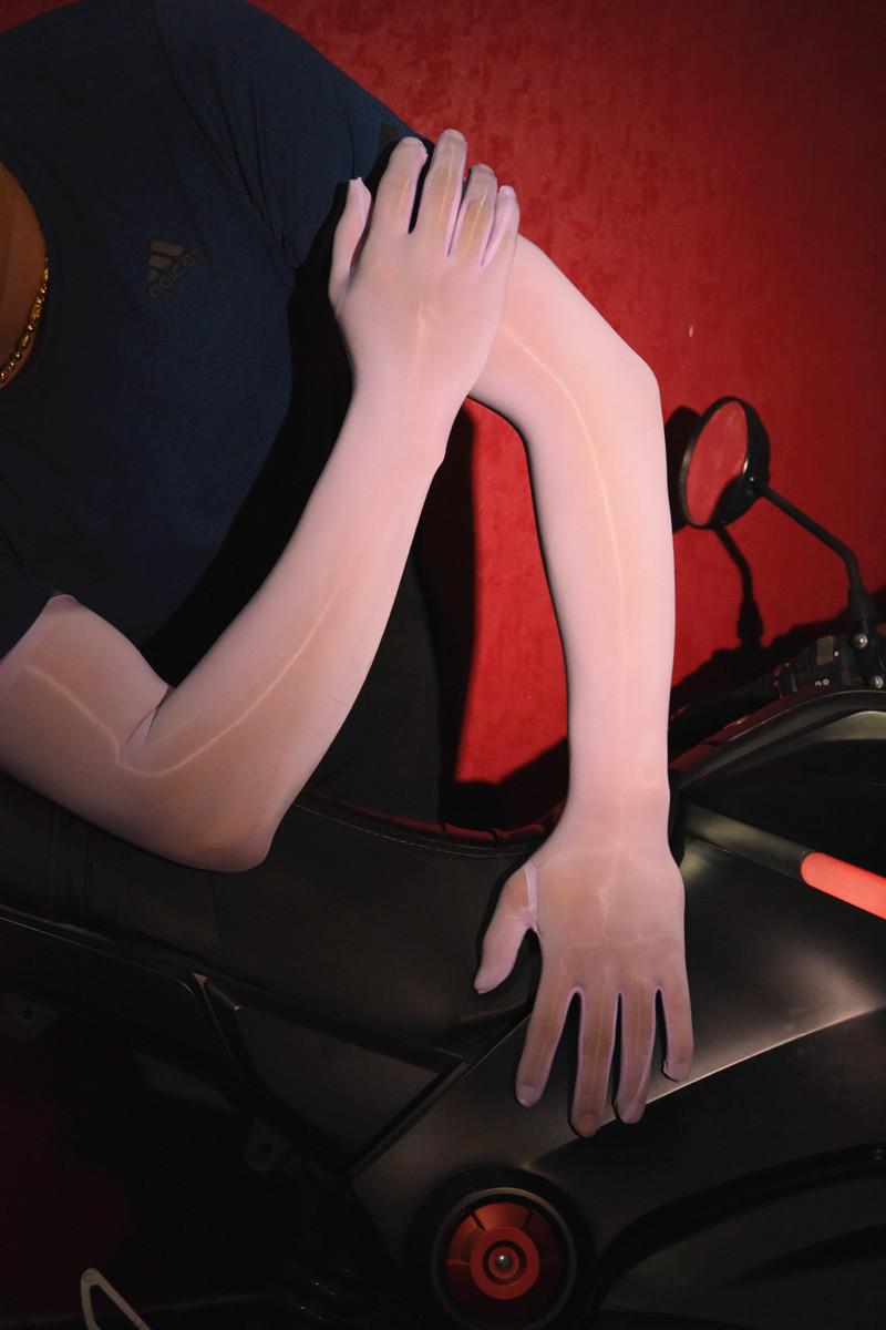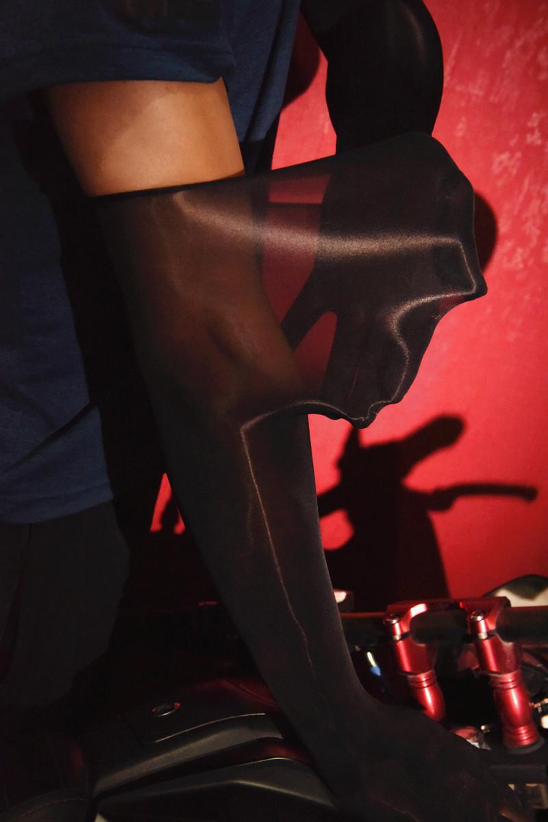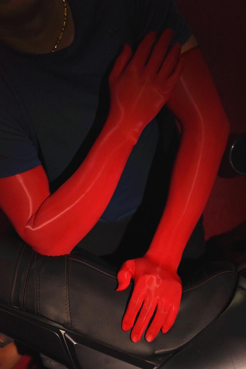 [oily five-finger gloves]