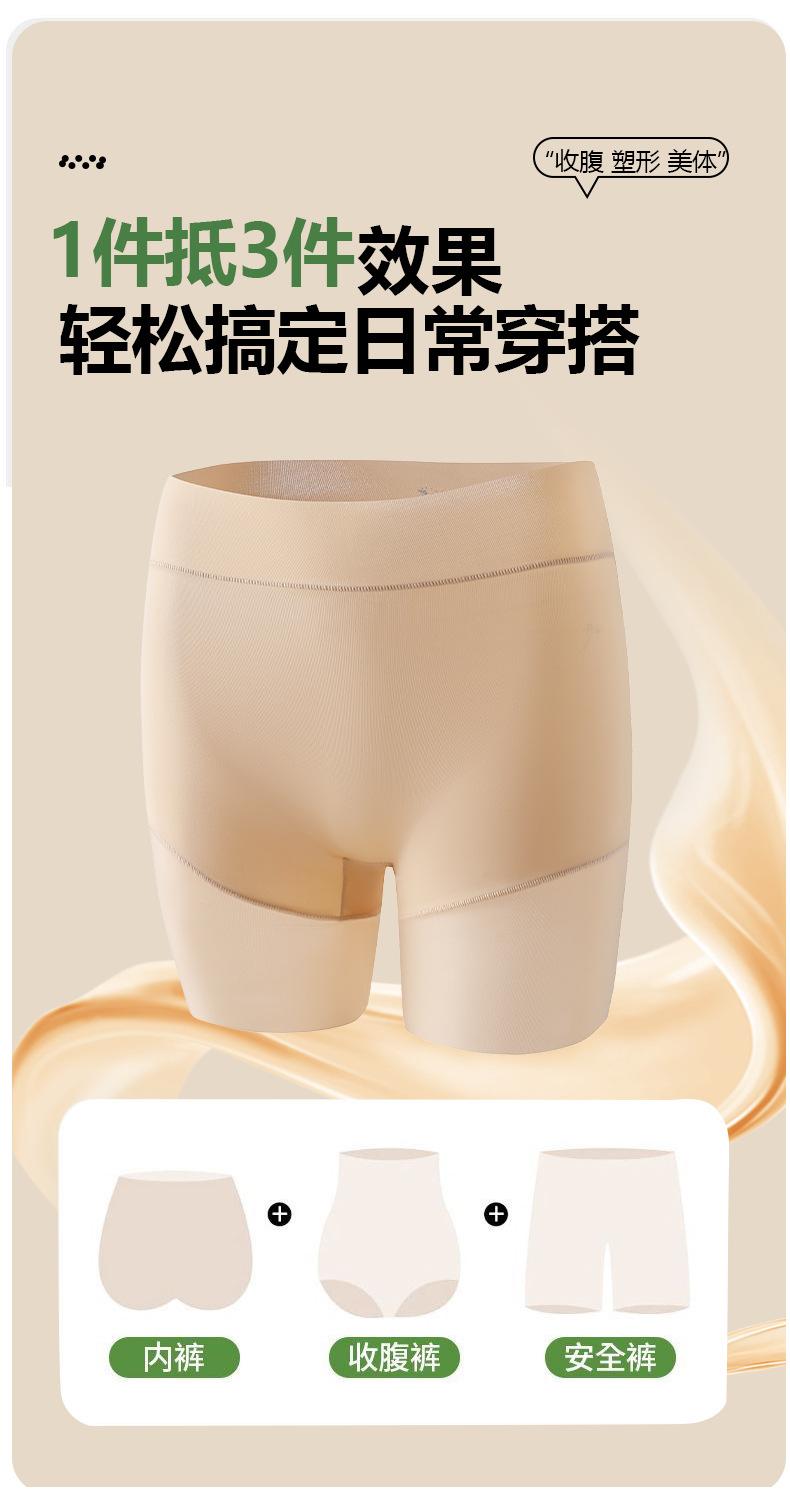 Braguitas de Control de Abdomen Levanta Glúteos Pantalones de Seguridad Tres en Uno Seda de Hielo Sin Costuras Cintura Alta Moldeadoras Leggings Bóxer Deportivos para Mujer