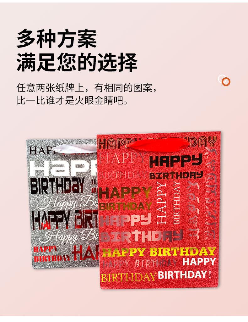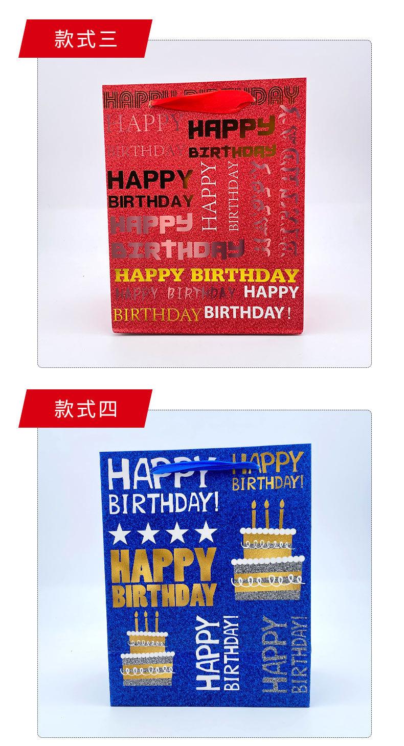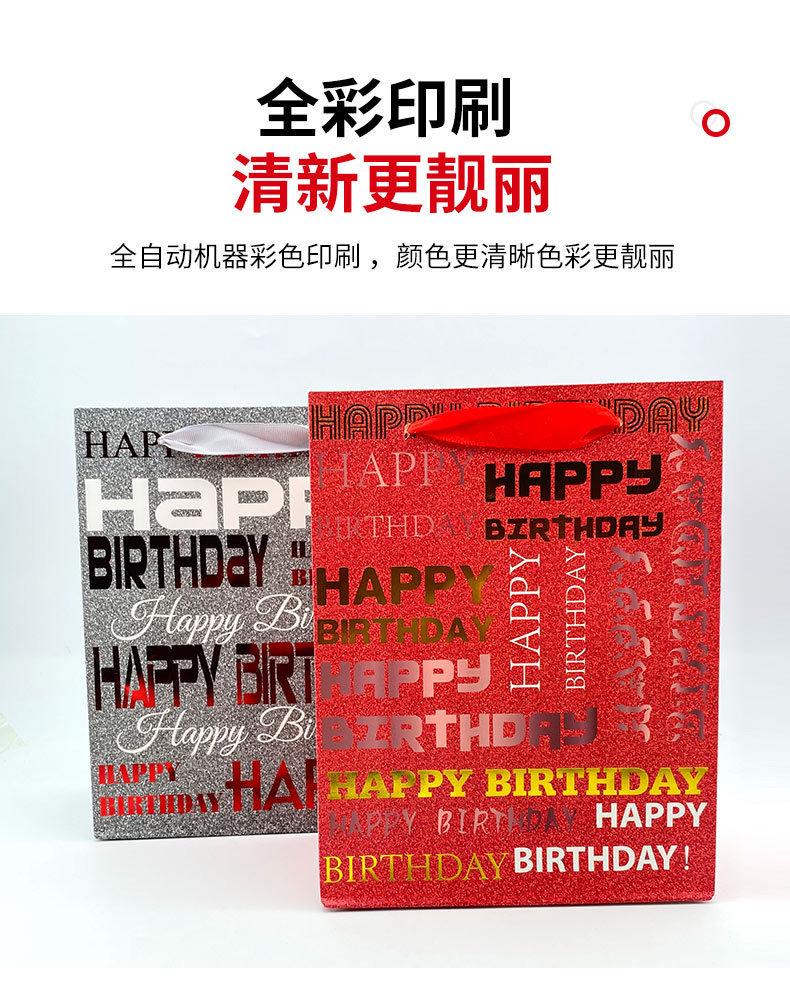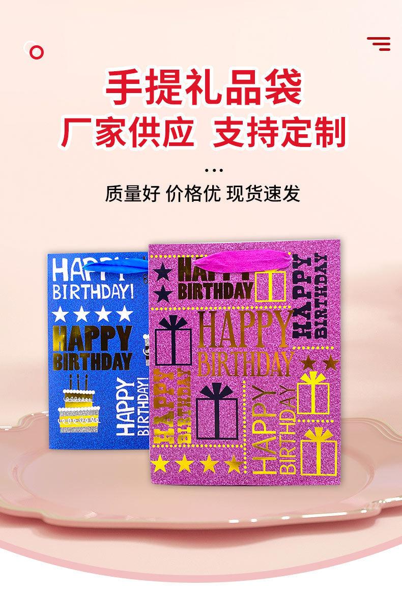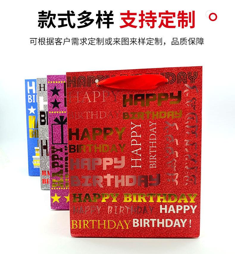 Serie de cumpleaños bronceado colorido de alta calidad exquisitas bolsas de regalo comercio exterior transfronterizo bolsas de papel portátiles en stock al por mayor