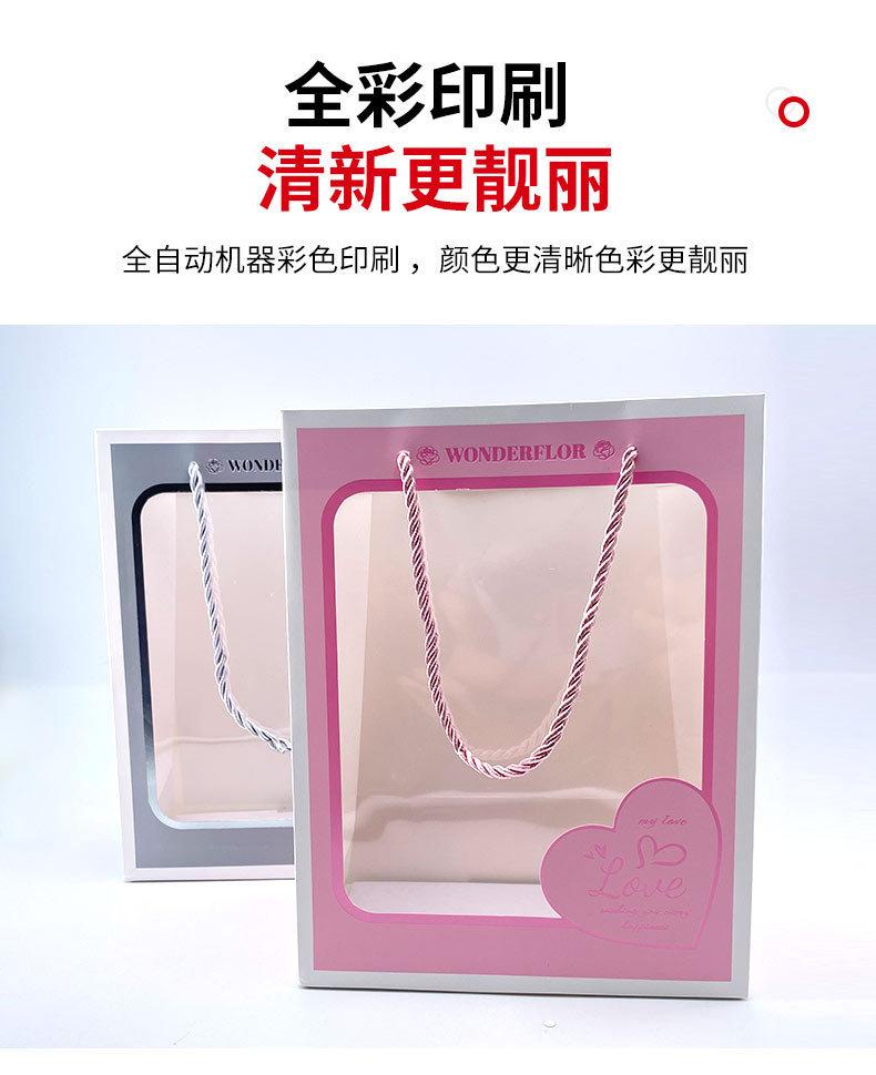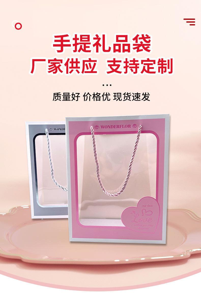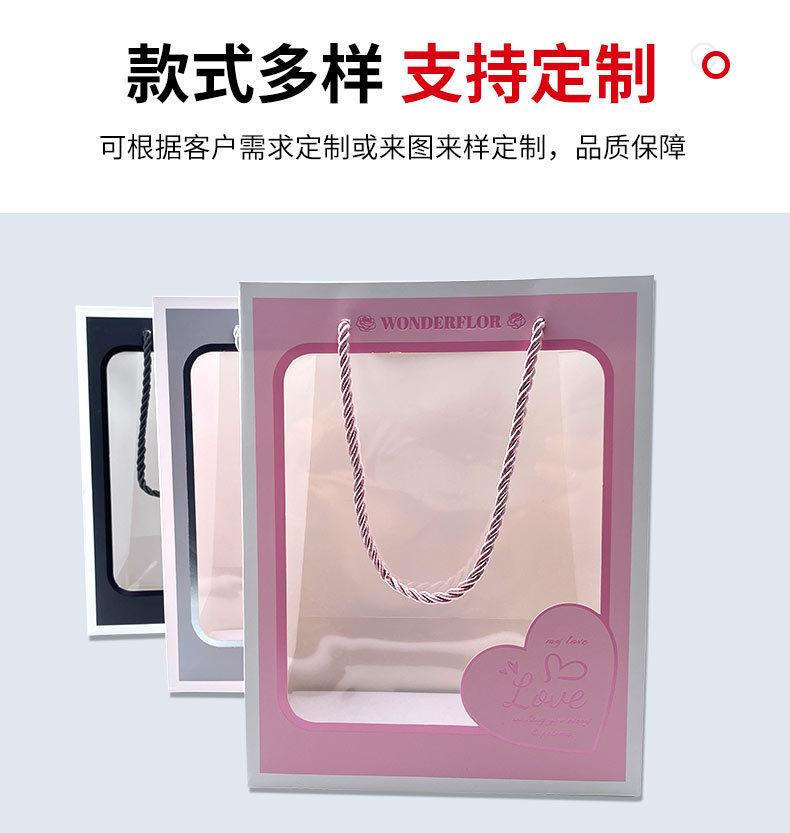 Bolsa con ventana transparente, bolsa con ventana, bolsa de regalo de flores, ramo de flores, juguete, regalo para el día del maestro, bolsa de embalaje para el día de San Valentín