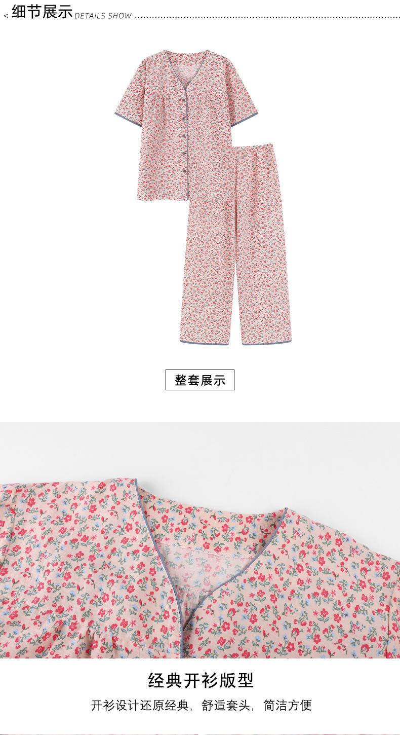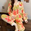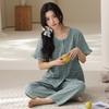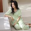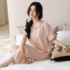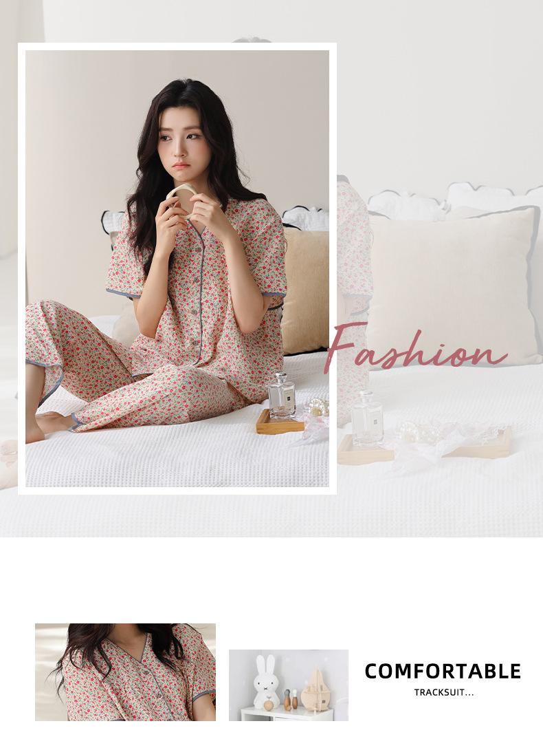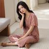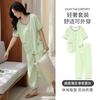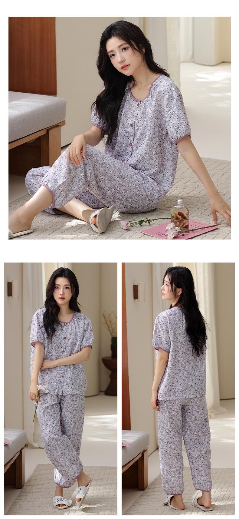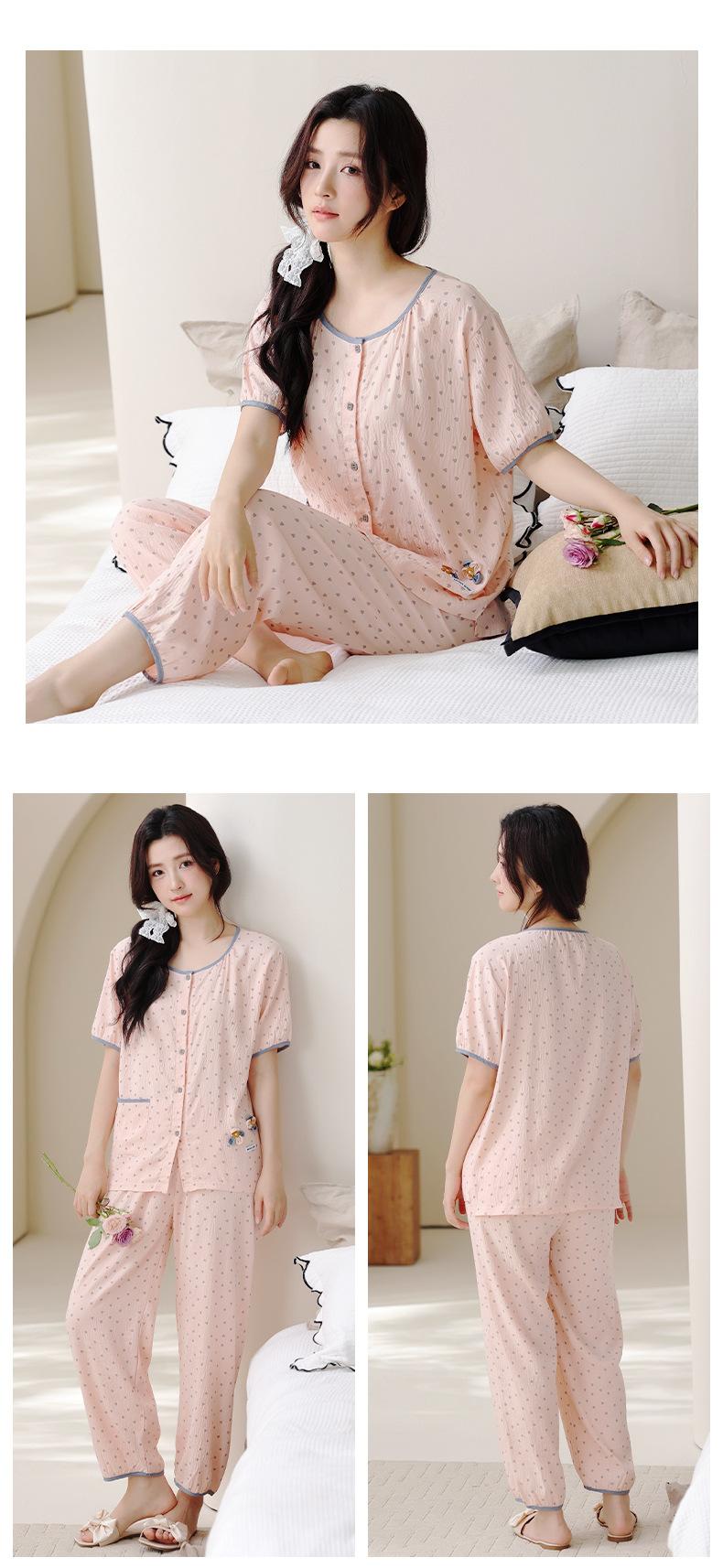 Verano Nuevo Algodón Nube Manga Corta Pijama de Mujer Pantalón Largo Cárdigan Suelto Fresco Cómodo Estampado Conjunto de Ropa de Hogar