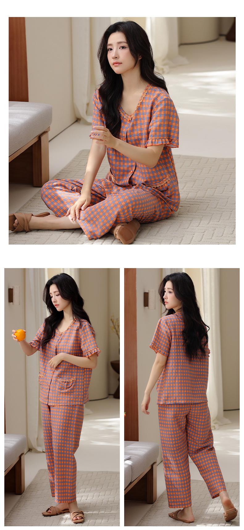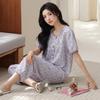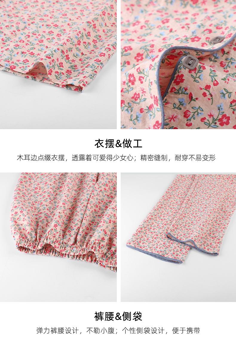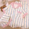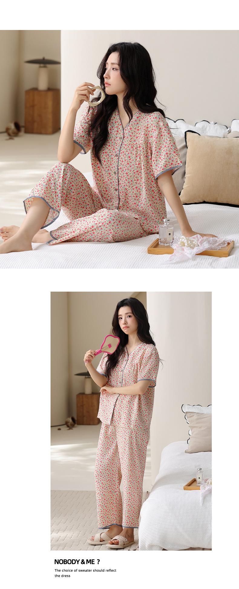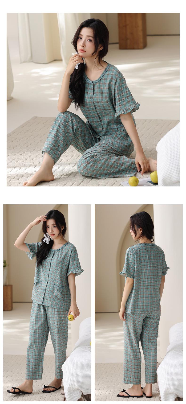 Verano Nuevo Algodón Nube Manga Corta Pijama de Mujer Pantalón Largo Cárdigan Suelto Fresco Cómodo Estampado Conjunto de Ropa de Hogar