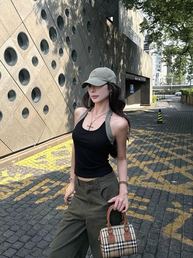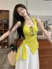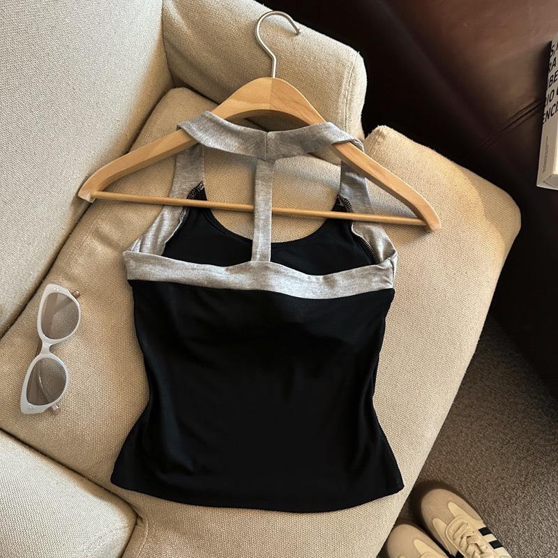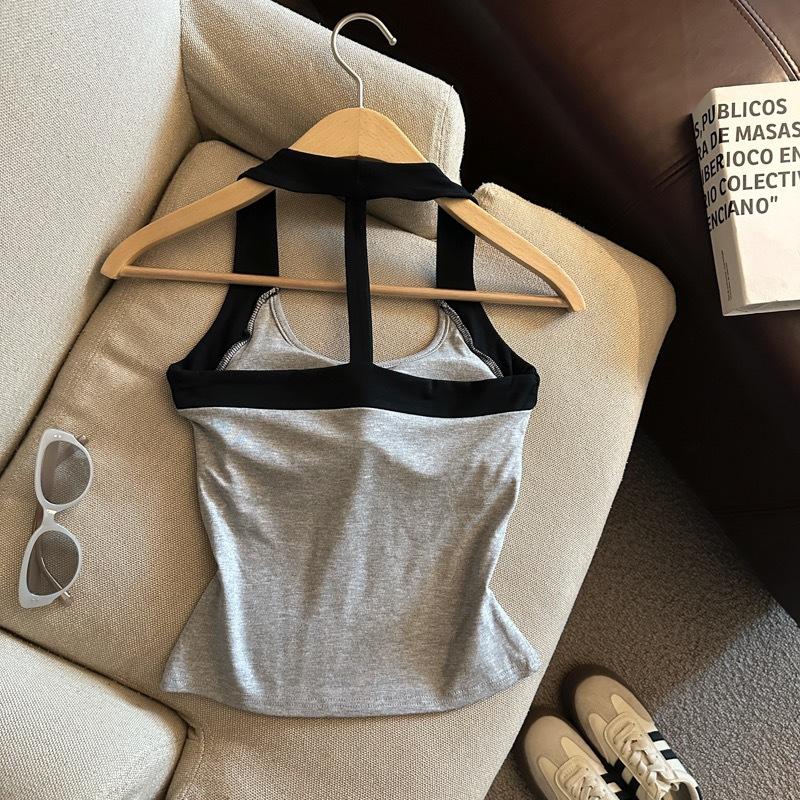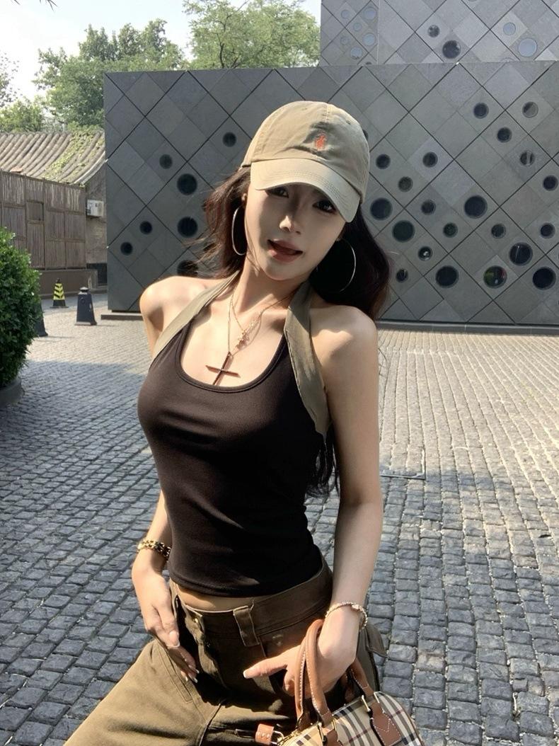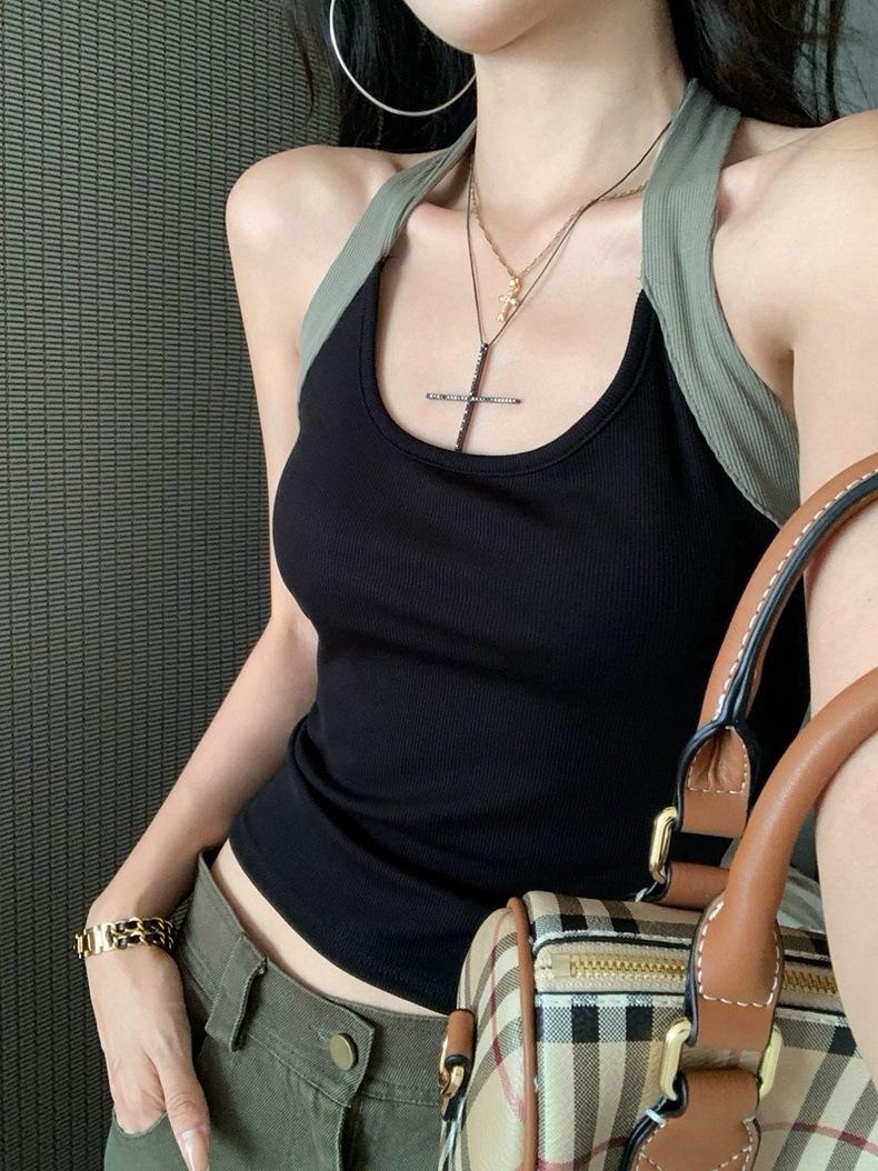 Top tank halter de tirantes sin espalda ajustado para chica caliente pura y sexy, ropa exterior de verano para mujer, top corto sin mangas, espalda hermosa