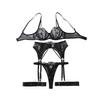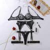 Moda Transfronteriza Europea y Americana Transparente Bordado Flor Espalda Descubierta Tirantes Espagueti Adelgazante Moldeador Lencería Sexy Conjunto de Dos Piezas