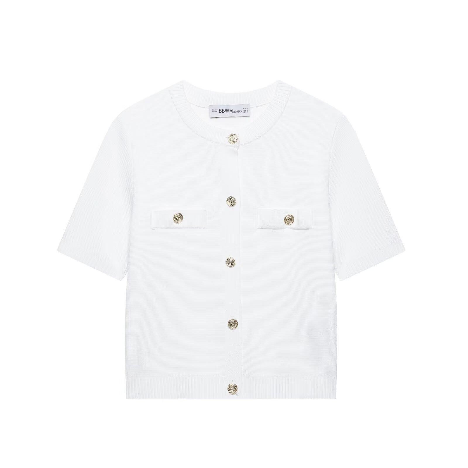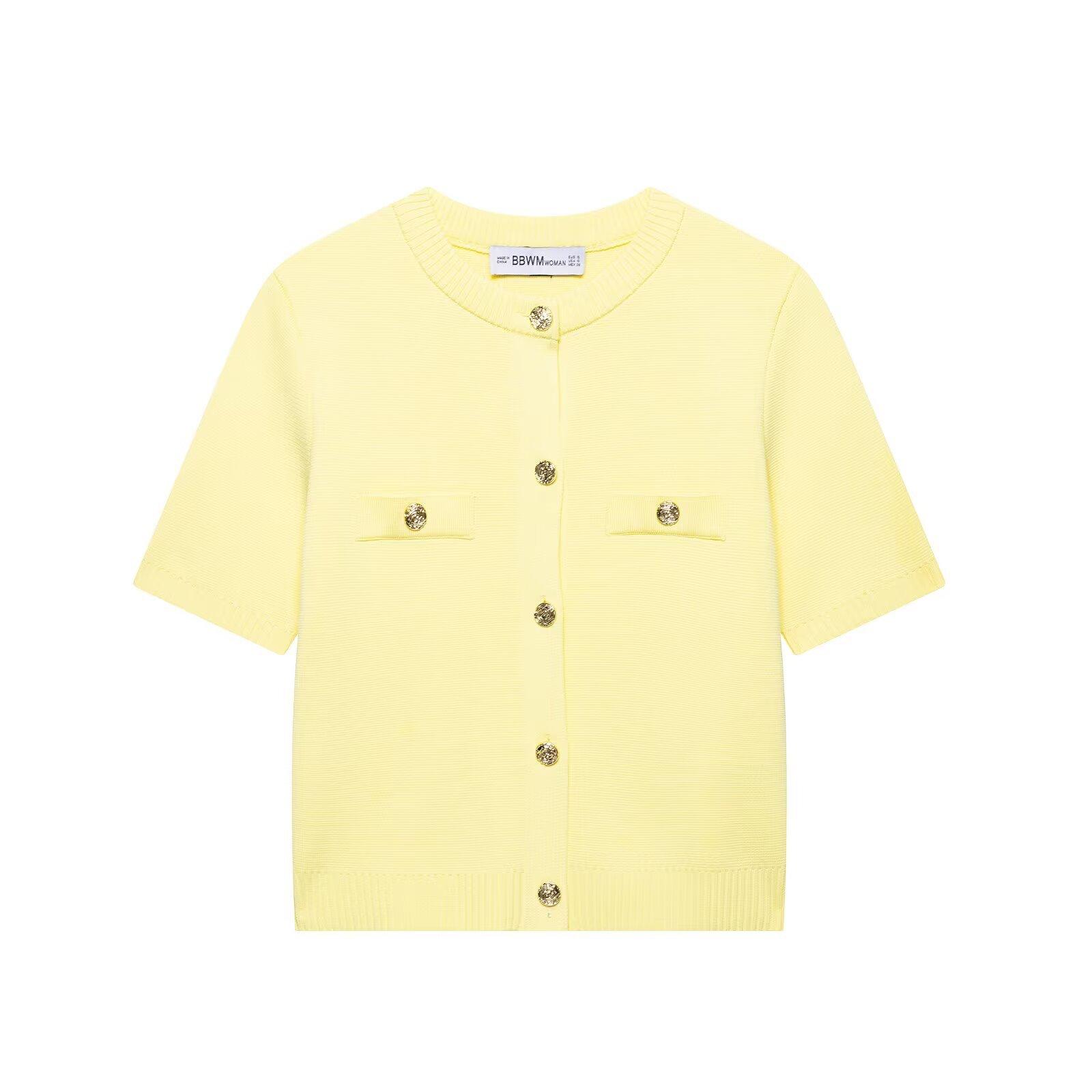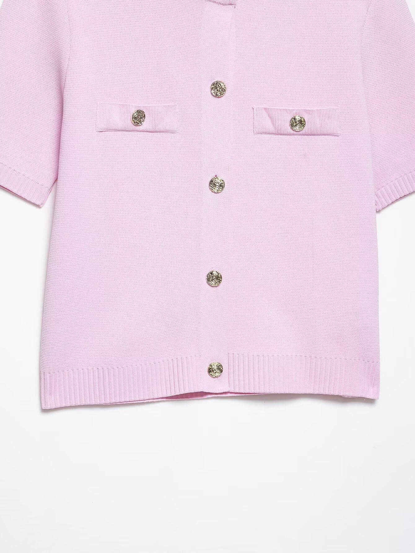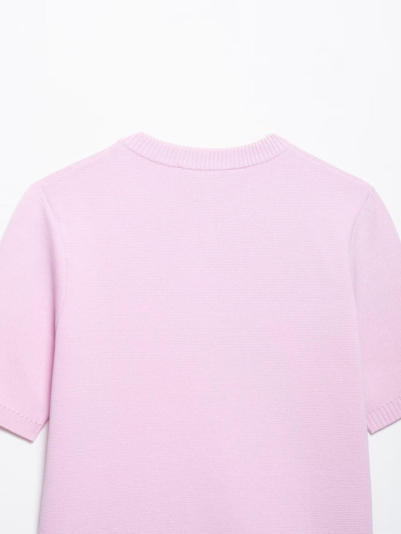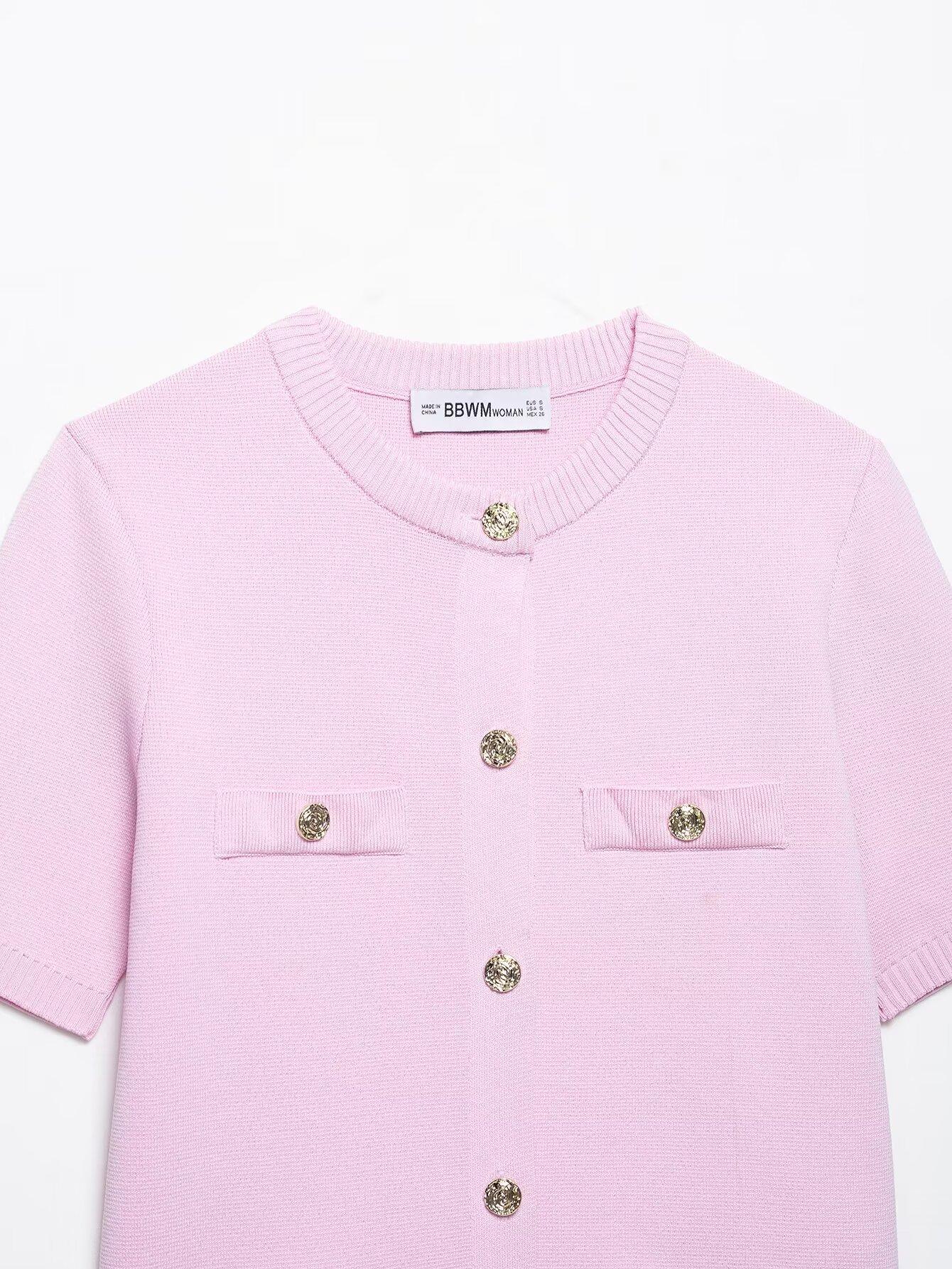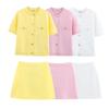 2025 Verano Nuevo Europeo y Americano Transfronterizo Moda Callejera para Mujer Chaqueta de Punto de Manga Corta y Traje de Falda W03 6556