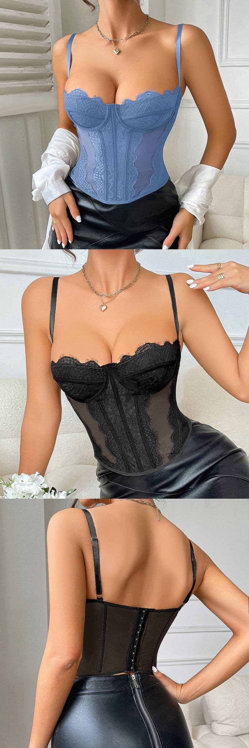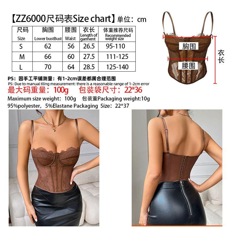 Corsé Sexy Moldeador de Cuerpo de Encaje Espina de Pescado Nuevo Transfronterizo Europeo y Americano, Transpirable, Delgado, Hermoso Corsé de Espalda que se Puede Usar Exteriormente