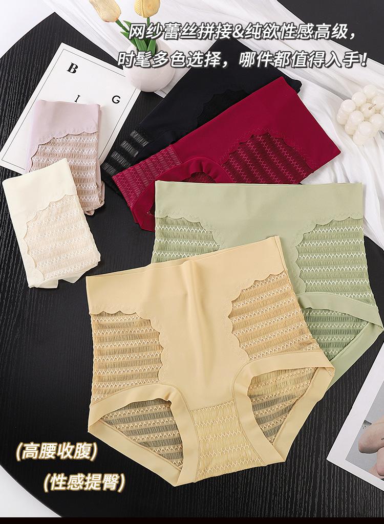 Ropa interior de encaje de cintura alta para mujer Sexy Cruz Roja Abdominal Sensación Desnuda Sin Marcas Cómodos Calzones para Niñas talla extra