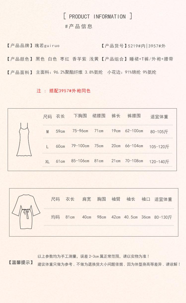5219 black (nightgown + t pants), 3957 black (robe + belt), 5219 white (nightgown + t pants), 3957 white (robe...