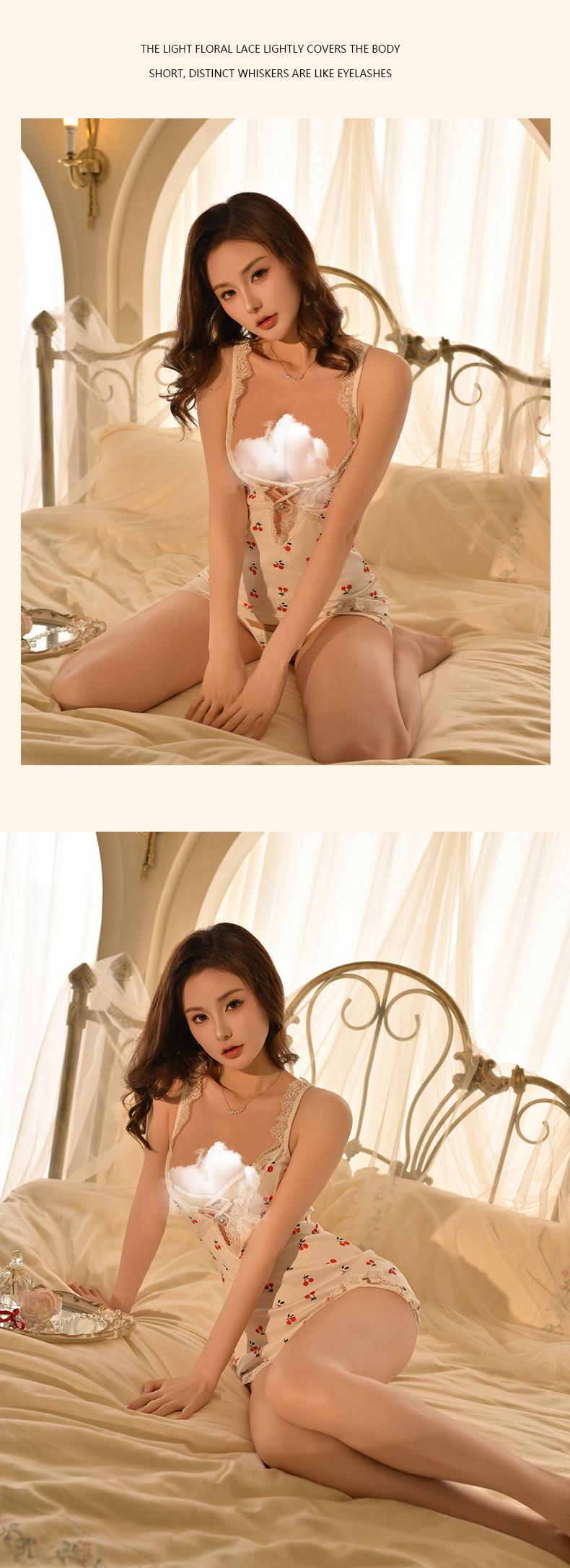 Lencería Sexy Camisón de Encaje Deseo Puro Blanco Tirantes Espagueti Camisón Floral Liberación Rápida Pasión Conjunto de Lencería