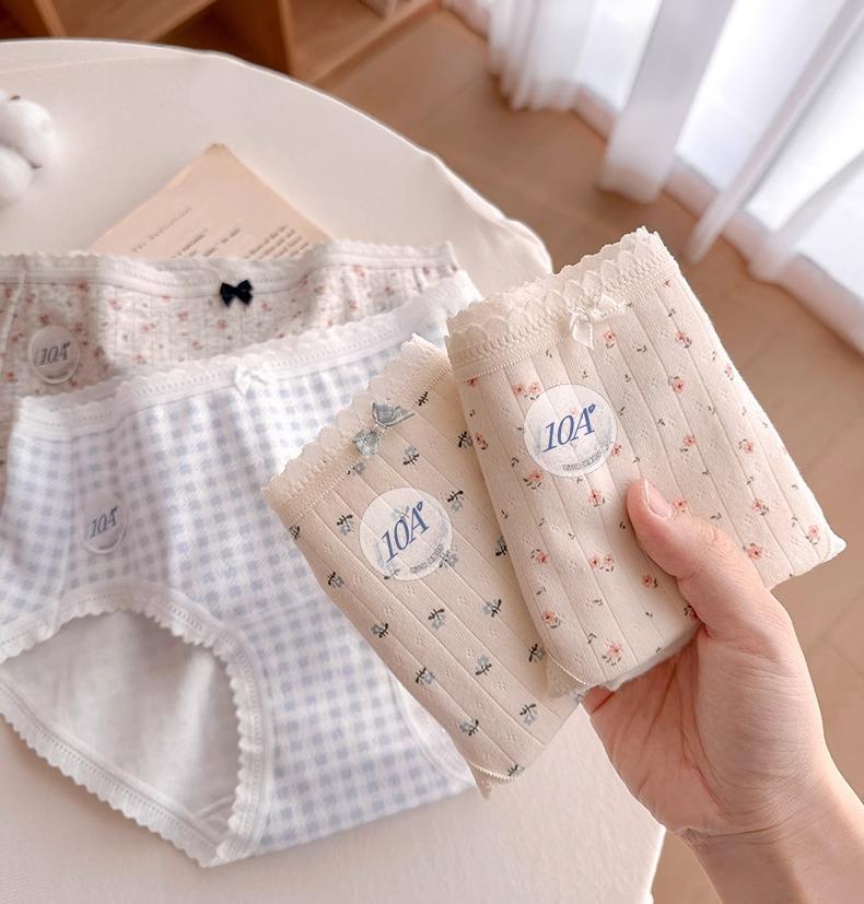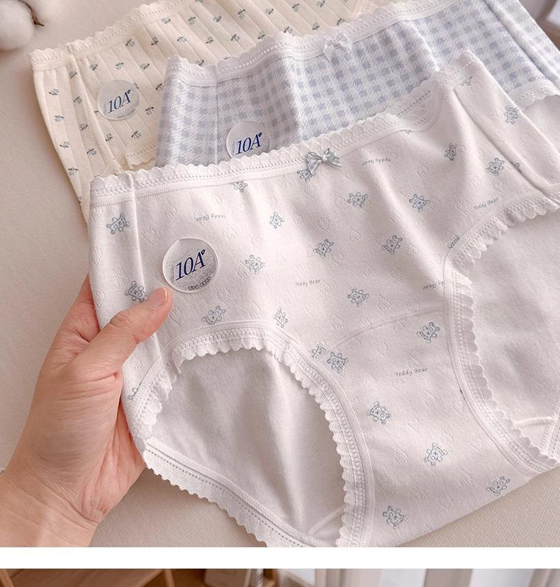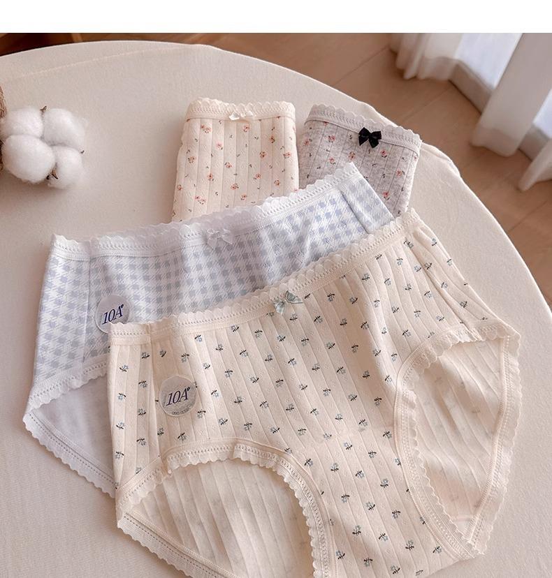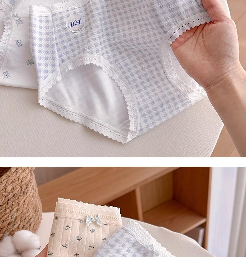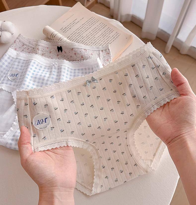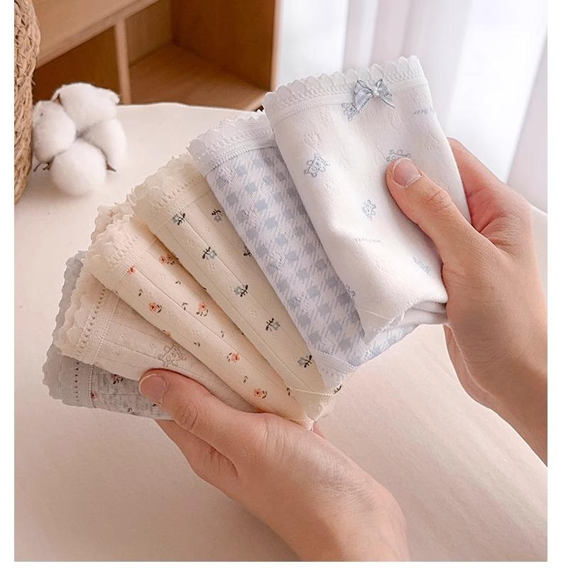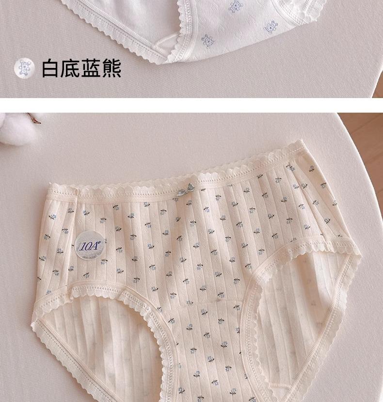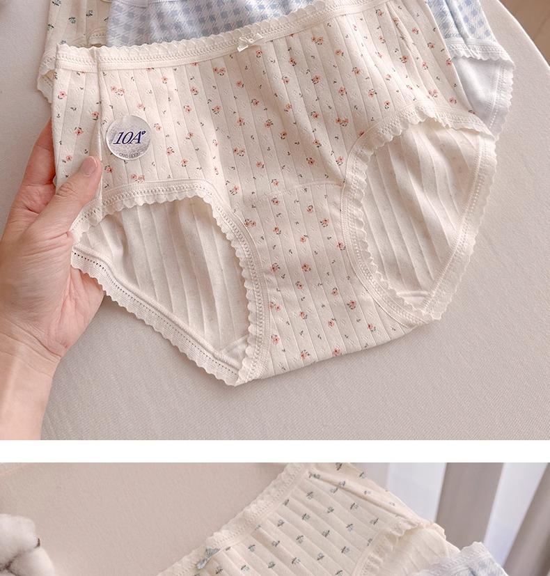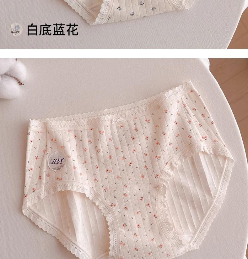 Calzones de Cintura Media Japoneses Florales para Niña Algodón Puro Suave Ceroso Amigable con la Piel Transpirable de Alta Elasticidad Amigable con la Piel para Mujer Algodón Puro