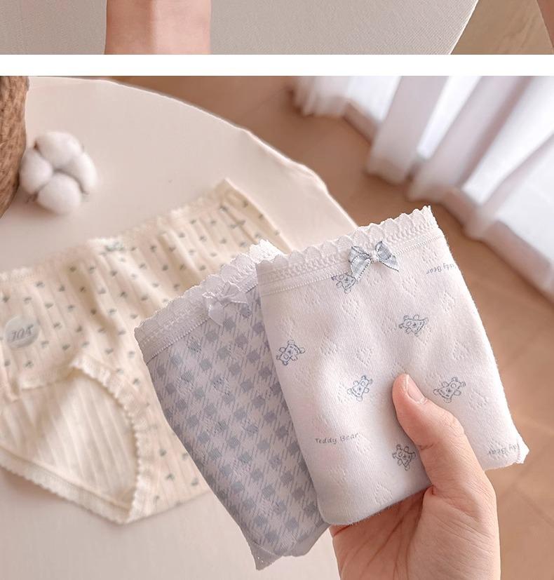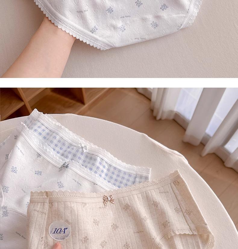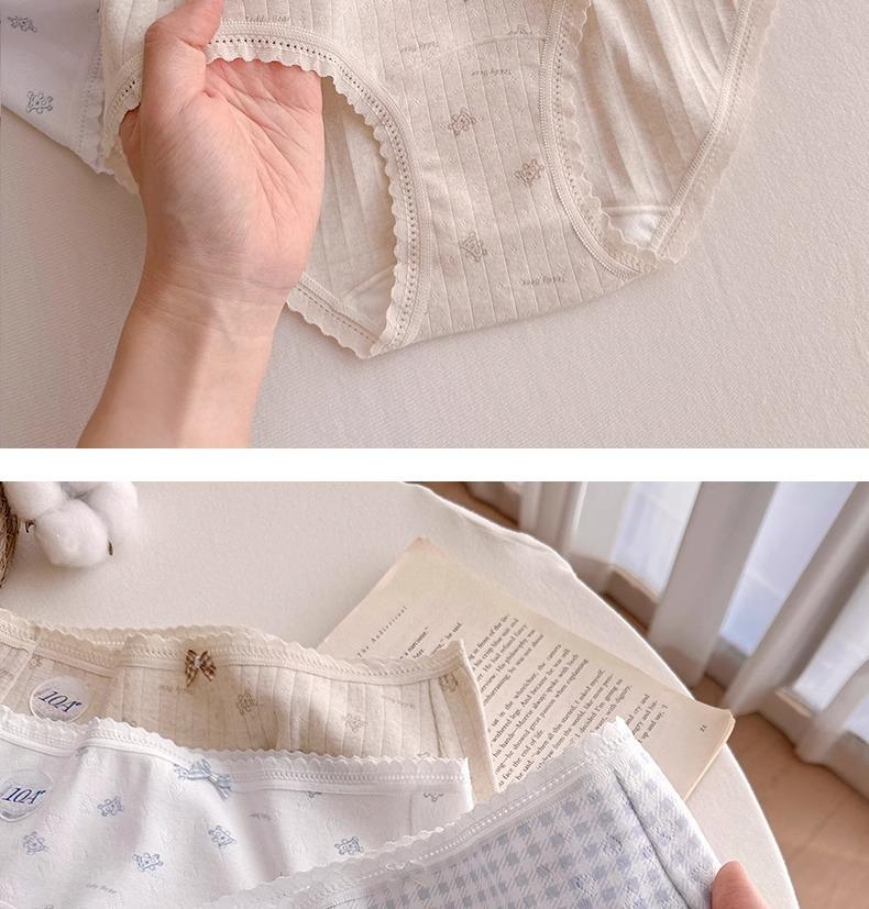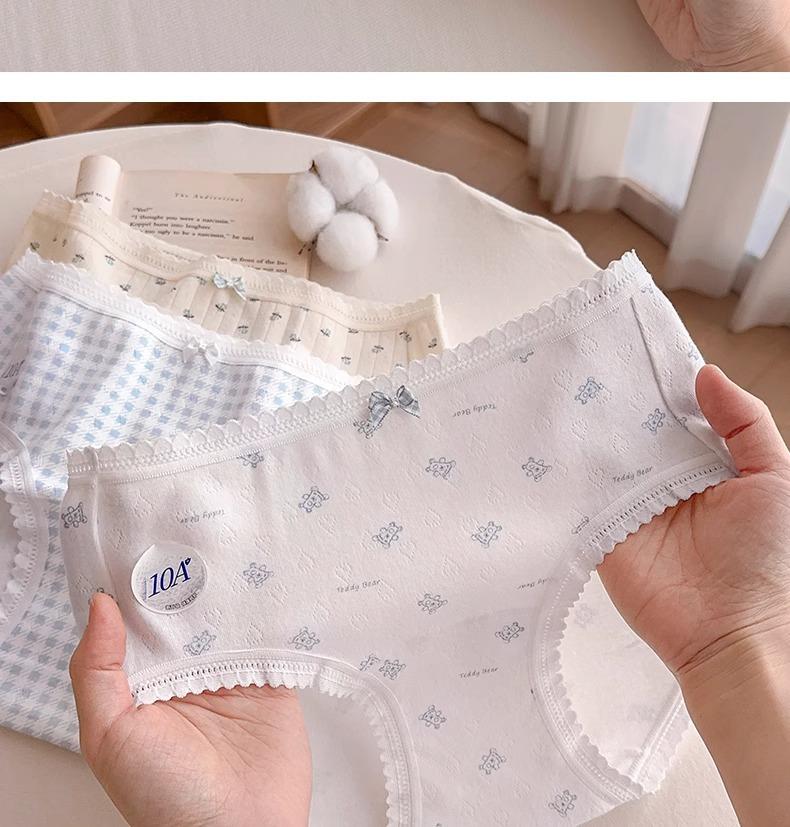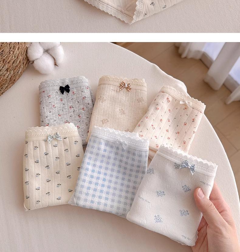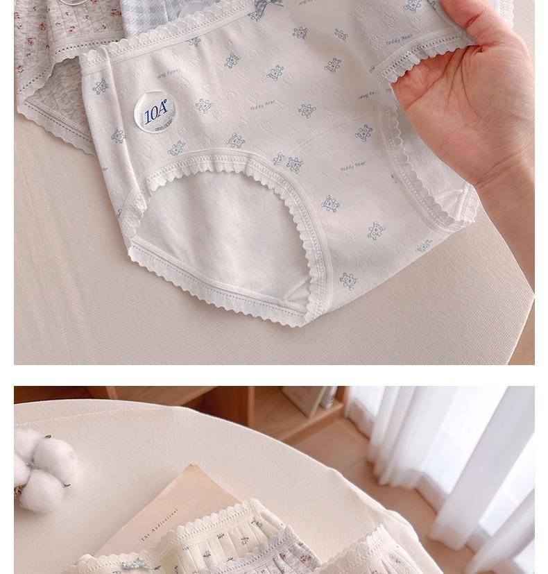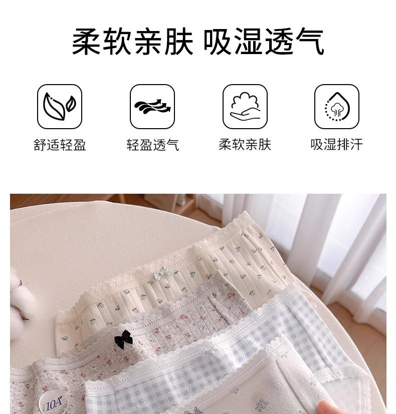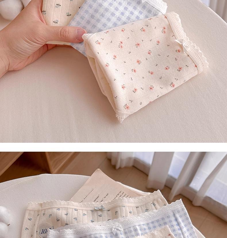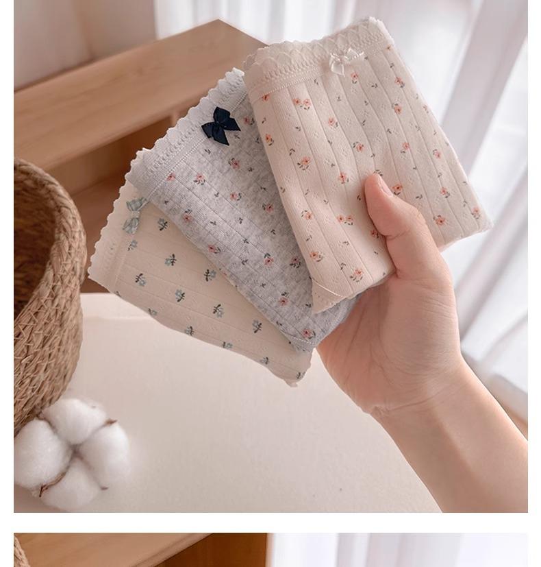 Calzones de Cintura Media Japoneses Florales para Niña Algodón Puro Suave Ceroso Amigable con la Piel Transpirable de Alta Elasticidad Amigable con la Piel para Mujer Algodón Puro