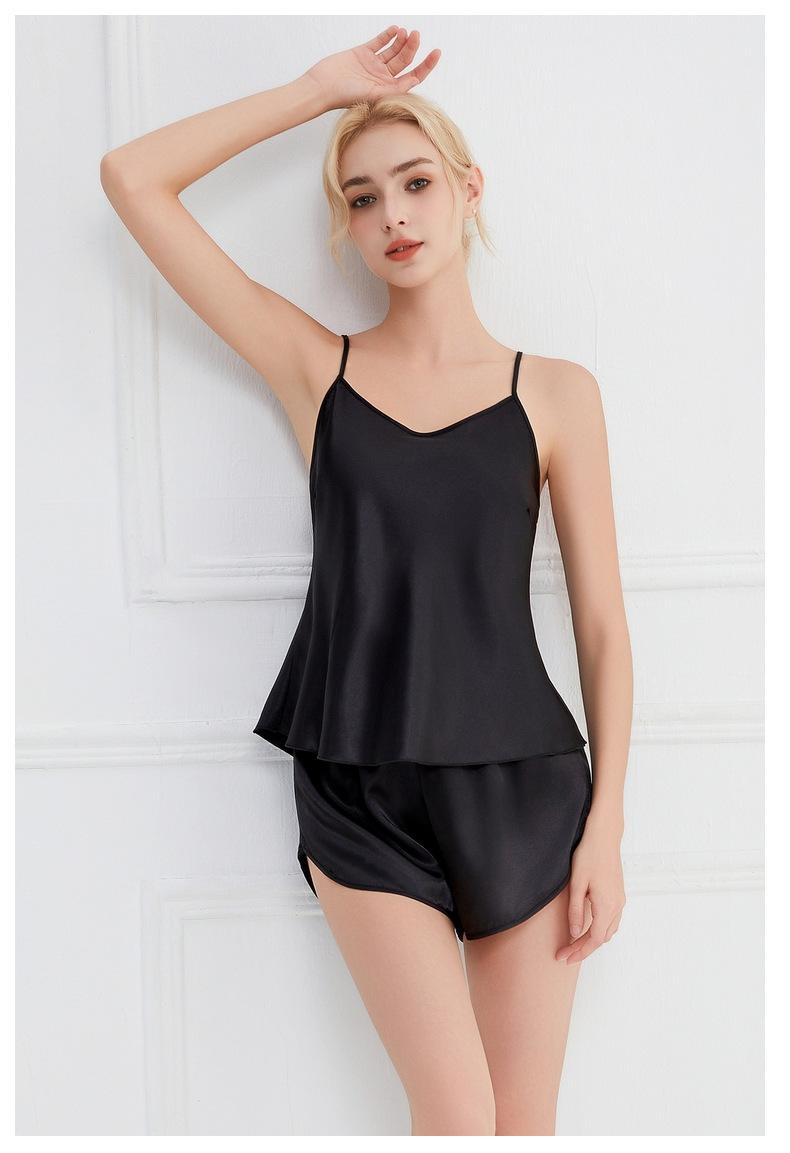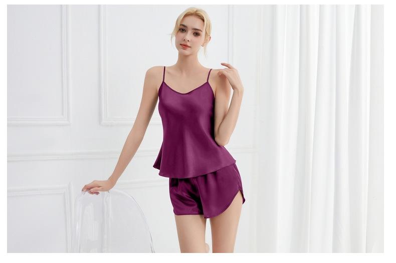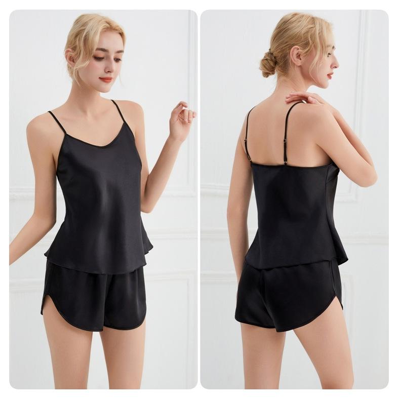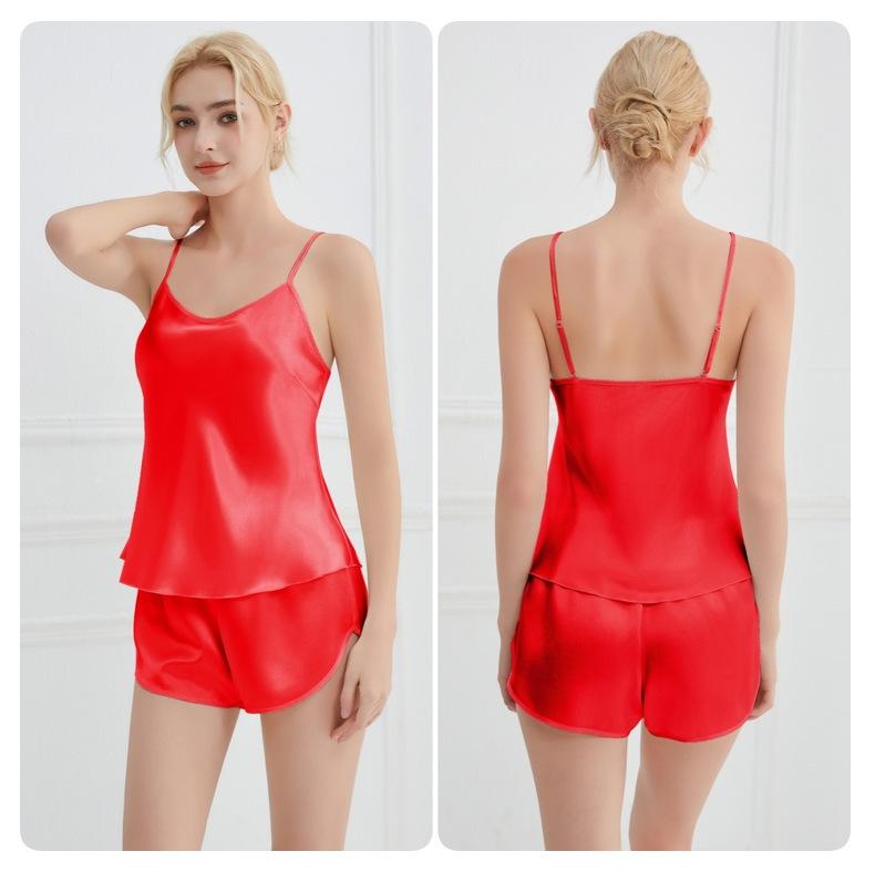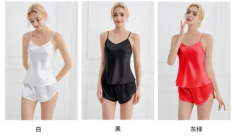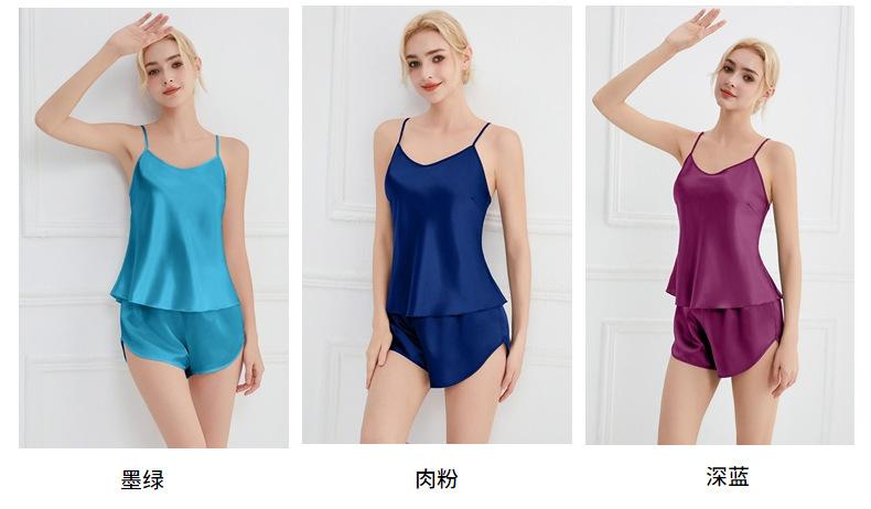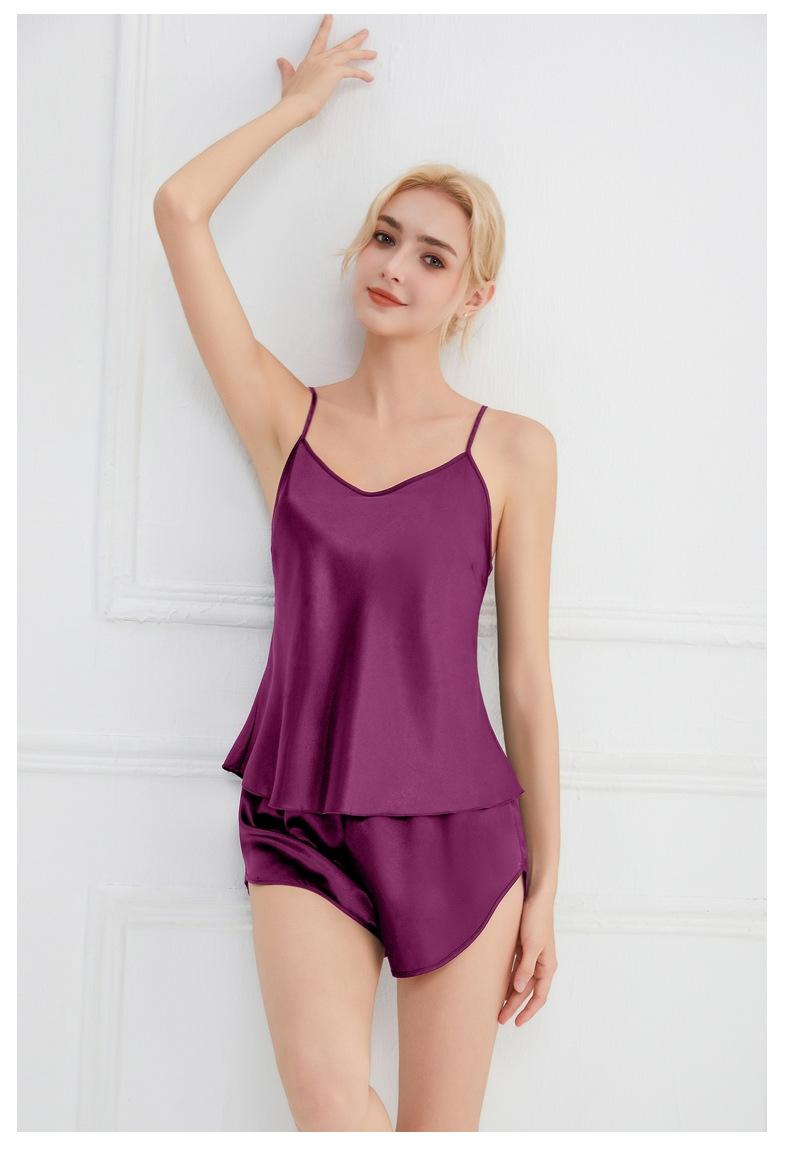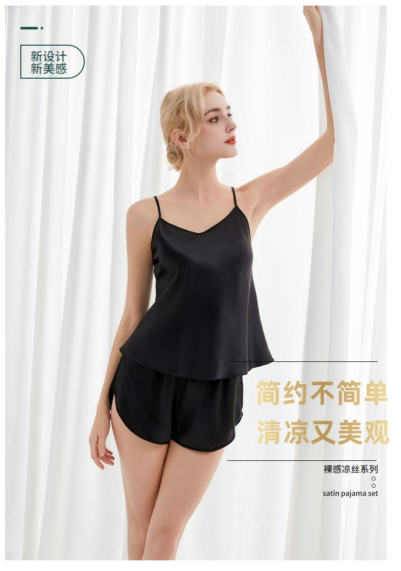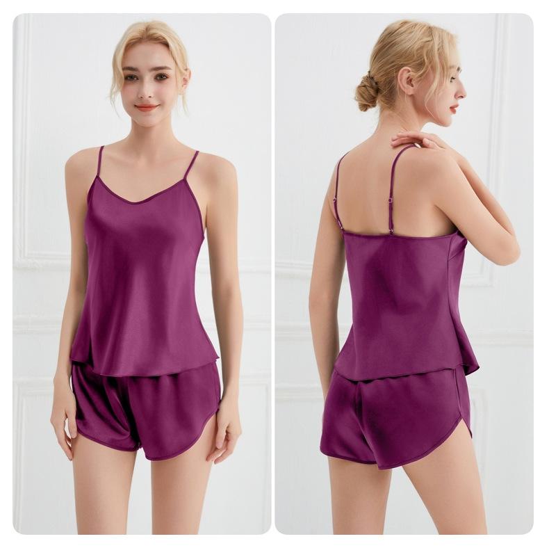 Amazon Verano Nuevo Conjunto de Ropa para el Hogar con Cuello en V para Mujer, Delgado, Transpirable, Fresco, Pijama Casual de Dos Piezas