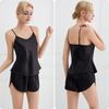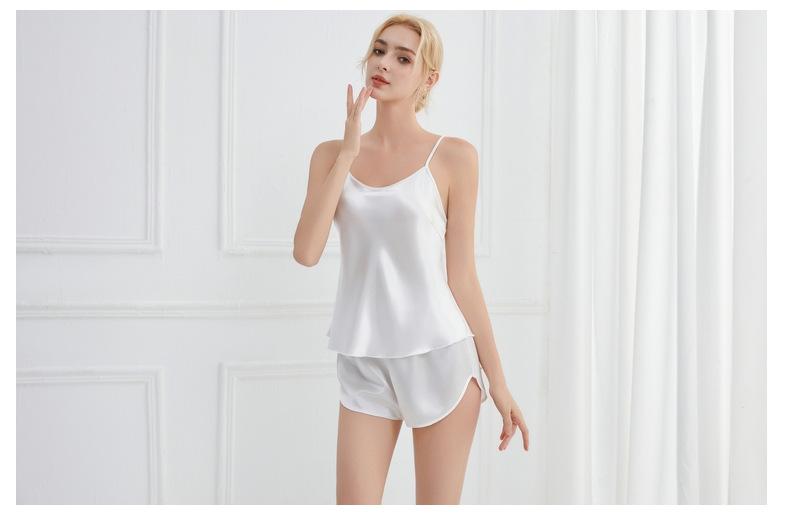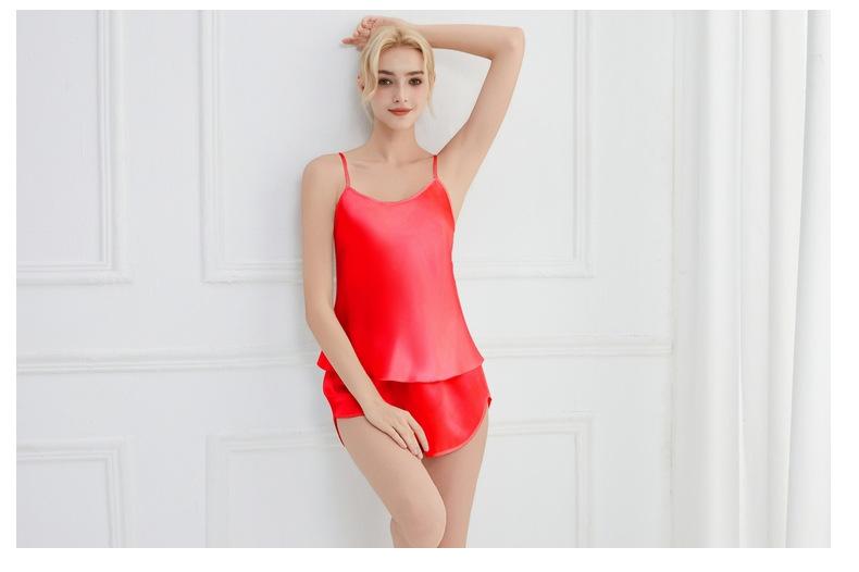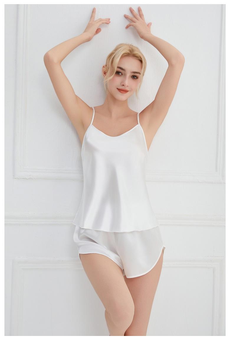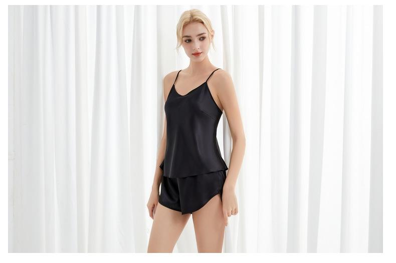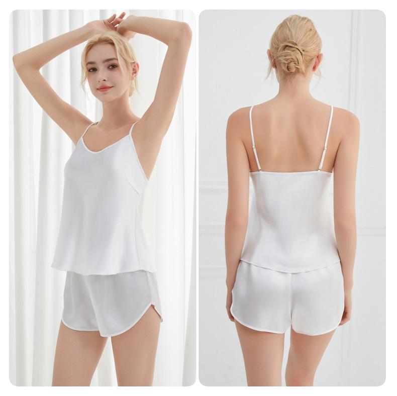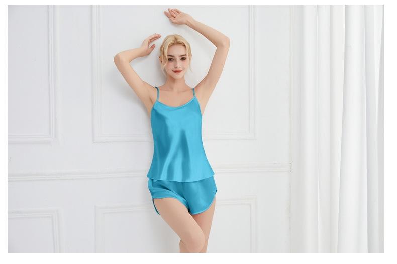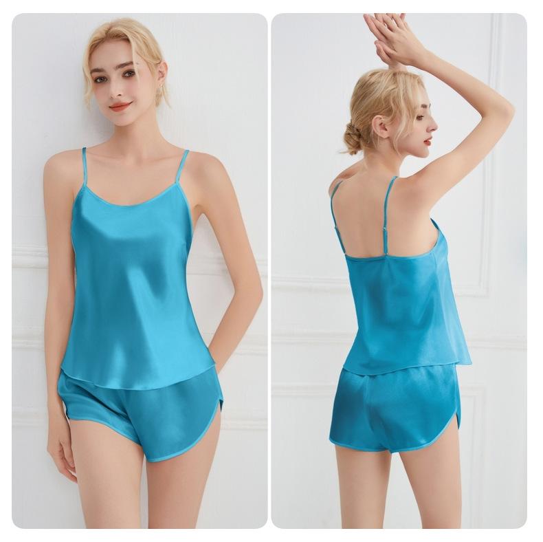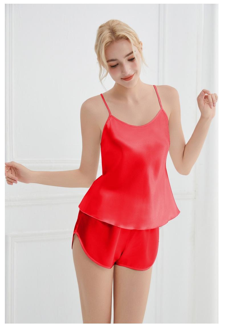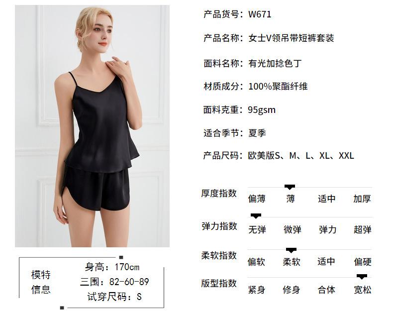 Amazon Verano Nuevo Conjunto de Ropa para el Hogar con Cuello en V para Mujer, Delgado, Transpirable, Fresco, Pijama Casual de Dos Piezas