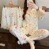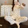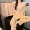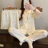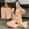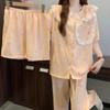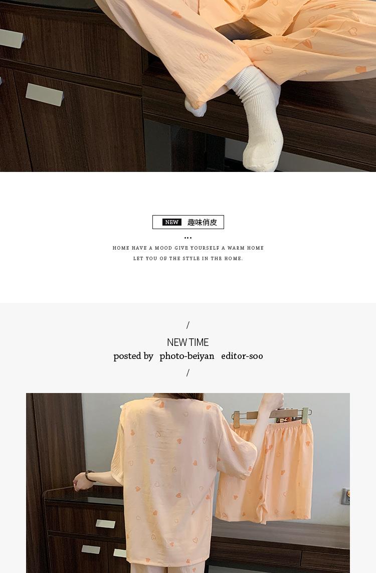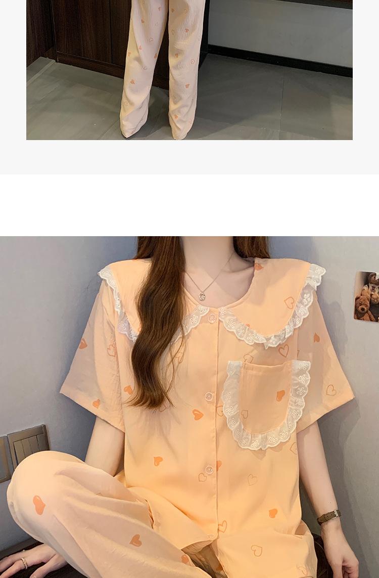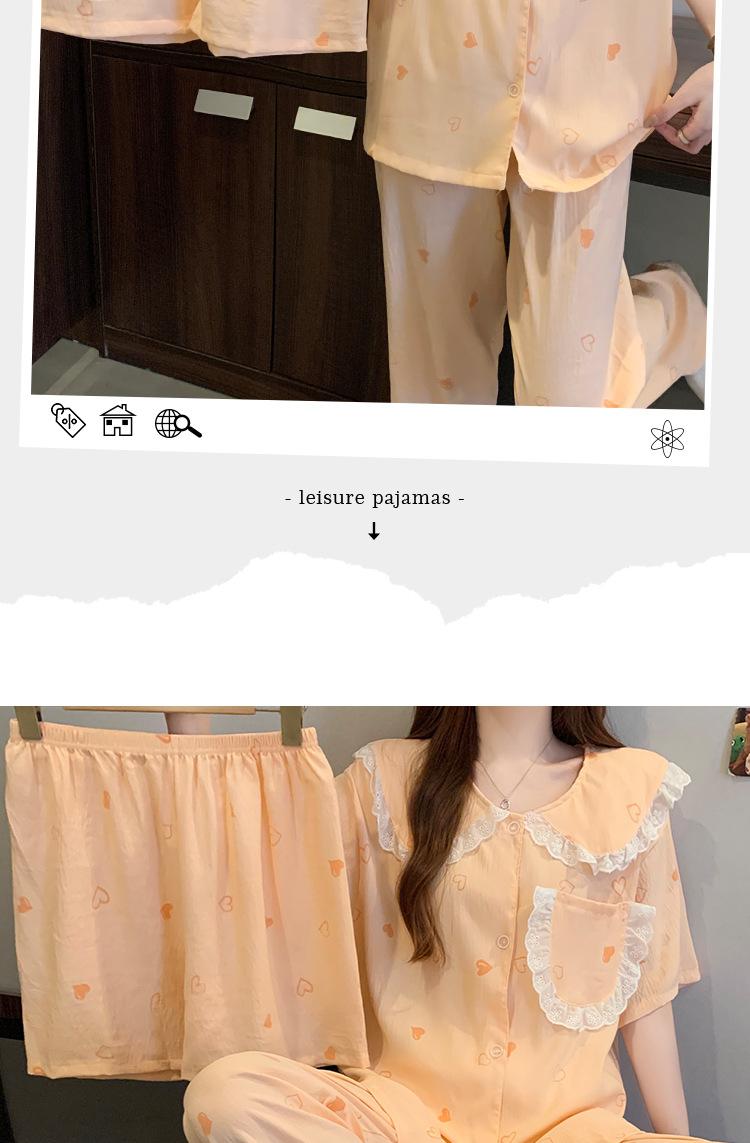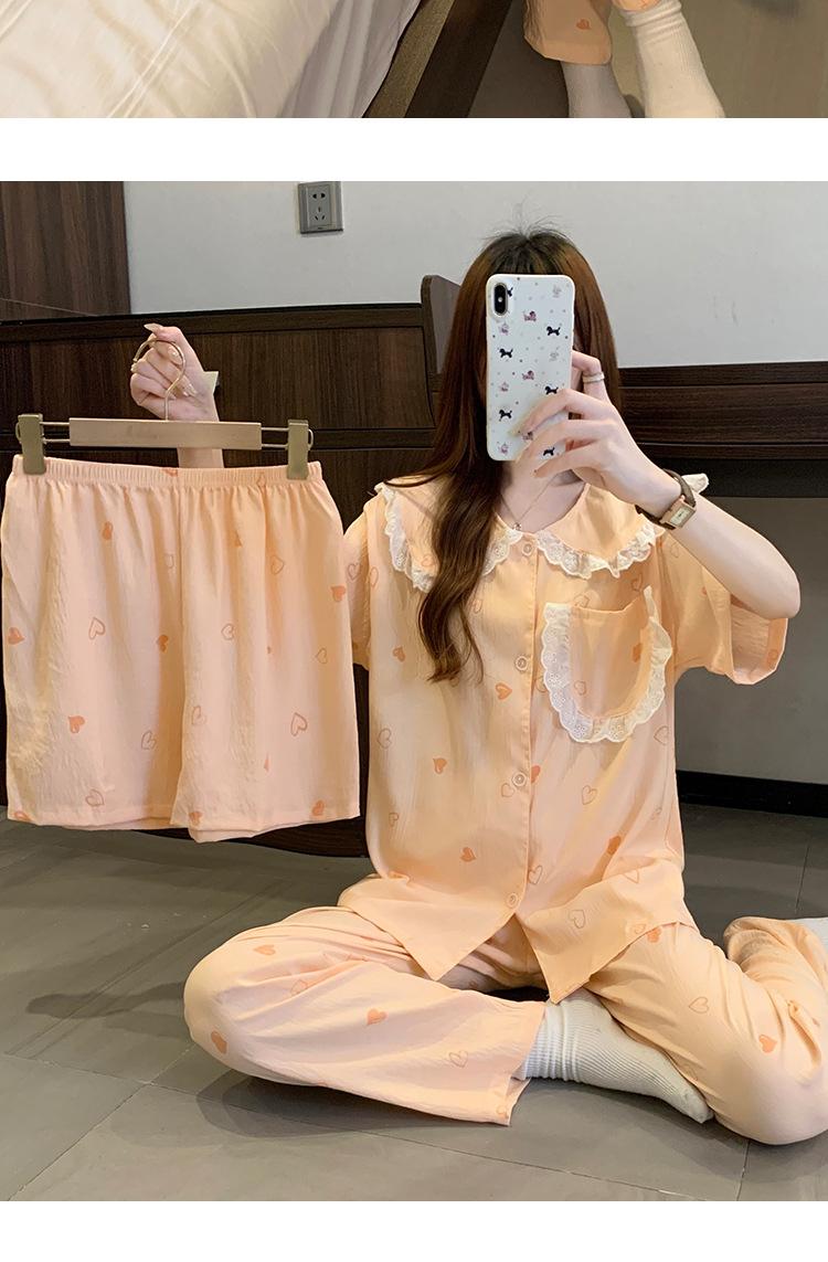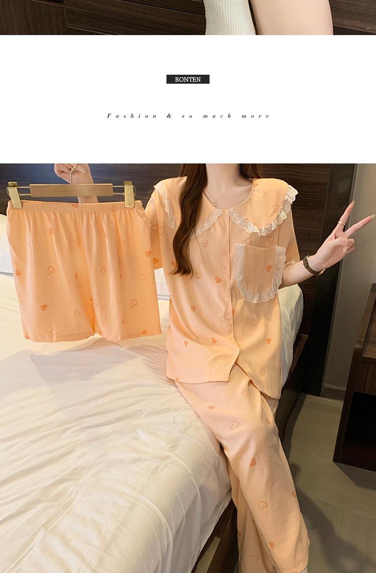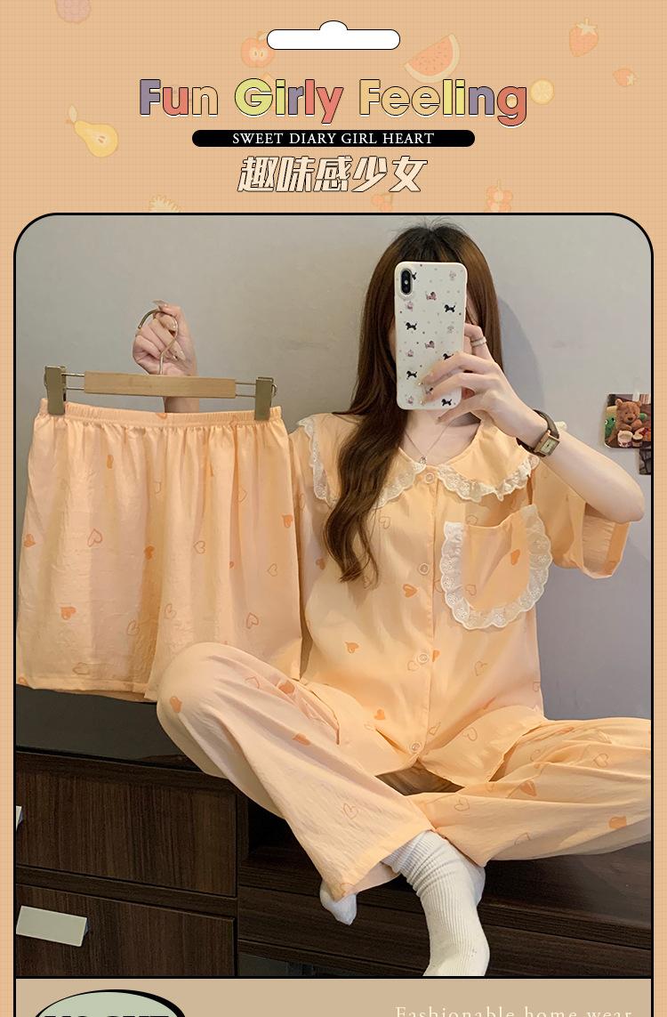Pijama japonés sencillo de amor nube de algodón con cuello de encaje para mujer, verano nuevo, ropa para el hogar, traje de tres piezas al por mayor