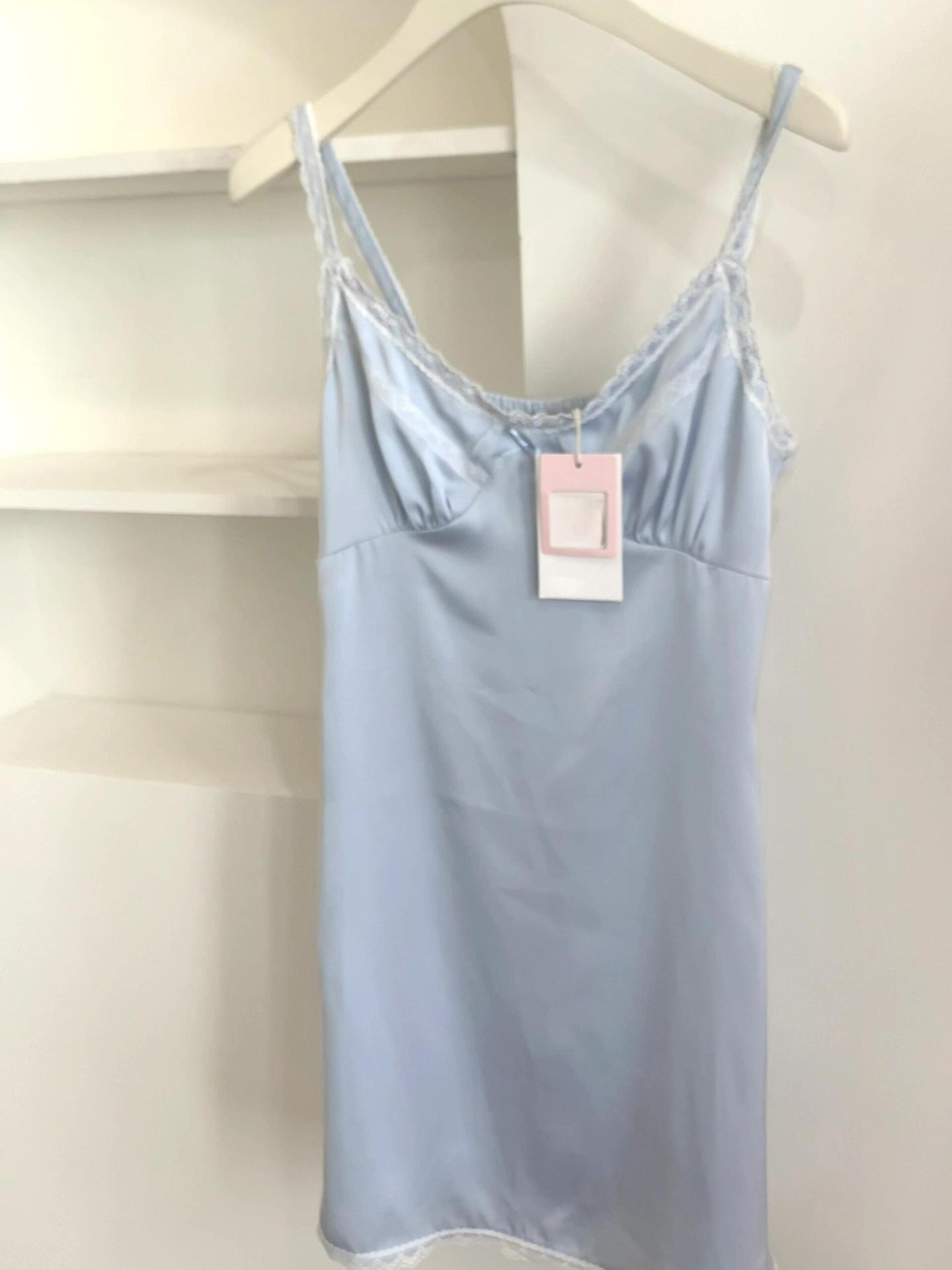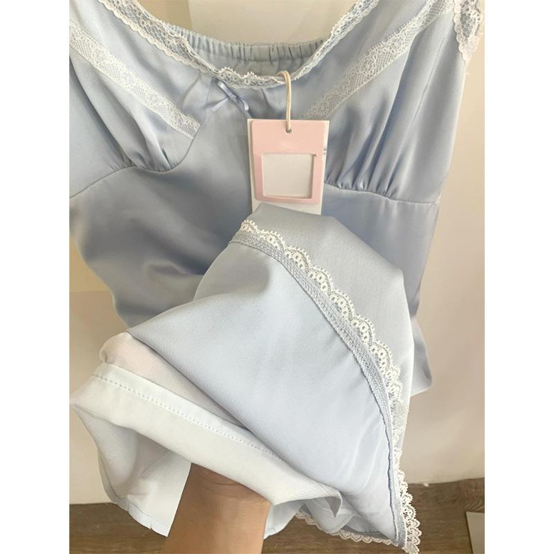 Sexy Estilo Puro Deseo Encaje Camisón Falda Corta Seda Helada Nuevo Verano 2024 Vestido Fresco