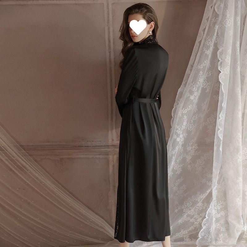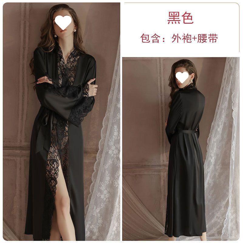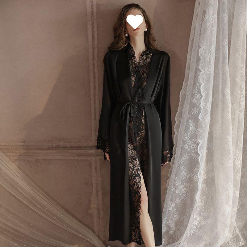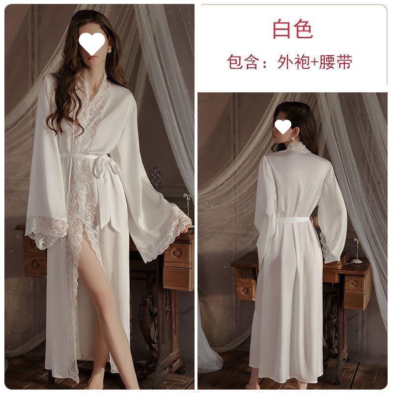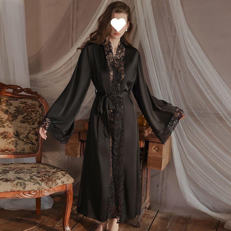 Pijama Sexy Bata Camisón 2024 Nuevo Seda de Hielo Largo Encaje Estilo Lujuria Pura Nupcial Ropa para el Hogar Bata de Mañana