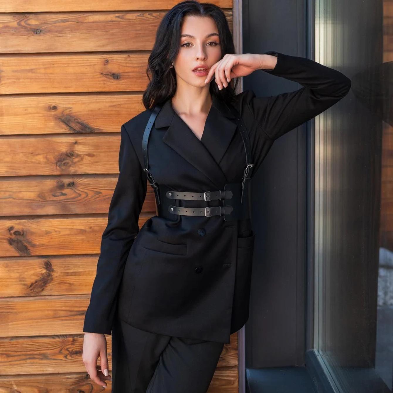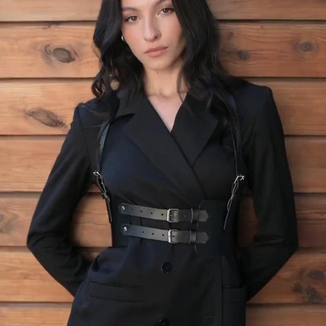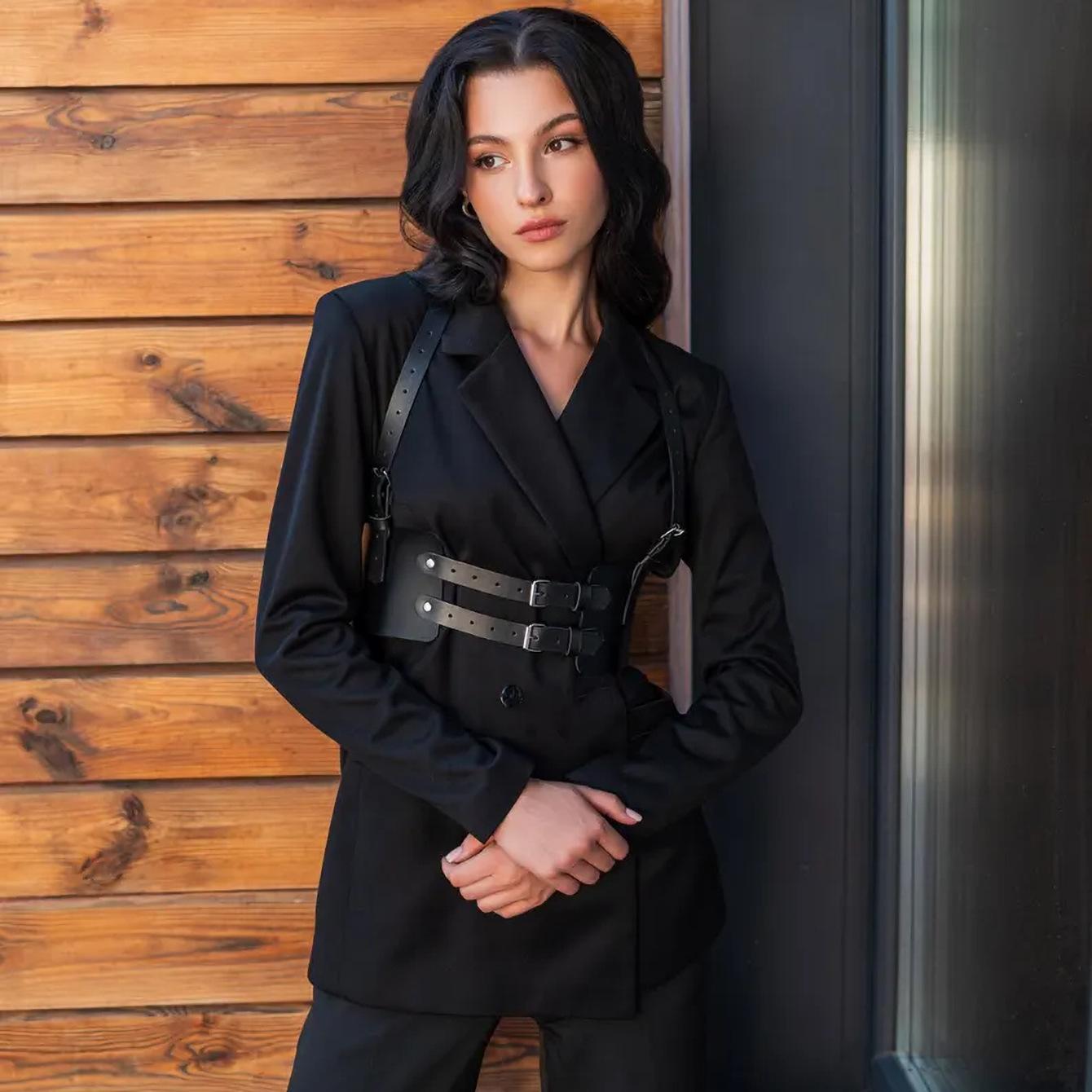 Jcf Productos para Adultos Sexy Bondage de Cuero Negro con Varias Decoraciones Modernas Fluidas y Correas Ajustables
