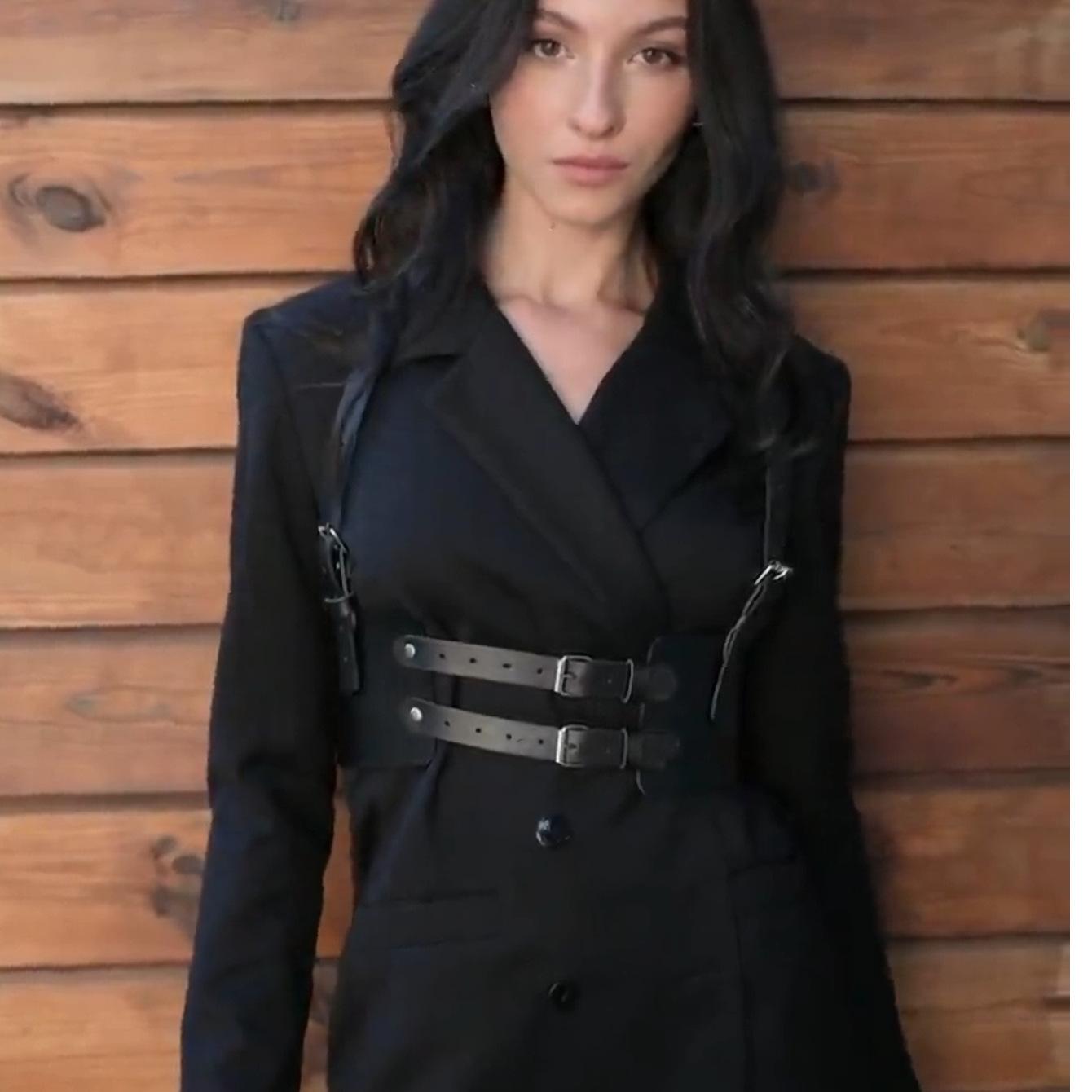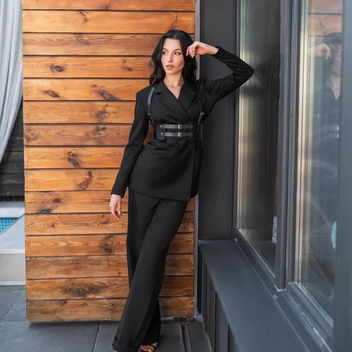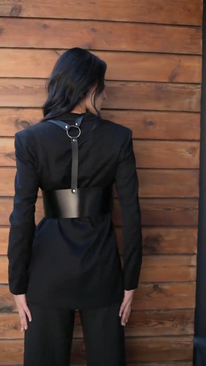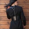Jcf Productos para Adultos Sexy Bondage de Cuero Negro con Varias Decoraciones Modernas Fluidas y Correas Ajustables