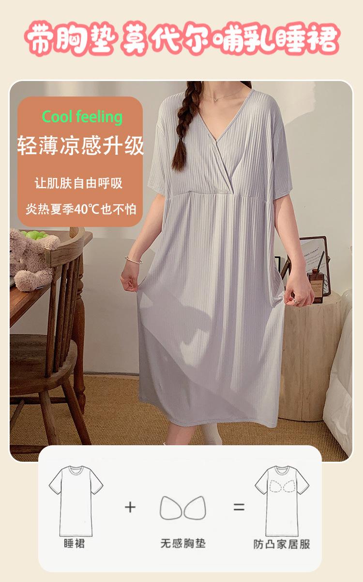 Pijama con almohadilla de pecho removible, Falda larga de maternidad, Ropa para después del parto, No es necesario usar sostén, Mujeres embarazadas, Lactancia posparto, Camisón de lactancia, Embarazo