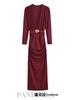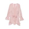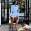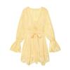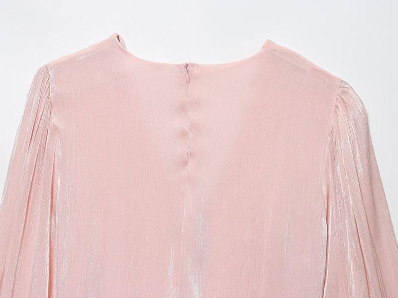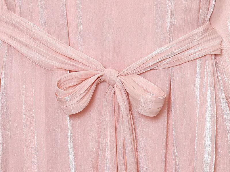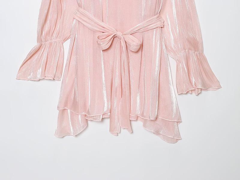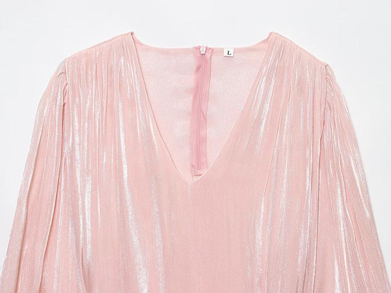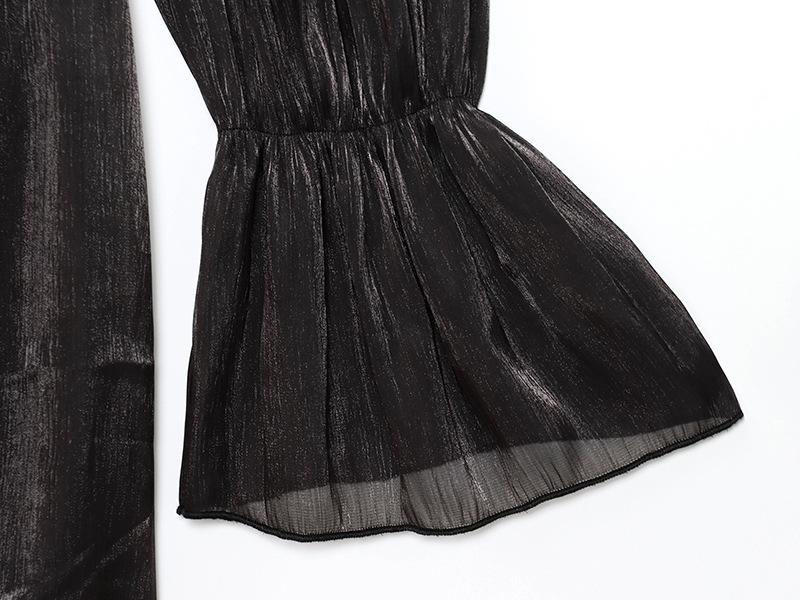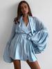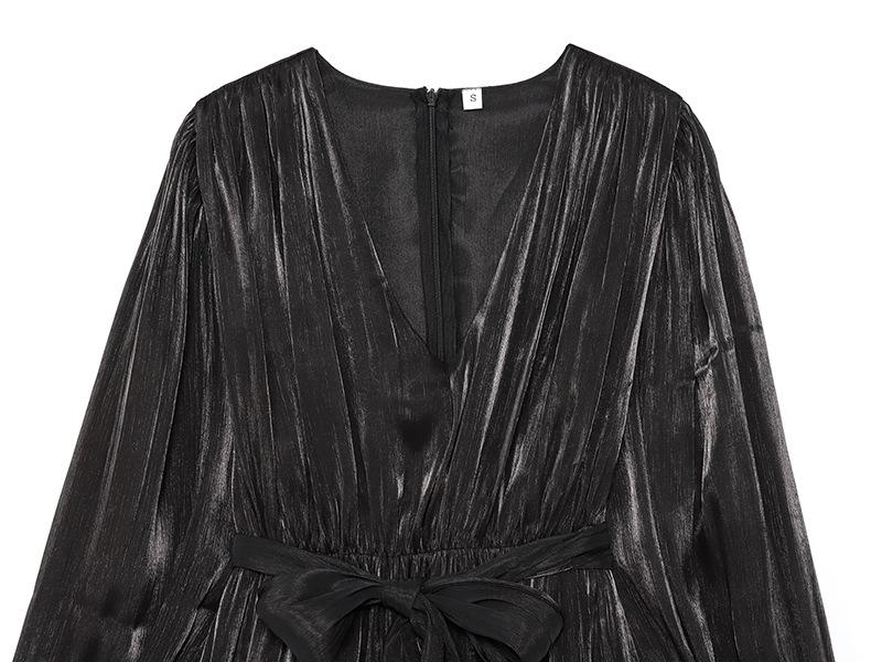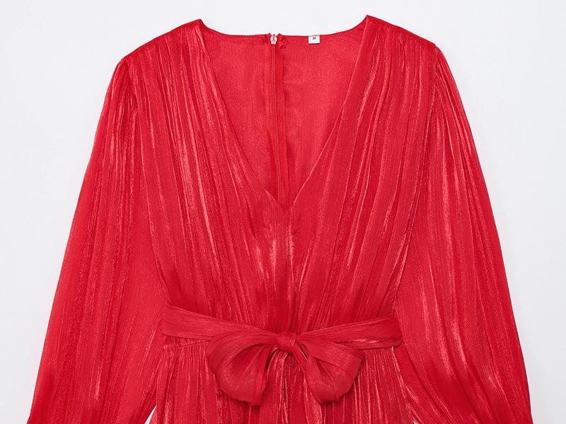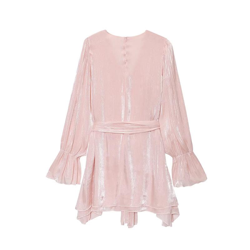 Vestido nuevo de otoño para mujer con cuello en V, hilo brillante, manga acampanada, lazo para atar, nuevo de personalidad transfronterizo estilo europeo y americano