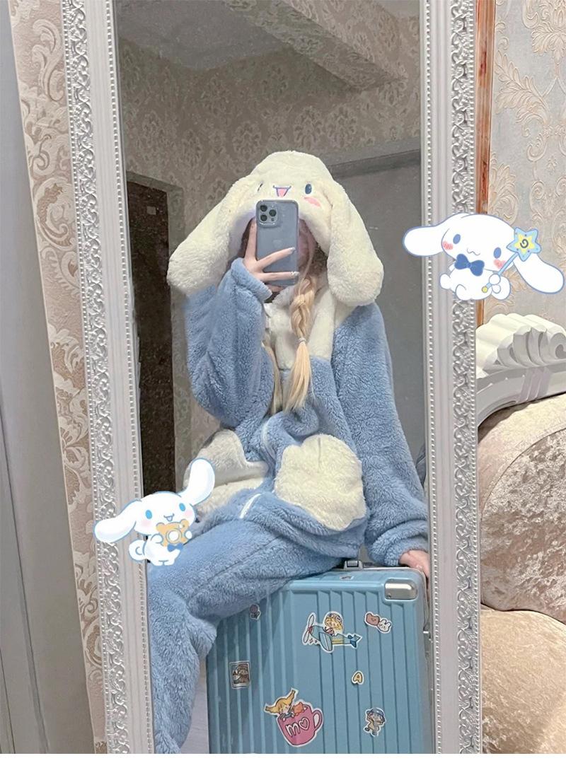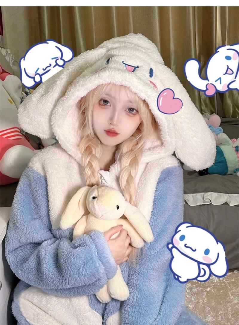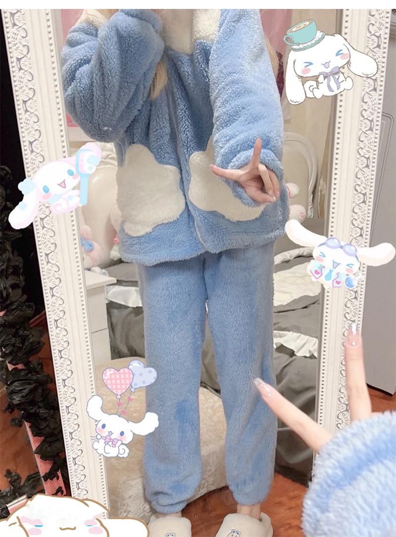 Pijama de forro polar coral Yugui para mujer estilo japonés 2023 nuevo invierno celebridad de internet grueso abrigo traje para estar en casa