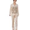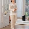 Lujoso Set para el Hogar con Estampado de Mariposas en Oro Blanco, Transpirable y Cómodo para Mujer, Manga Larga, Pantalón Largo, Ropa de Dormir de Alta Gama